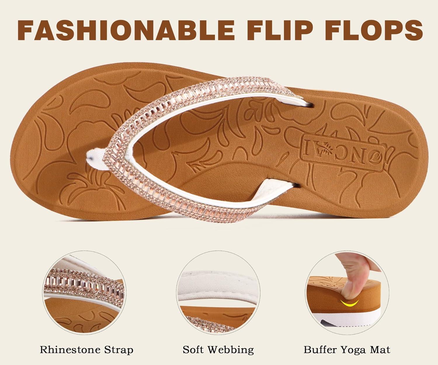 Discover the latest ONCAI Flip Flops for Women, Beach Thong Sandals Womens with Arch Support, Dressy Rhinestone Comfortable Yoga Mat and Non Slip Rubber Soles for Summer US Size 5-11(White/Khaki) from and take advantage of our limited-time introductory offer.
