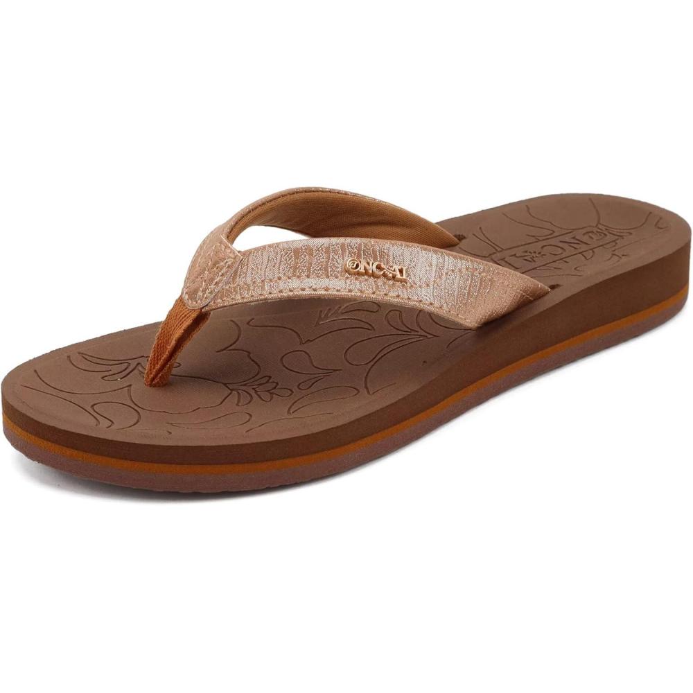 ONCAI Flip Flops For Women Yoga Mat Non-Slip Womens Flip Flops Thong Sandals Summer Beach Slippers With Arch Support Lightweight EVA Sole Brown Size 9.5