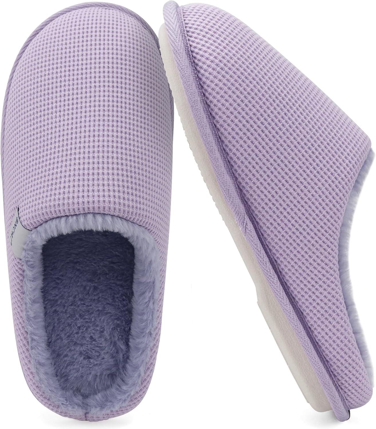 ONCAI Fuzzy Slippers for Women Cushion Memory Foam Woman Slippers 2025 Faux Fur High-Density Warm Cozy Soft Slide Slipper Comfy House Winter Winter House Shoes Indoor Outdoor Plush Purple Size 8.5 US