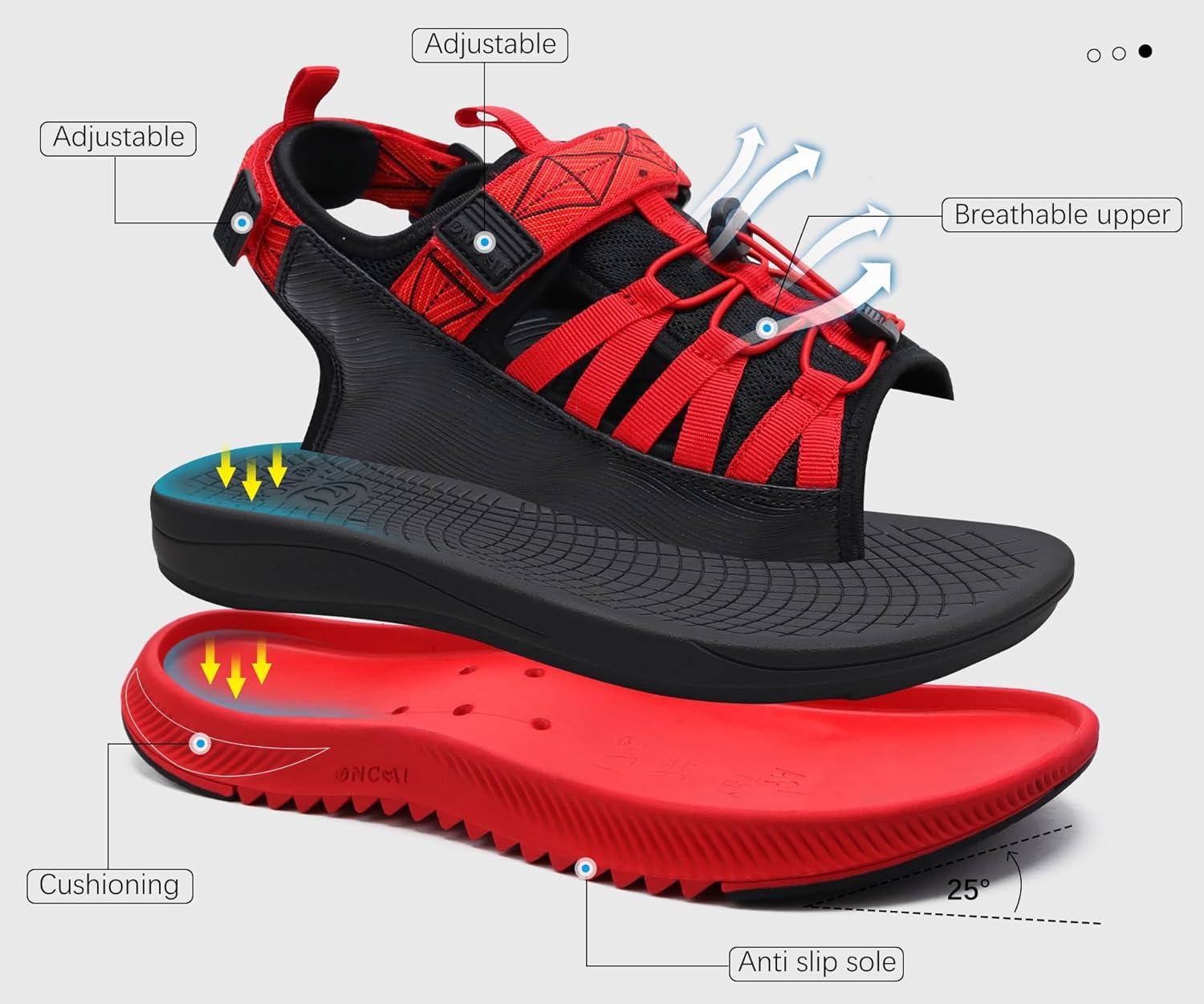 Don’t miss out on our limited-time offer: buy ONCAI Men Hiking Sandals, Arch Support Walking Sandals with Outdoor Orthotic Footbed for Plantar Fasciitis, Hombre Sandalias Recovery Sport Size 7-14(Black/Red), get {accessory} 50% off!