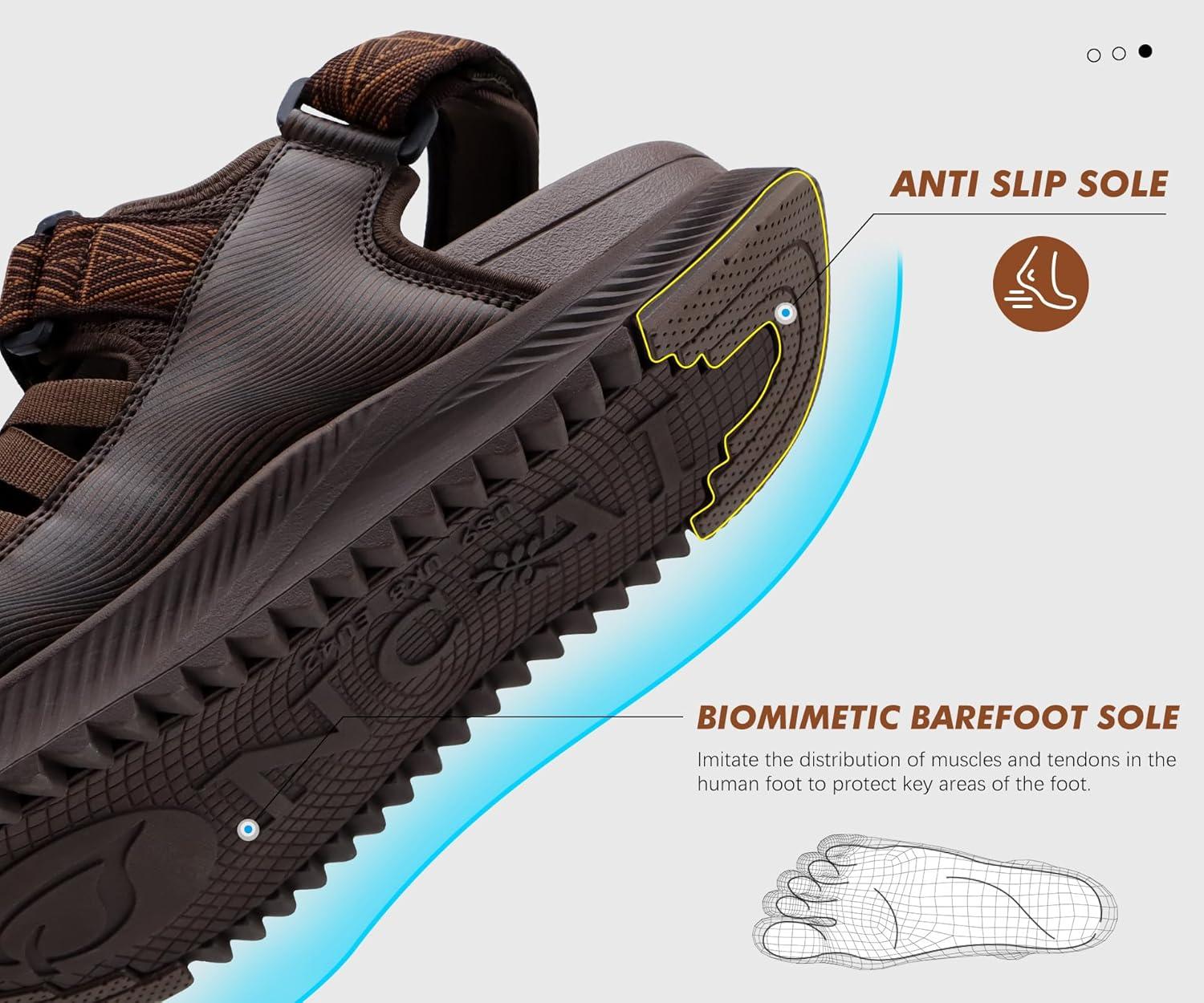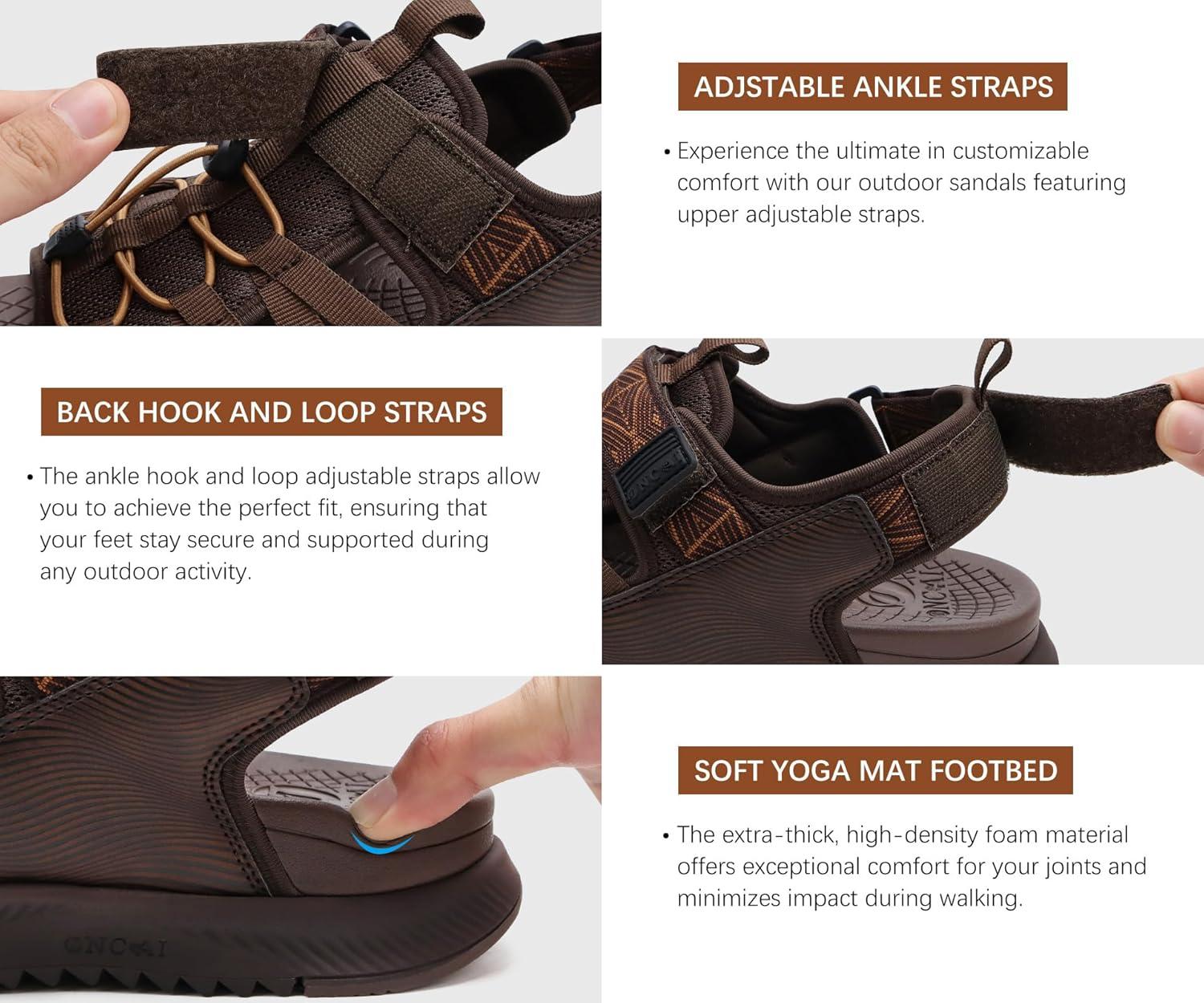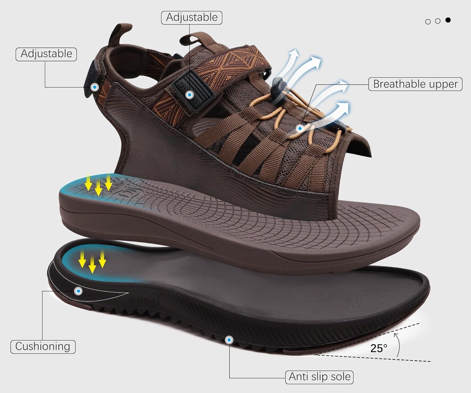 ONCAI Men Hiking Sandals, Arch Support Walking Sandals with Outdoor Orthotic Footbed for Plantar Fasciitis, Hombre Sandalias Recovery Sport Size 7-14(Dark Brown)