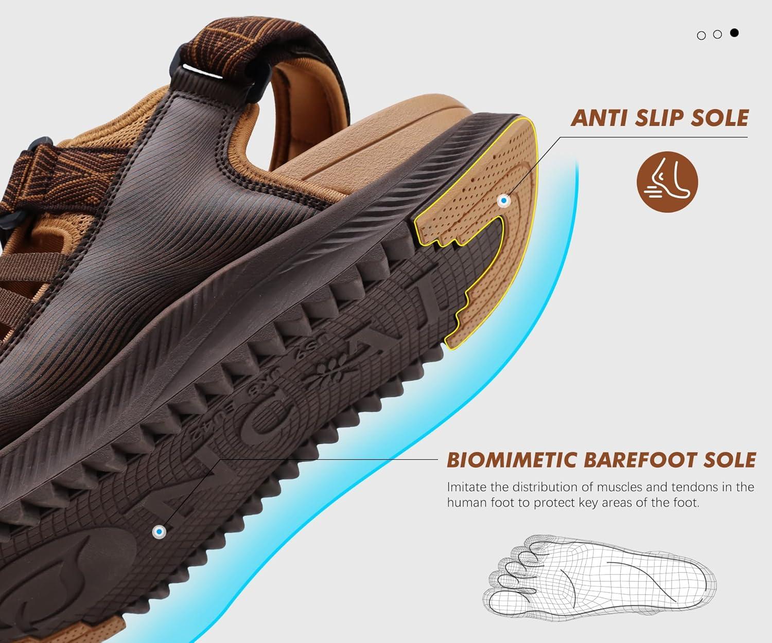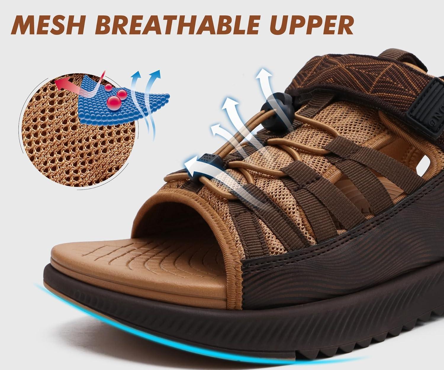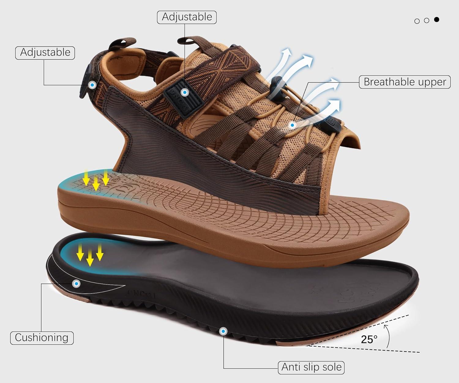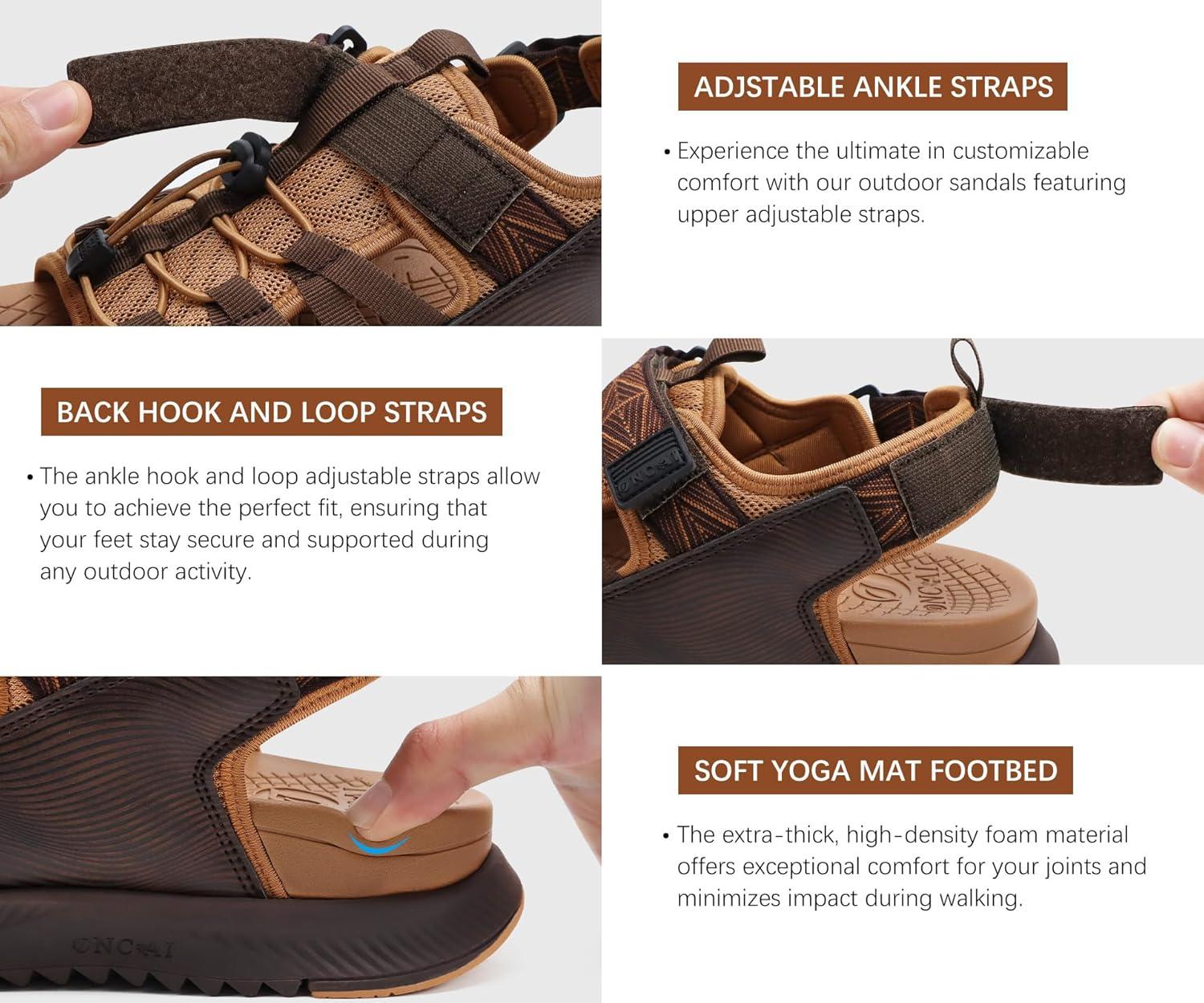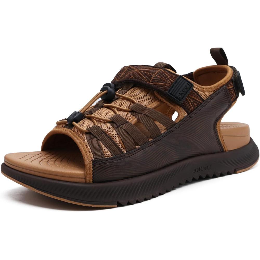 ONCAI Men Hiking Sandals, Arch Support Walking Sandals with Outdoor Orthotic Footbed for Plantar Fasciitis, Hombre Sandalias Recovery Sport Size 7-14(Khaki/Brown)