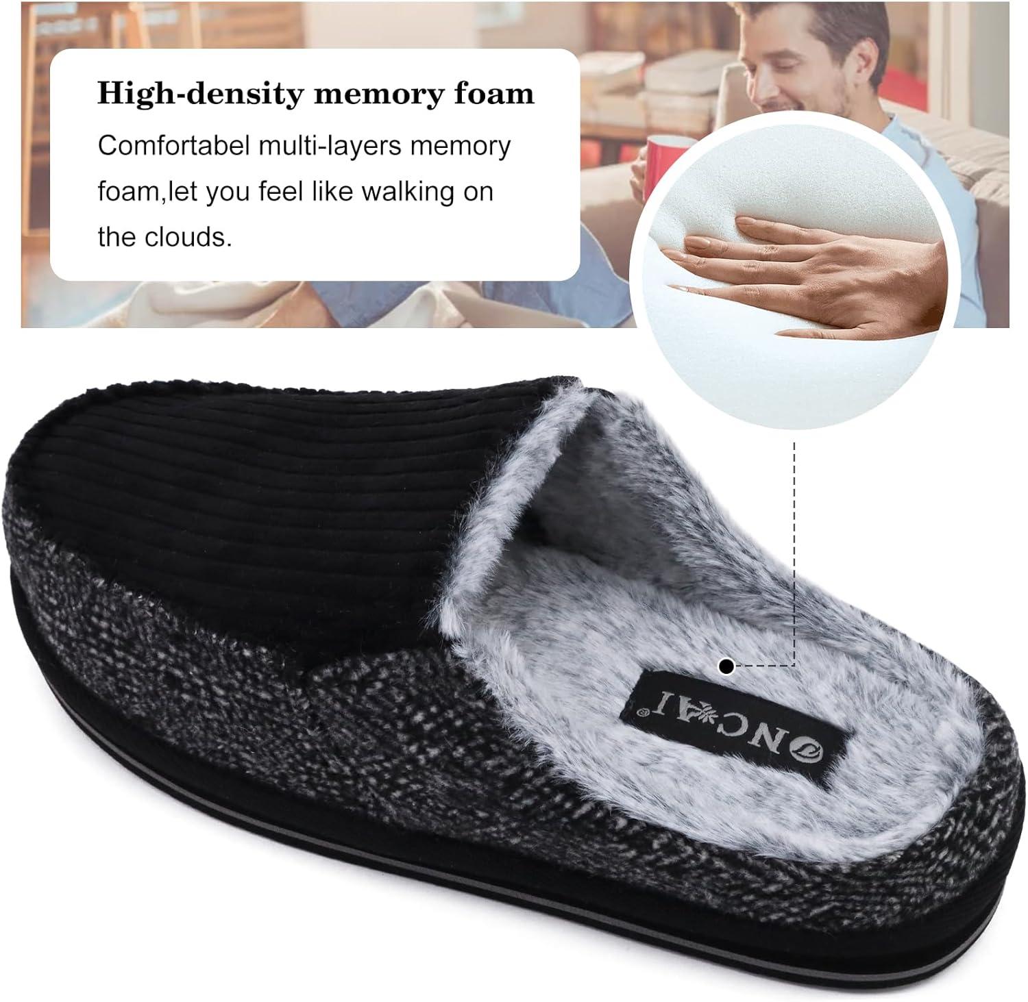 ONCAI Mens Clog Slippers with Arch Support Stripe Faux Fur Cotton-Blend High-Density Memory Foam Warm House Slippers Slip-on Indoor Outdoor Rubber Sole Size 7-16(Corduroy Black)
