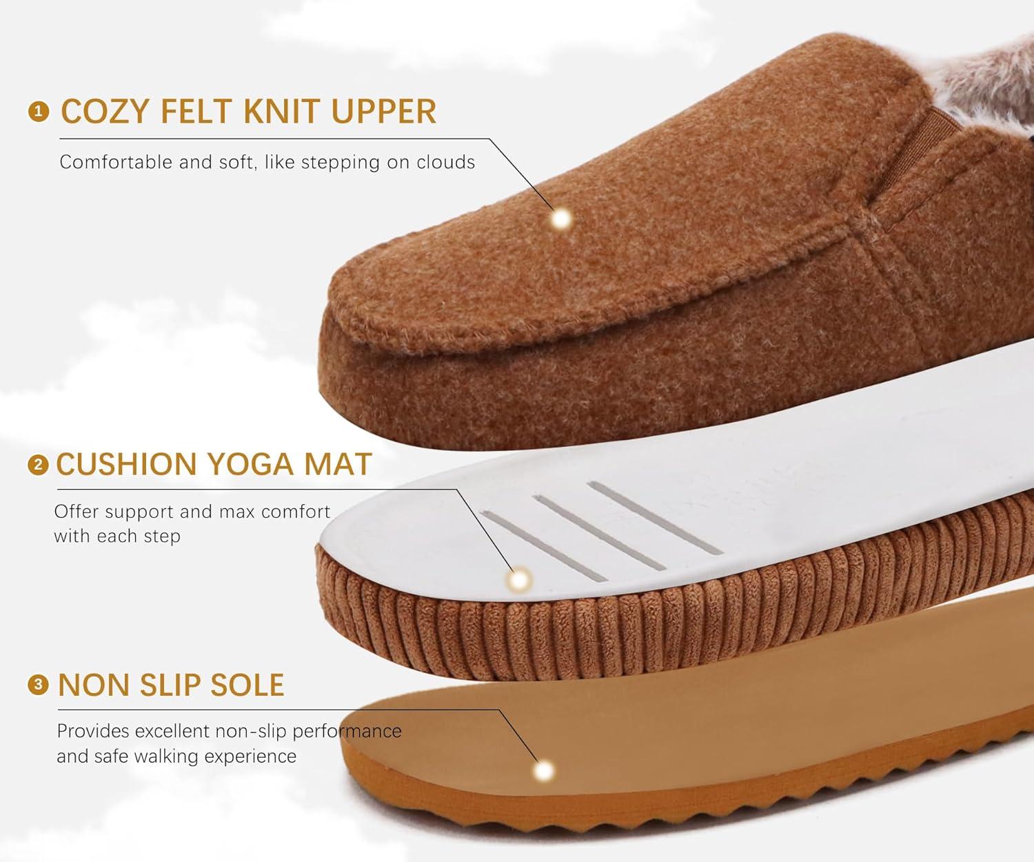 ONCAI Mens Clog Slippers with Arch Support Stripe Faux Fur Cotton-Blend High-Density Memory Foam Warm House Slippers Slip-on Indoor Outdoor Rubber Sole Size 7-16(Moccasins Khaki)