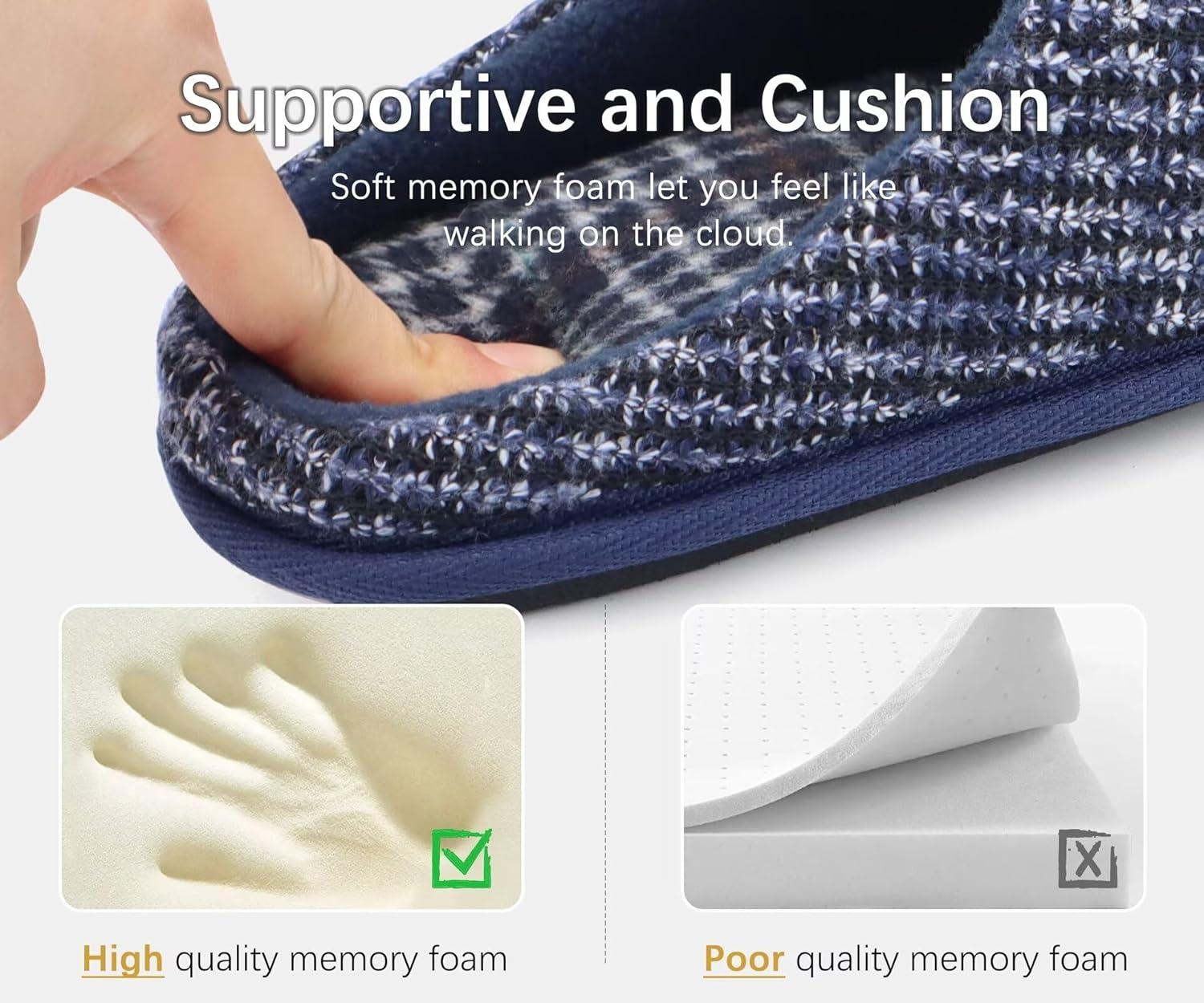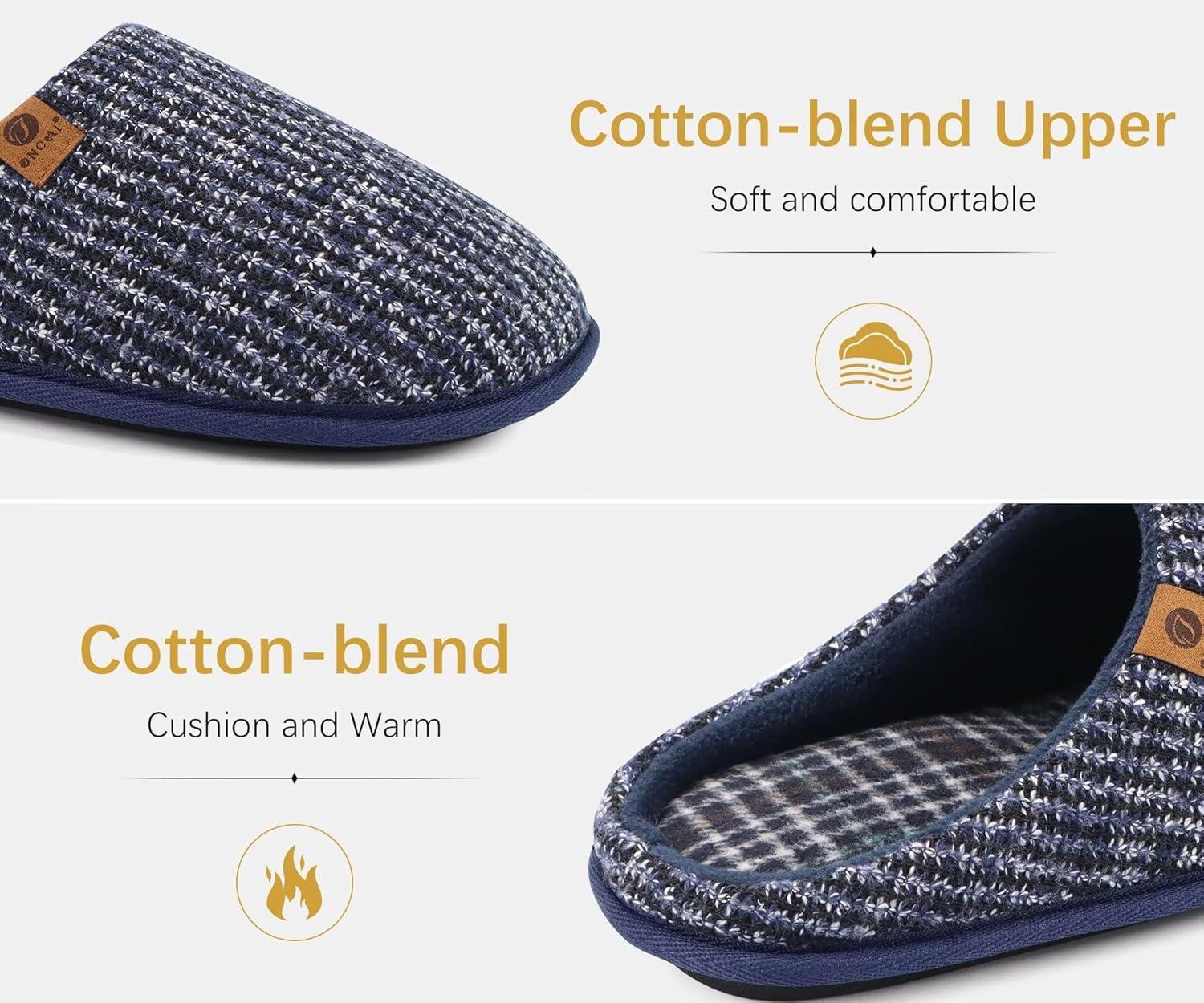 ONCAI Mens Cozy Memory Foam Scuff Slippers Slip On Warm House Shoes Indoor/Outdoor with Best Arch Support(Blue)