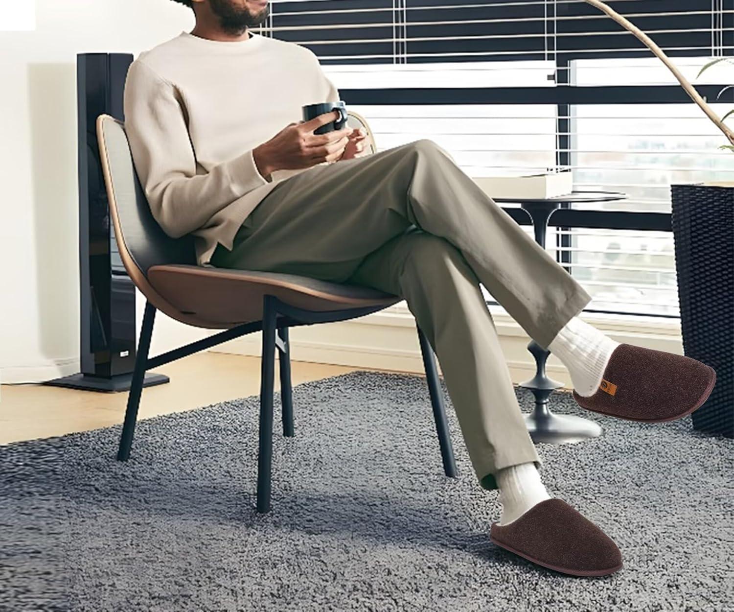 ONCAI Mens Cozy Memory Foam Scuff Slippers Slip On Warm House Shoes Indoor/Outdoor with Best Arch Support(Felt Plush Brown)