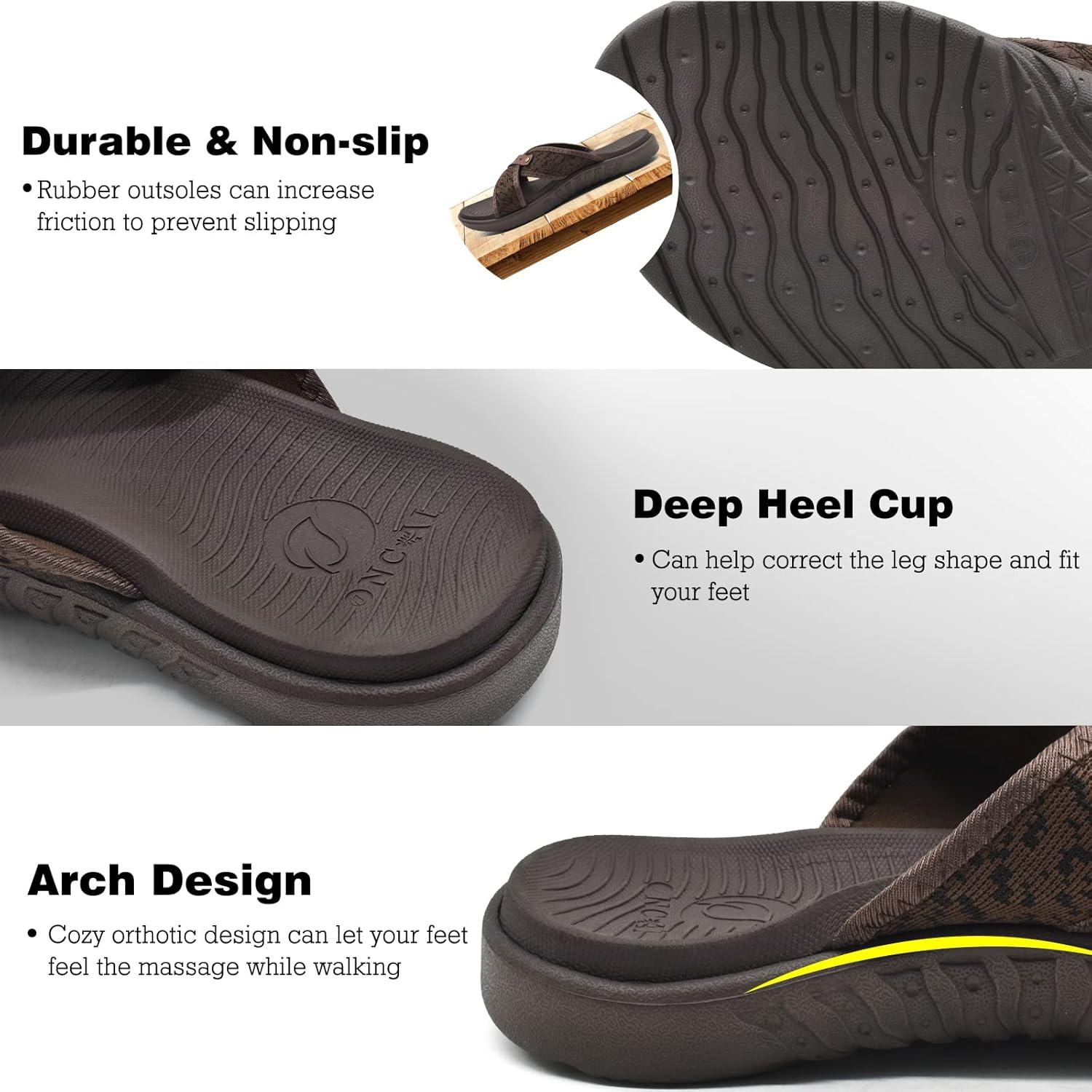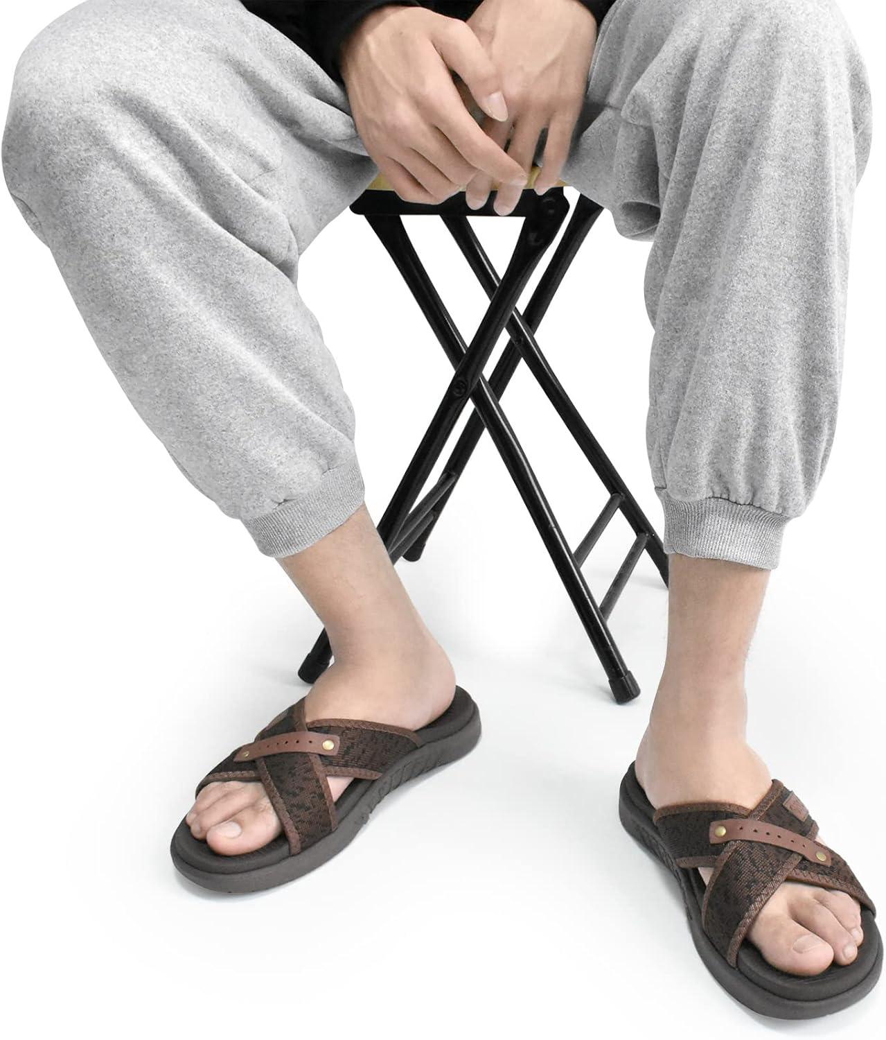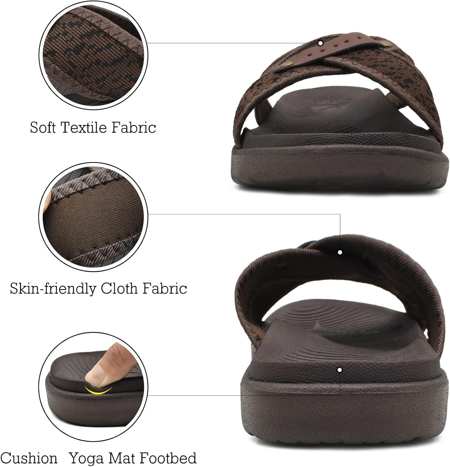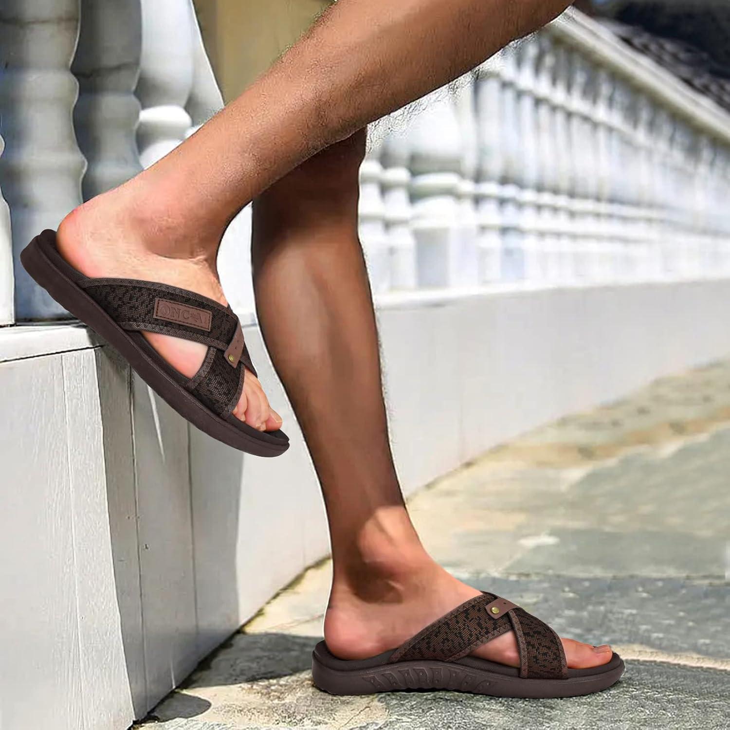 ONCAI Mens Criss Cross Sandals,Arch Support Recovery Sport Slippers Slides with Plantar Fasciitis Orthotic Footbed(Brown)