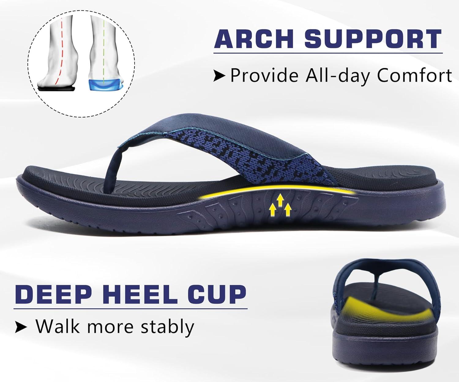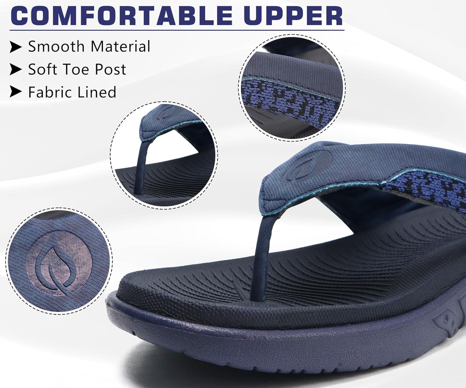 ONCAI Mens Flip Flop Open Toe Athletic Straps Orthotic Summer Plantar Fasciitis Sport Sandals with Soft Cushion Arch Support Size 7.5-15(Blue)