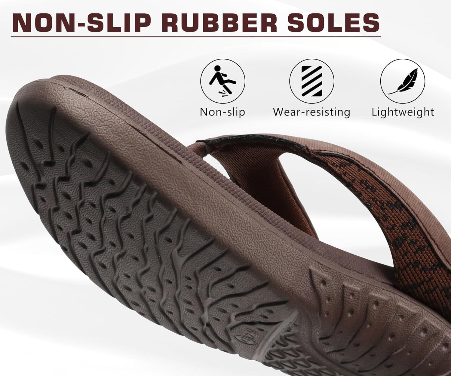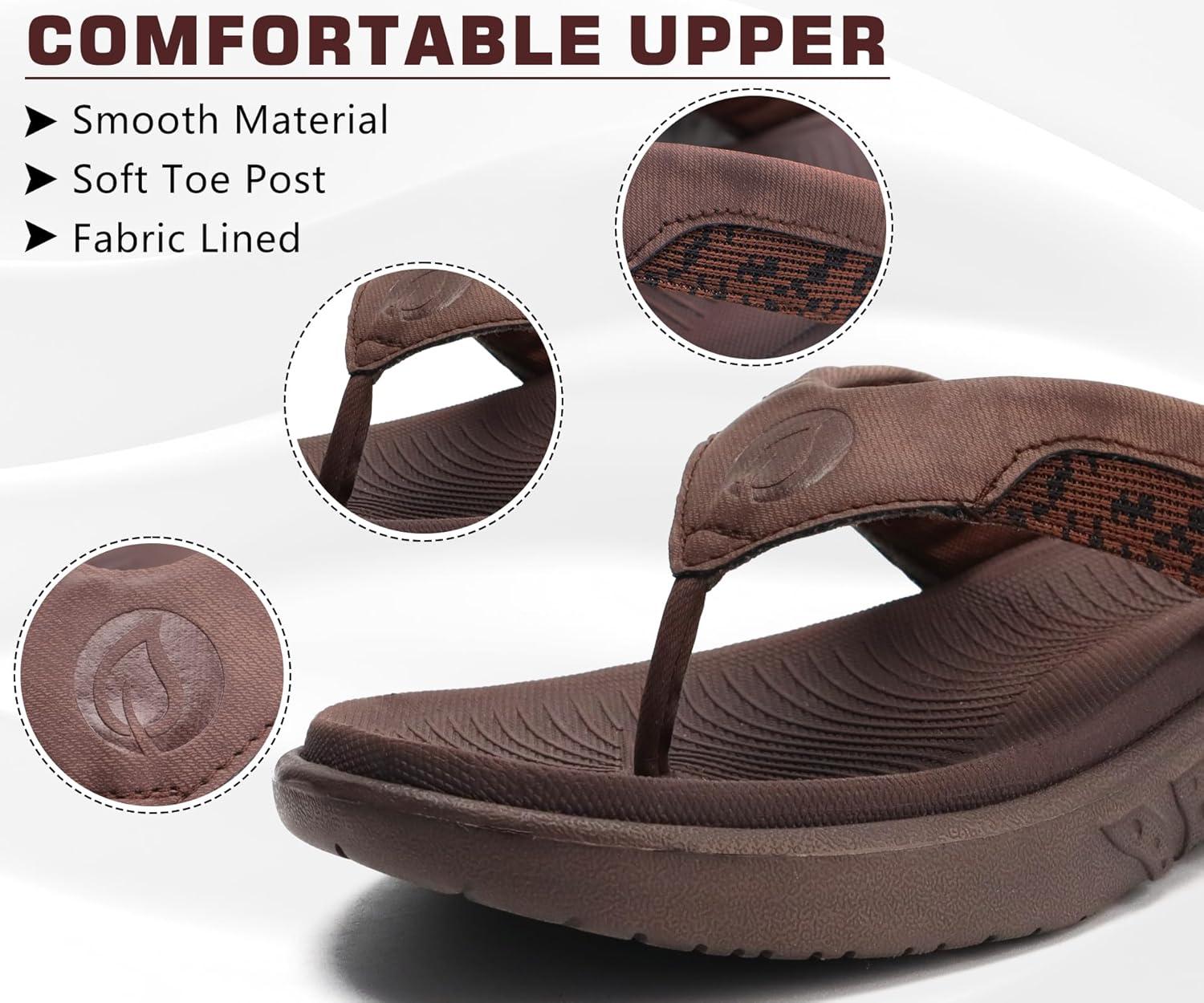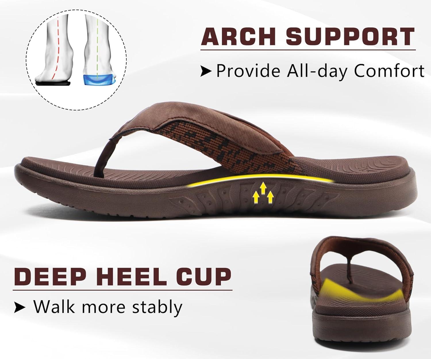 ONCAI Mens Flip Flop Open Toe Athletic Straps Orthotic Summer Plantar Fasciitis Sport Sandals with Soft Cushion Arch Support Size 7.5-15(Brown)