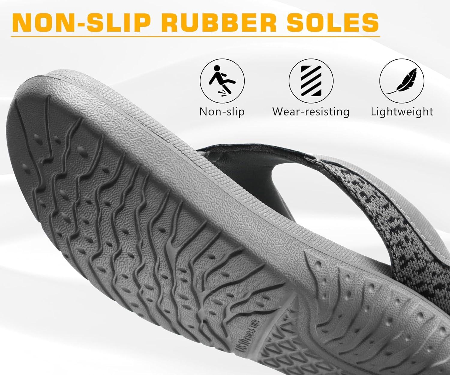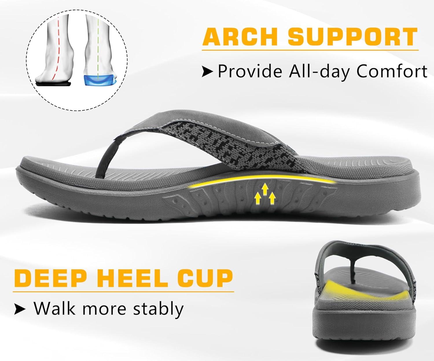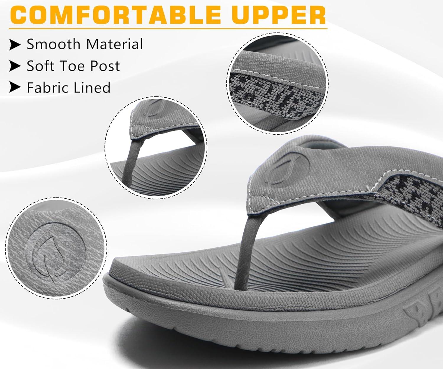 ONCAI Mens Flip Flop Open Toe Athletic Straps Orthotic Summer Plantar Fasciitis Sport Sandals with Soft Cushion Arch Support Size 7.5-15(Grey)