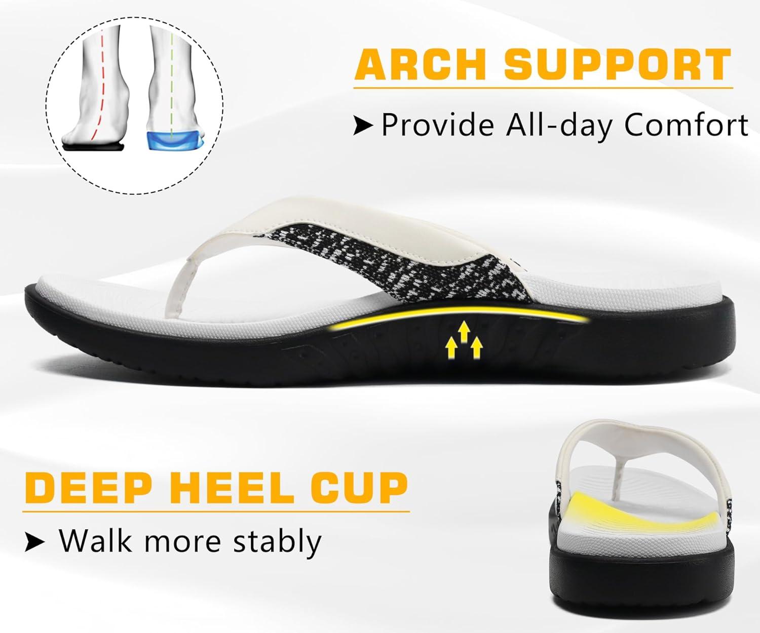 Get more for your money with our exclusive bundle deals on ONCAI Mens Flip Flop Open Toe Athletic Straps Orthotic Summer Plantar Fasciitis Sport Sandals with Soft Cushion Arch Support Size 7.5-15(White/Black) and accessories.