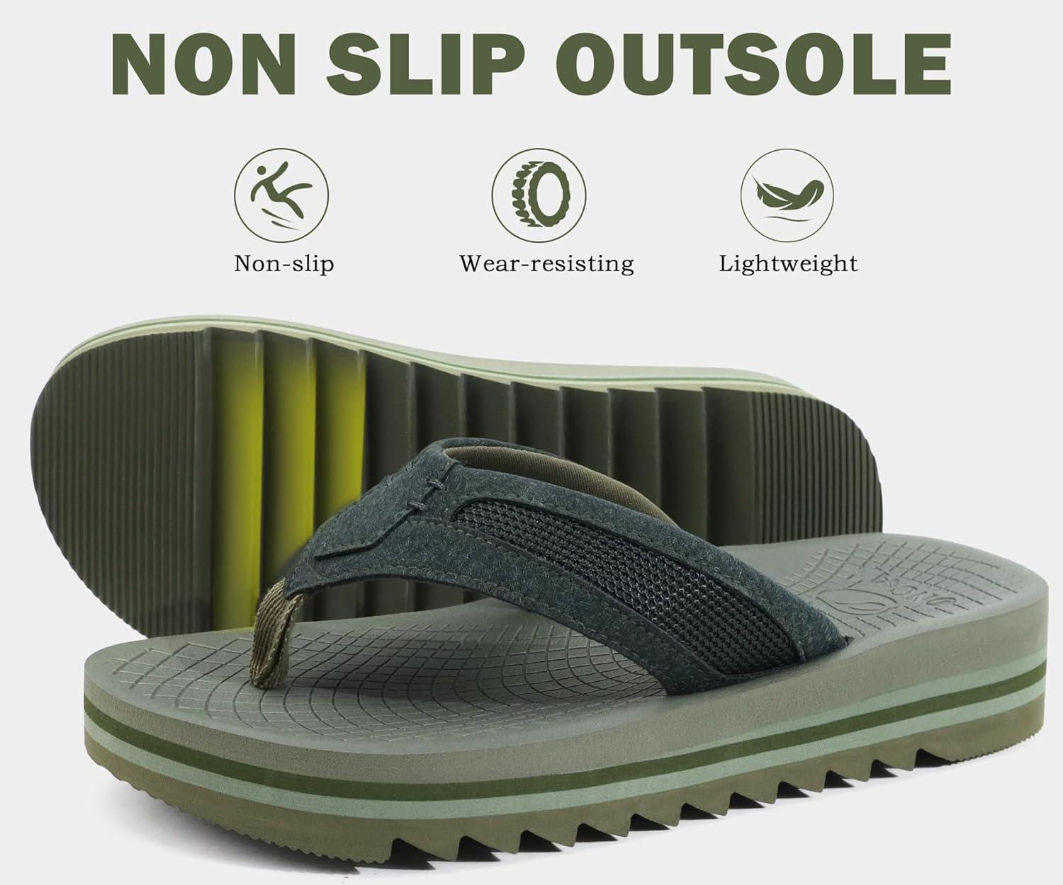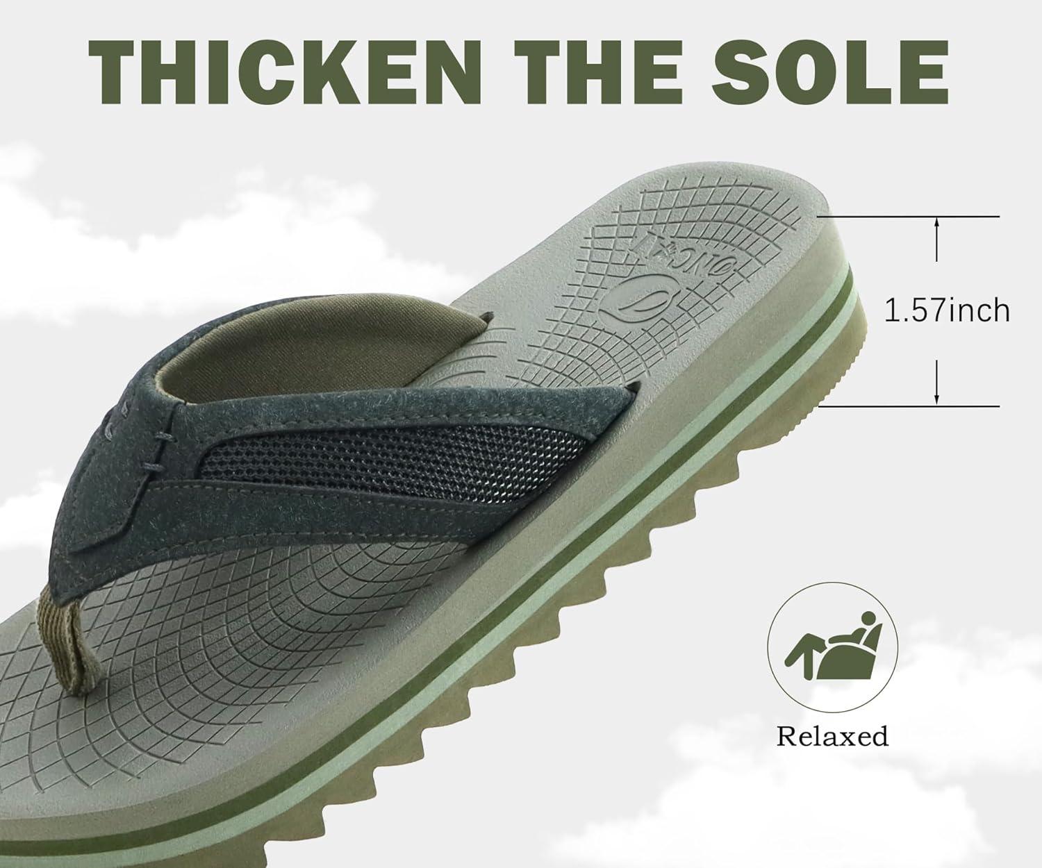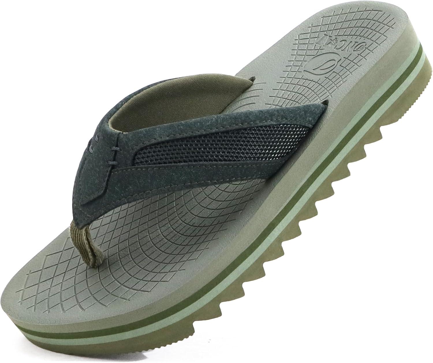 ONCAI Men’s Flip Flops with Arch Support Orthotic Cushion Recovery Walking Slide Sandals for Men with Platform Summer Comfortable Soft Rubber Soles(US Size 7-15)(Army Green)