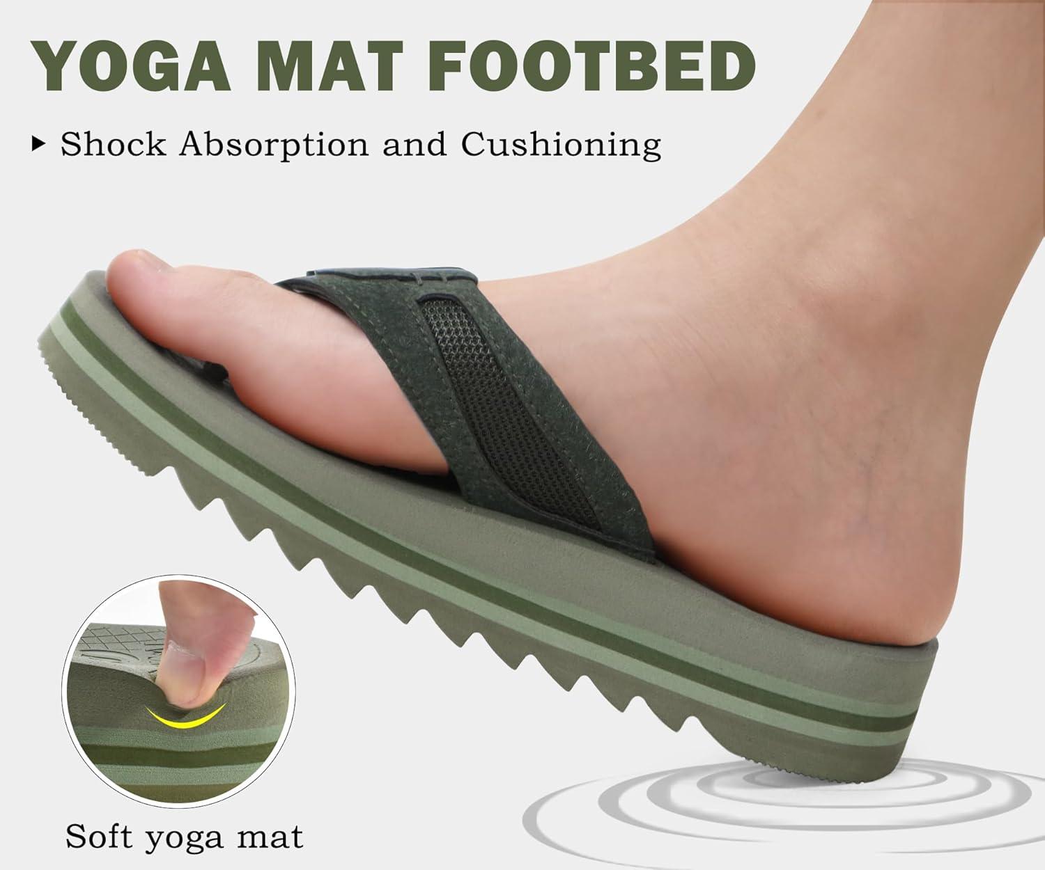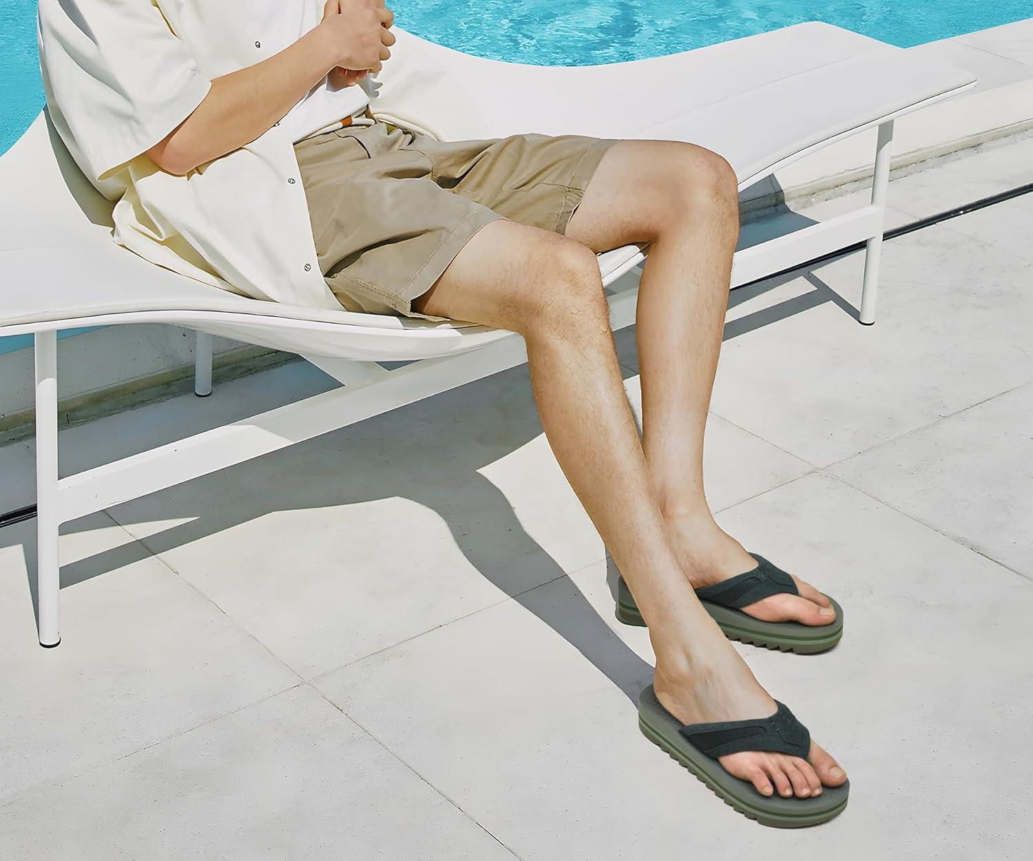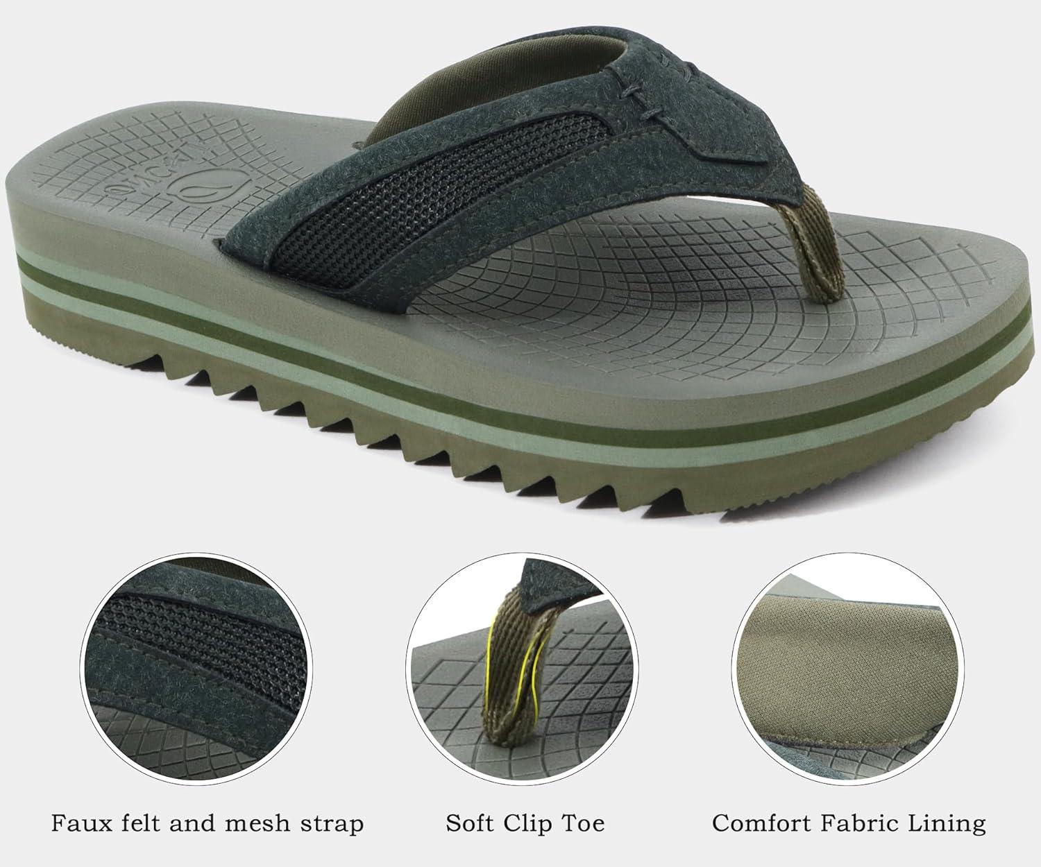 ONCAI Men’s Flip Flops with Arch Support Orthotic Cushion Recovery Walking Slide Sandals for Men with Platform Summer Comfortable Soft Rubber Soles(US Size 7-15)(Army Green)