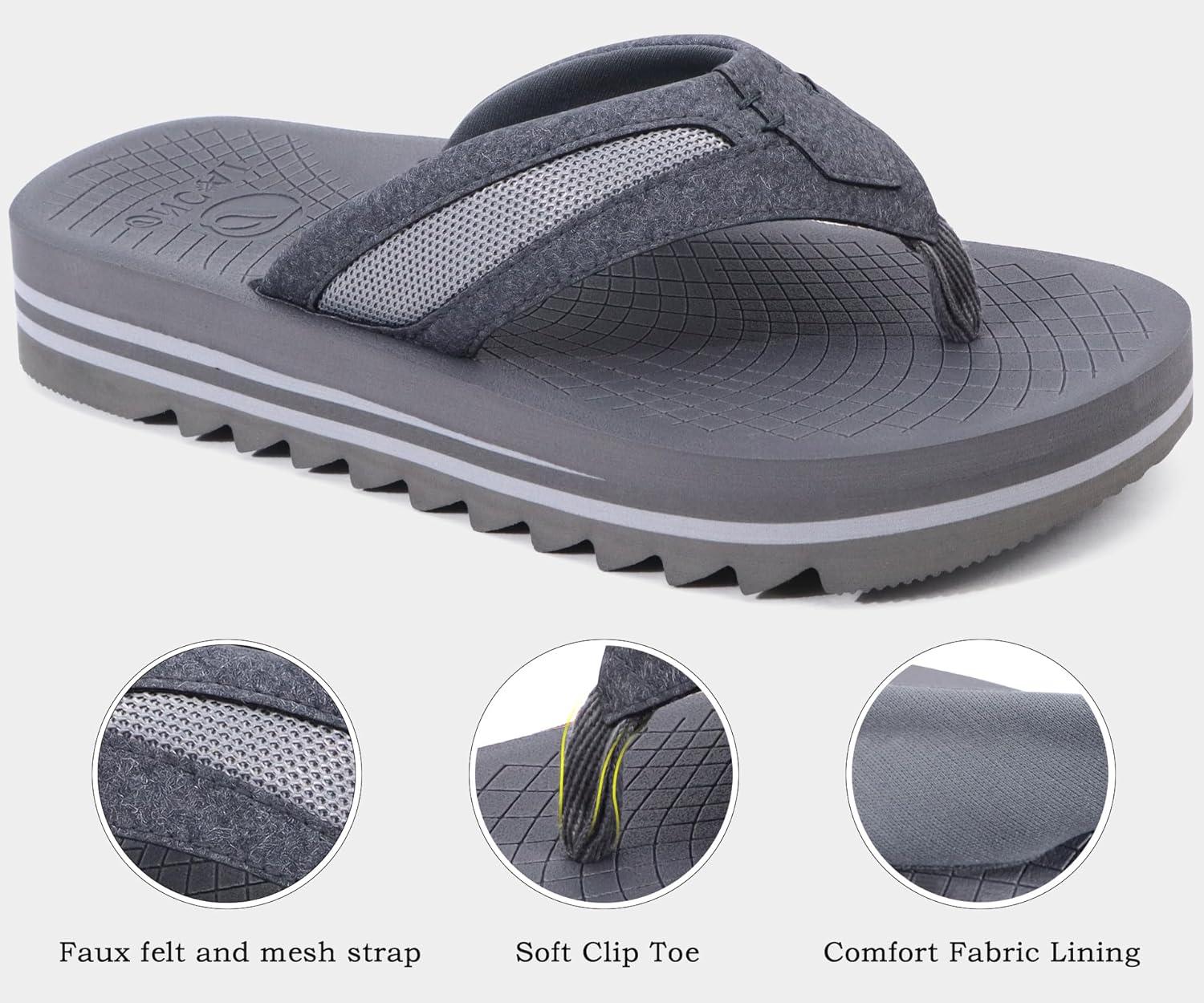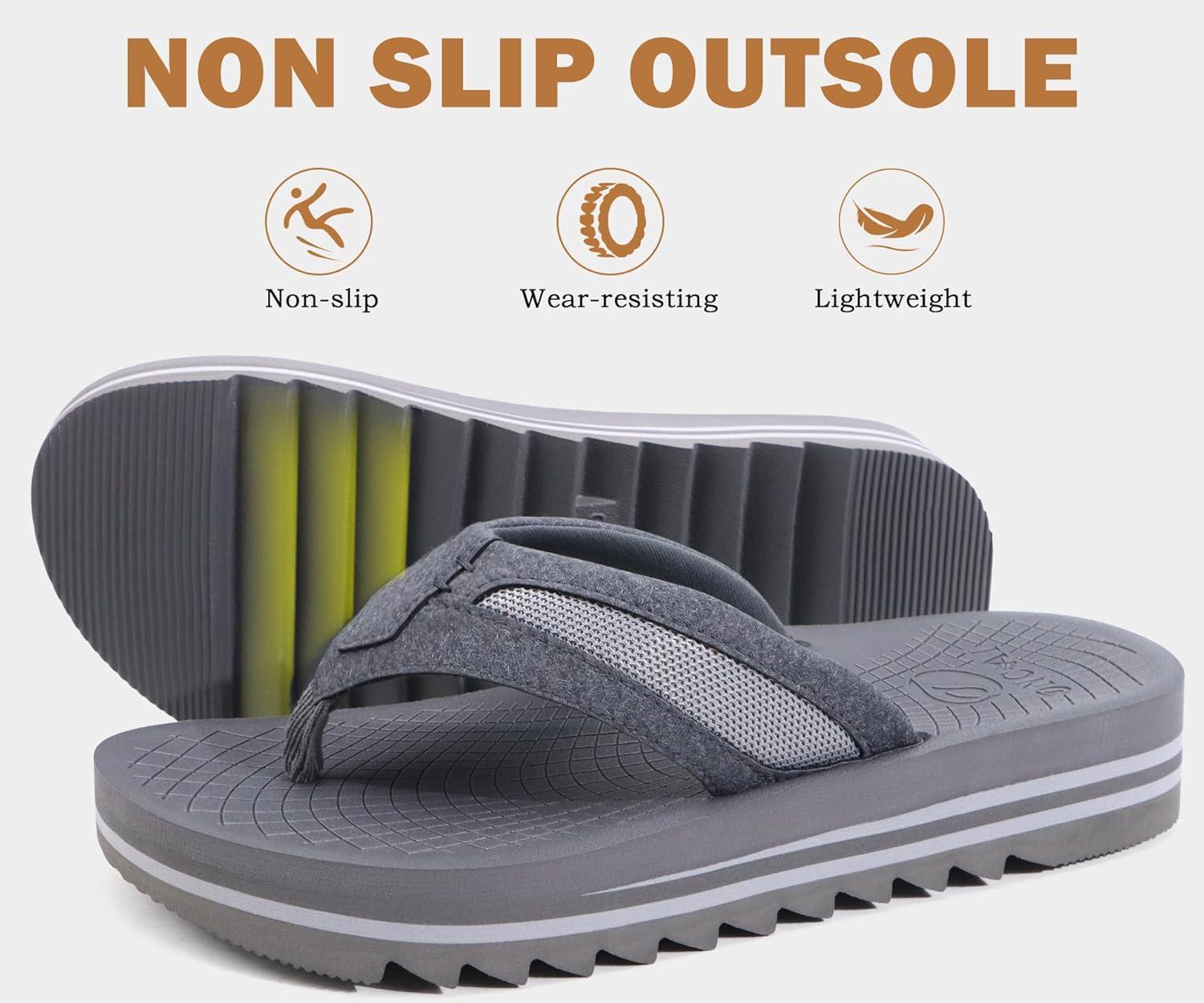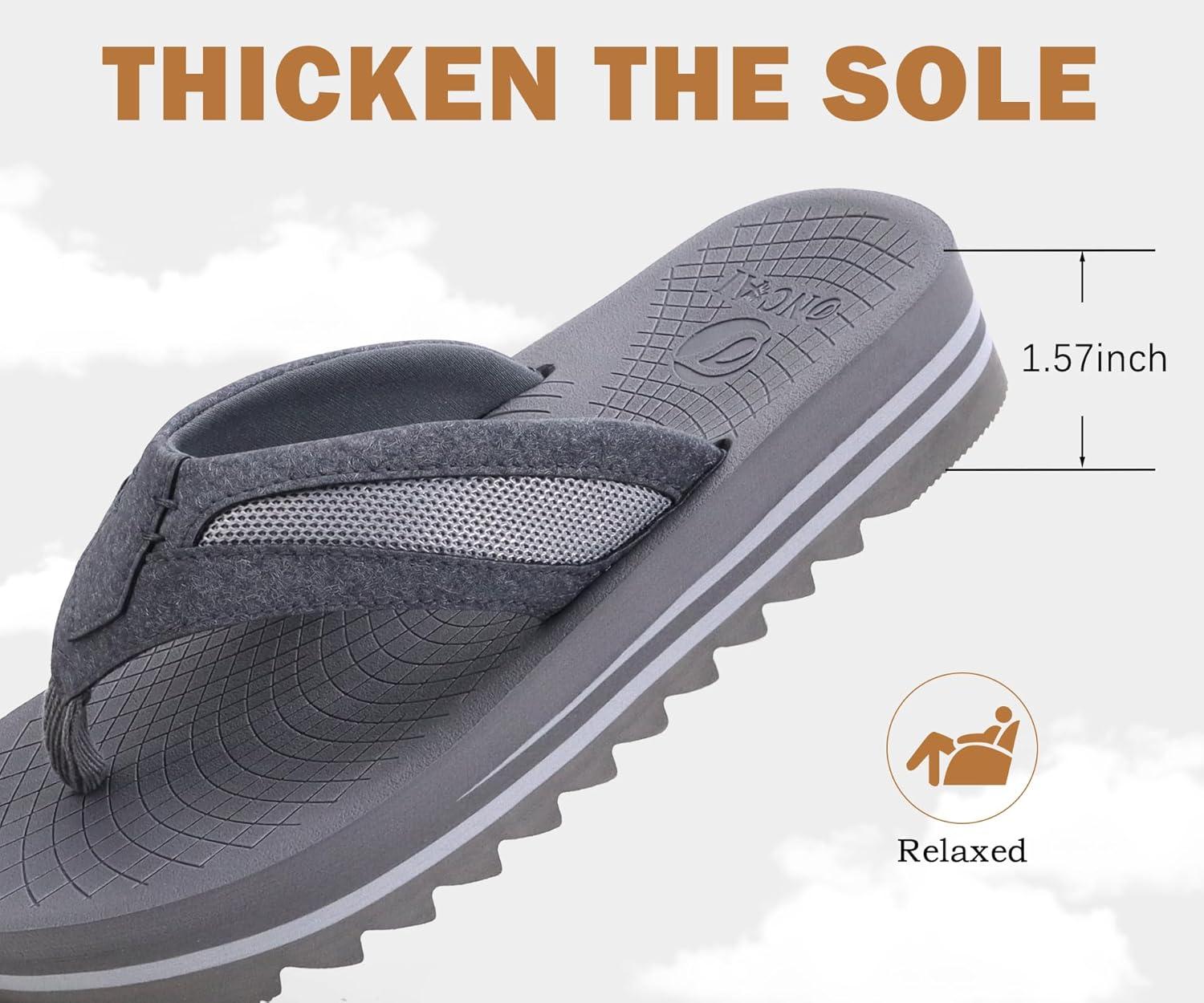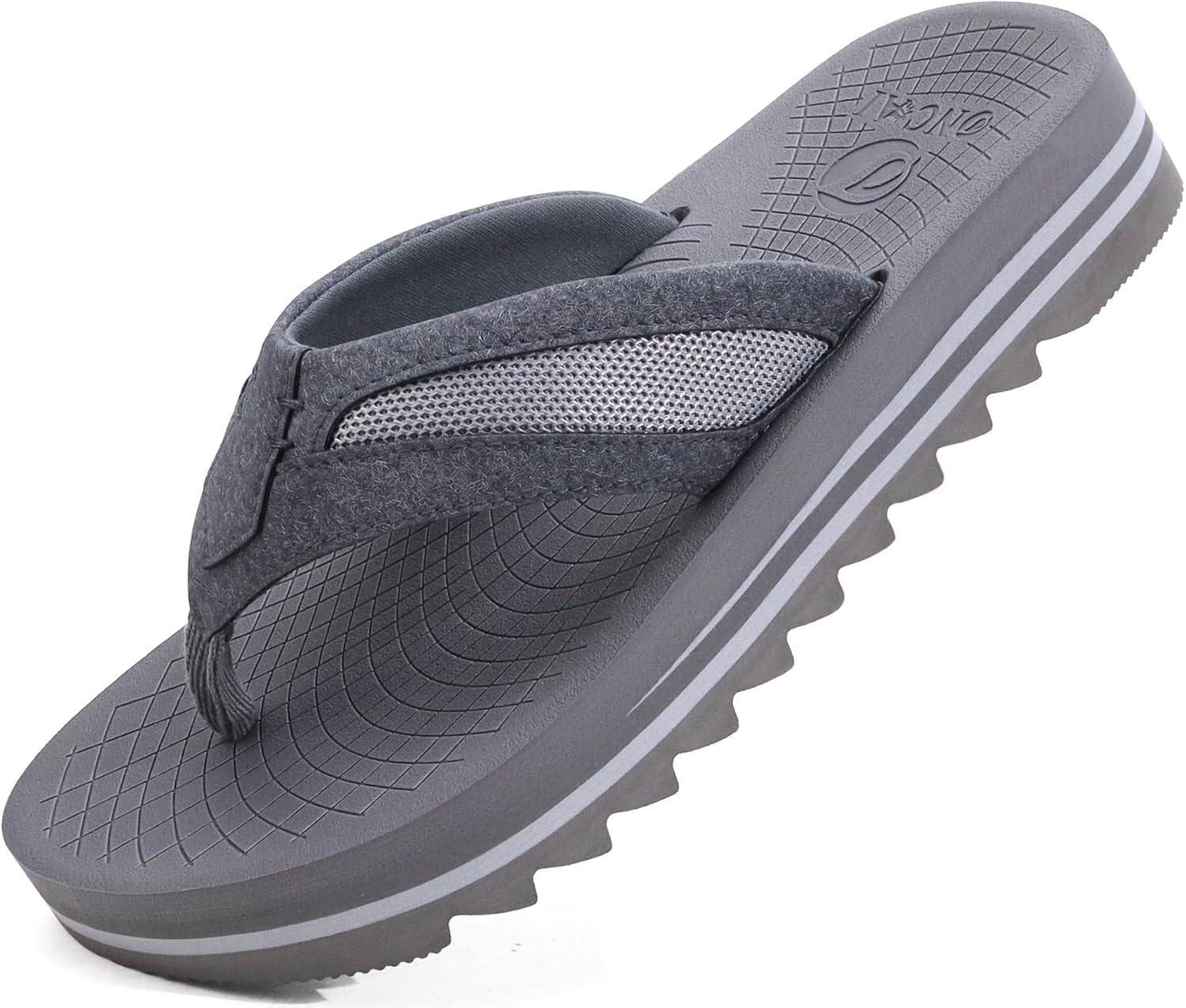 ONCAI Men’s Flip Flops with Arch Support Orthotic Cushion Recovery Walking Slide Sandals for Men with Platform Summer Comfortable Soft Rubber Soles(US Size 7-15)(Grey)