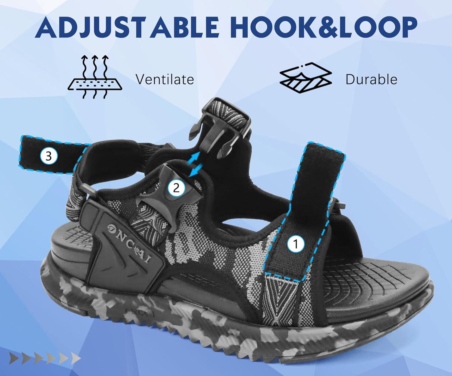 ONCAI Men’s Hiking Sandals,Arch Support Orthopedic Recovery Walking Sandal with Adjustable Strap Outdoor Summer Water Camouflage Mesh Athletic Sports Shoes US Size 7-15(Black-camo)