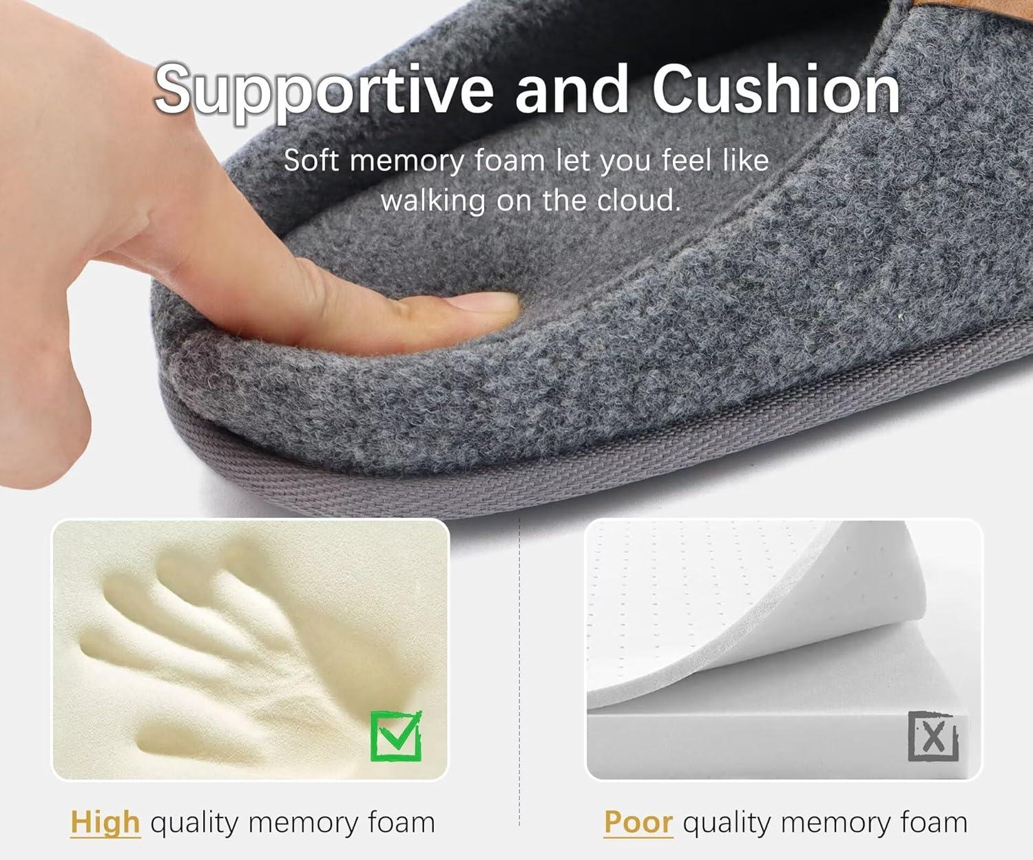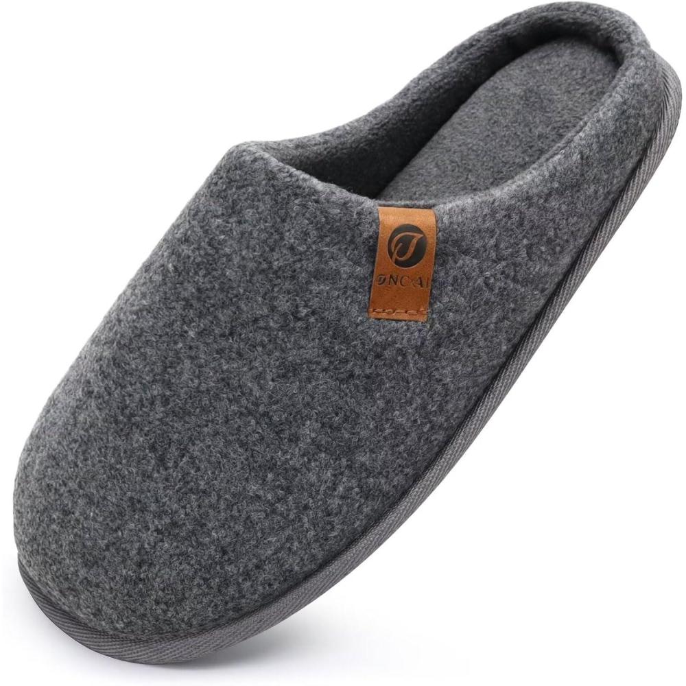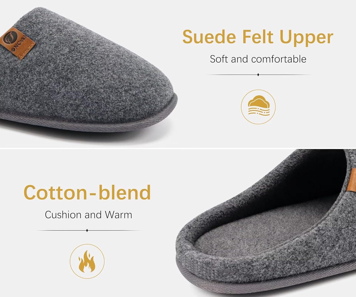 ONCAI Men’s House Slippers Memory Foam Slip-On Warm Cozy Scuff Home Bedroom Shoes with Indoor/Outdoor Rubber Soles US Size 7-15(Felt Grey)