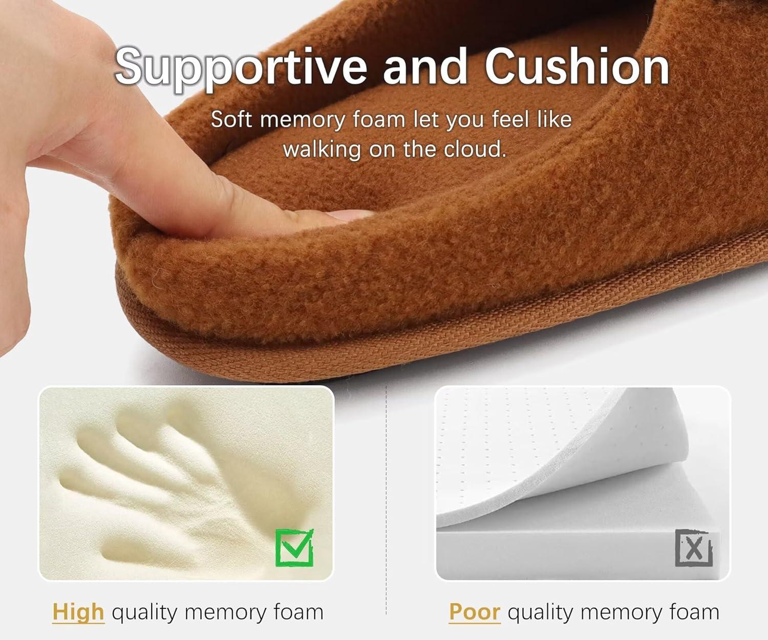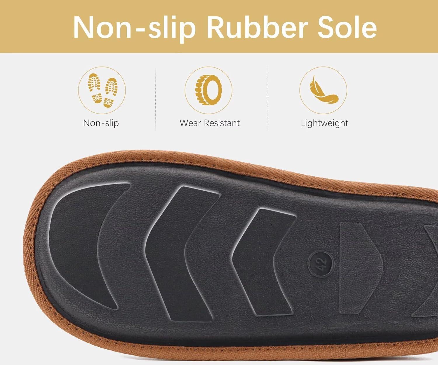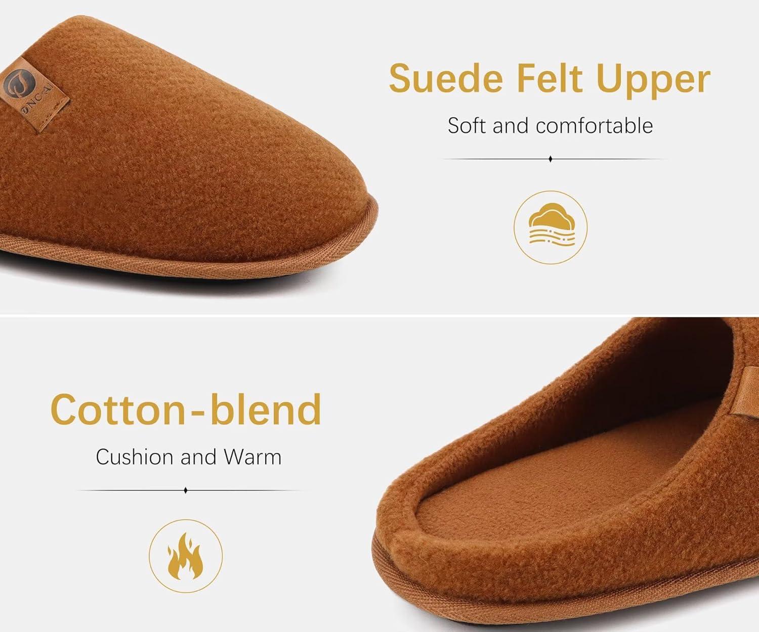 ONCAI Men’s House Slippers Memory Foam Slip-On Warm Cozy Scuff Home Bedroom Shoes with Indoor/Outdoor Rubber Soles US Size 7-15(Felt Khaki)