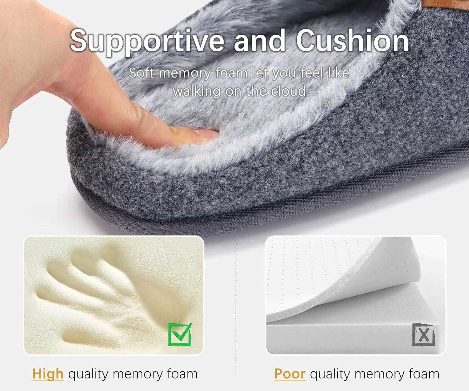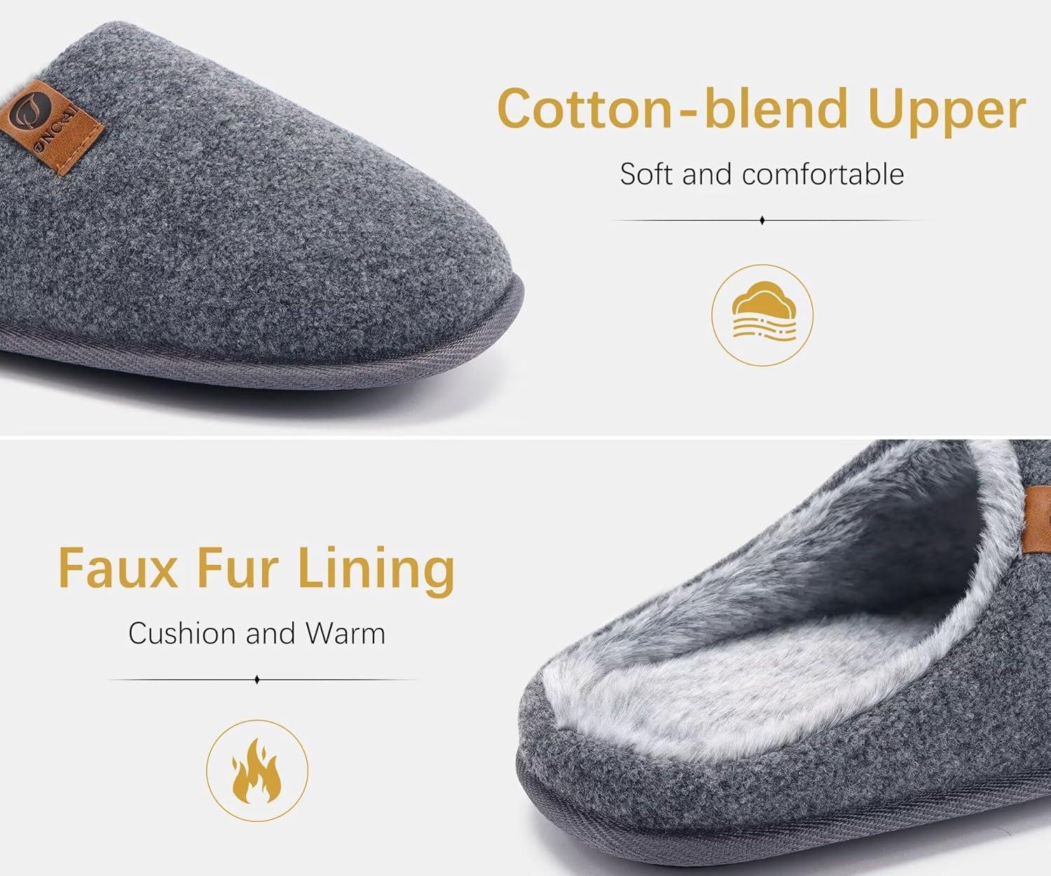 ONCAI Men’s House Slippers Memory Foam Slip-On Warm Cozy Scuff Home Bedroom Shoes with Indoor/Outdoor Rubber Soles US Size 7-15(Felt Plush Grey)