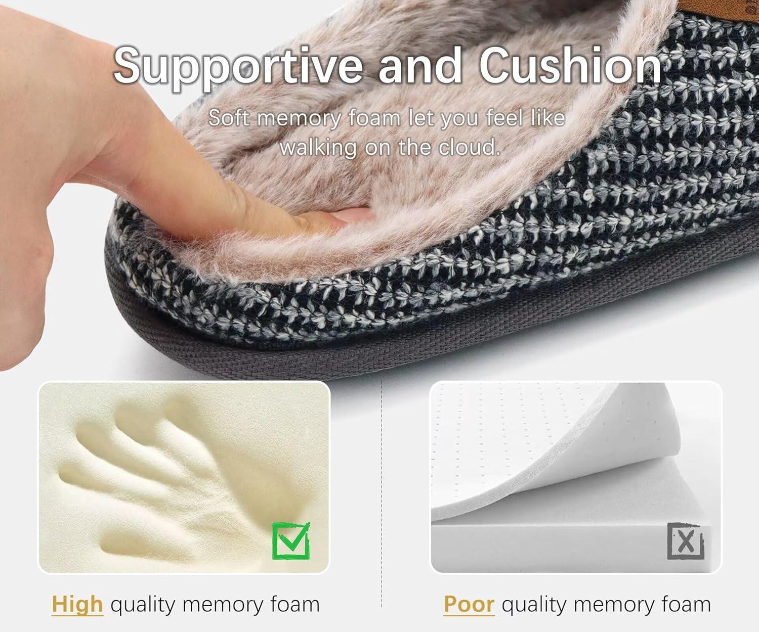 ONCAI Men’s House Slippers Memory Foam Slip-On Warm Cozy Scuff Home Bedroom Shoes with Indoor/Outdoor Rubber Soles US Size 7-15(Plush Black)