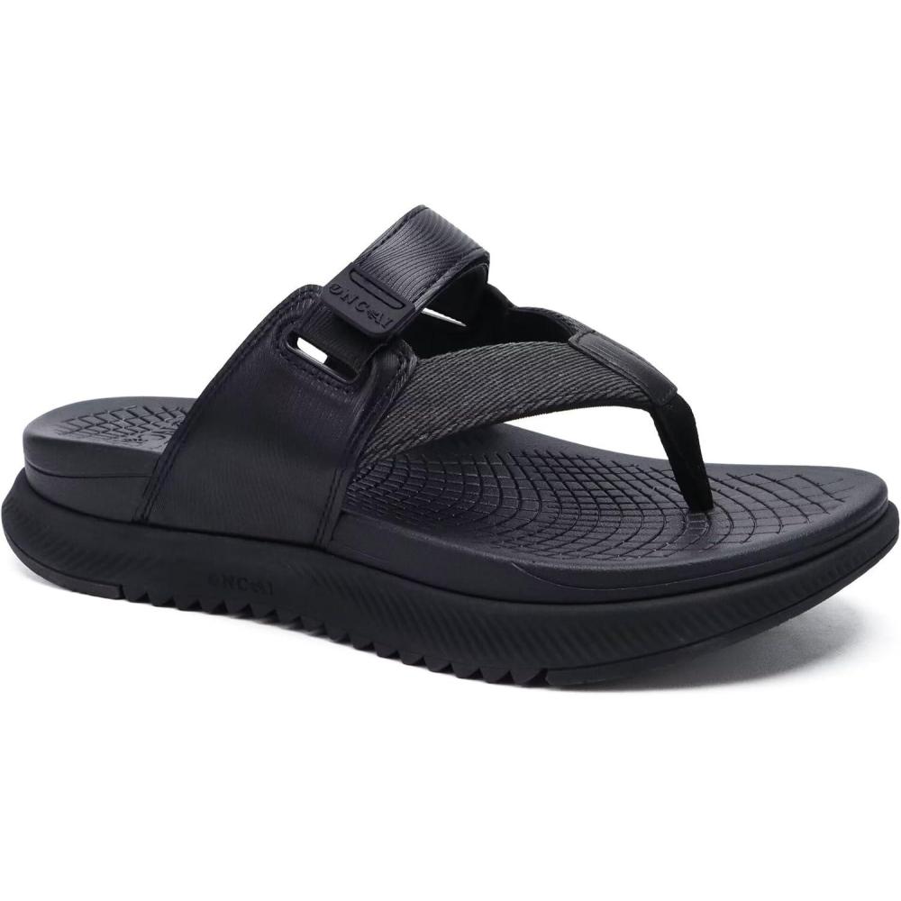 ONCAI Mens Orthopedic Flip Flops Men’s Walking Sandals with Arch Support Sport Recovery Sandal for Man size 7-14(Black)