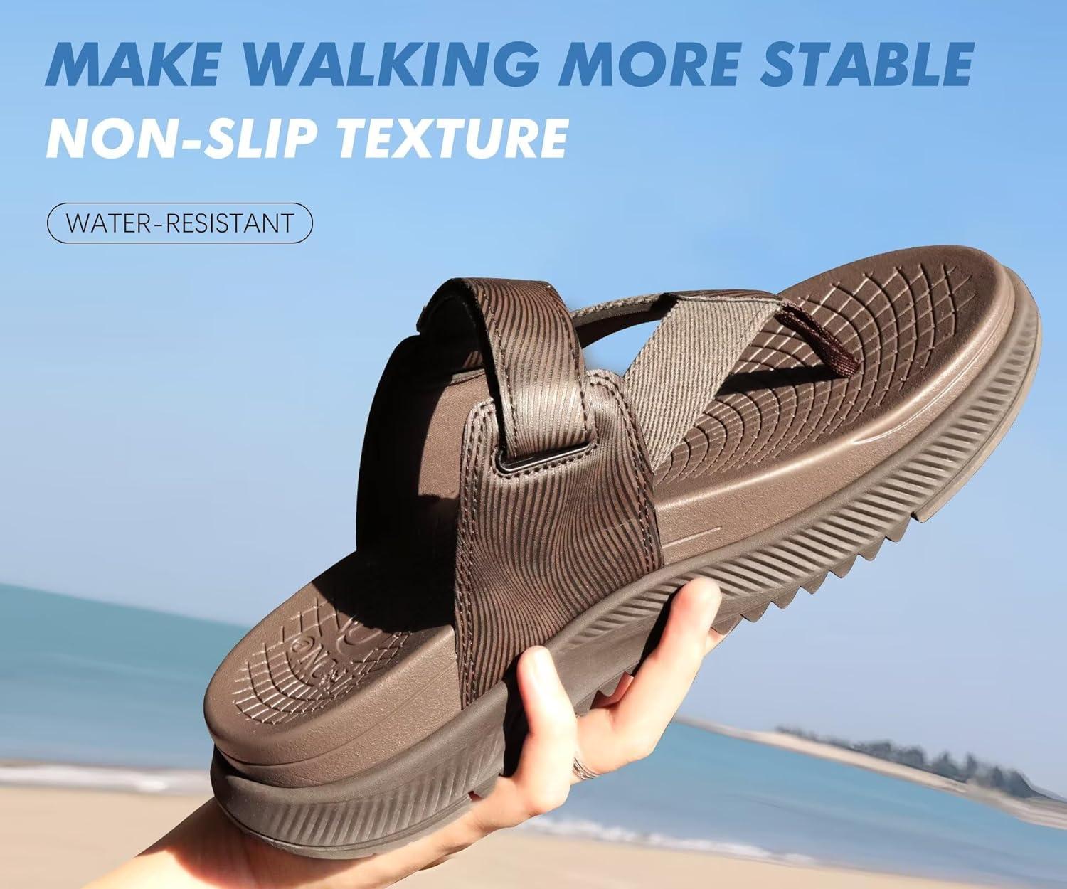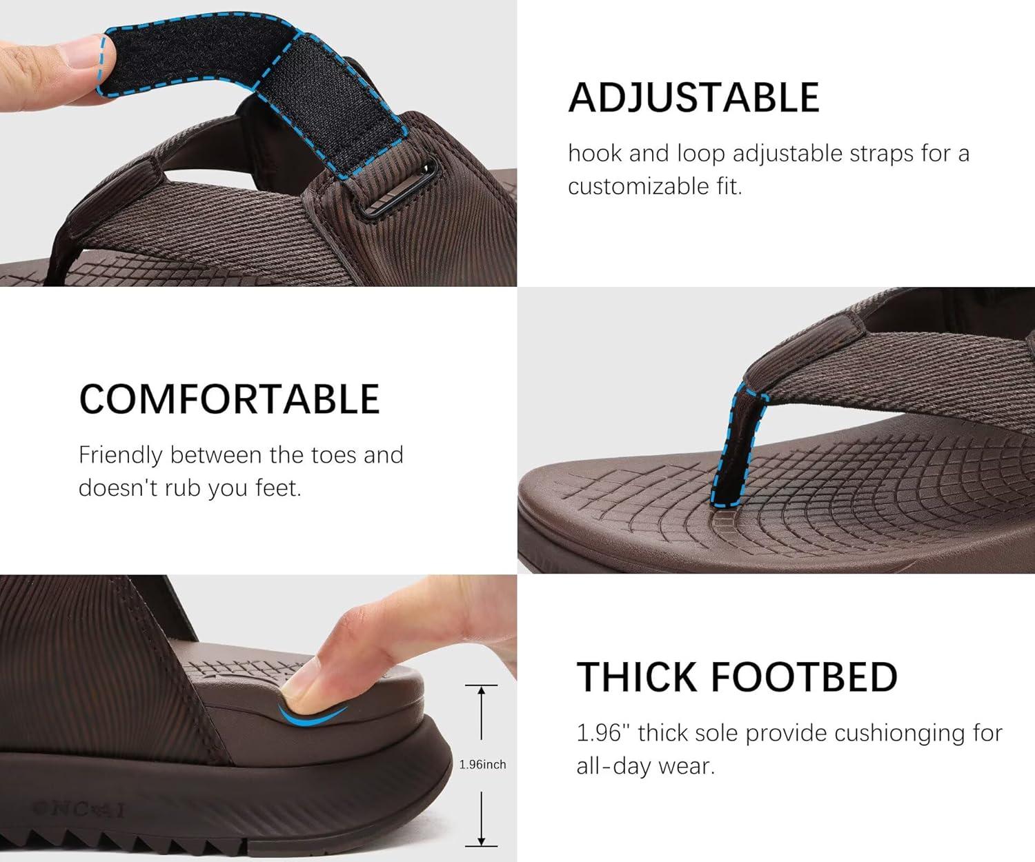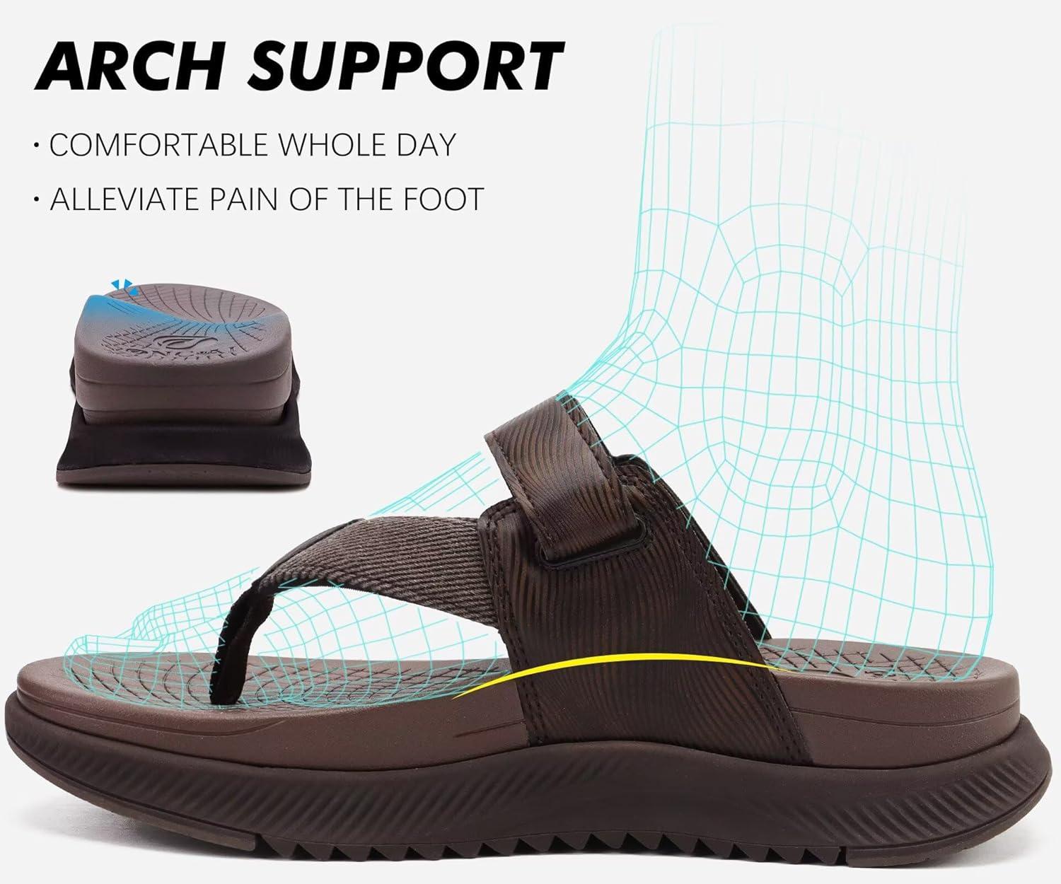 ONCAI Mens Orthopedic Flip Flops Men’s Walking Sandals with Arch Support Sport Recovery Sandal for Man size 7-14(Brown)