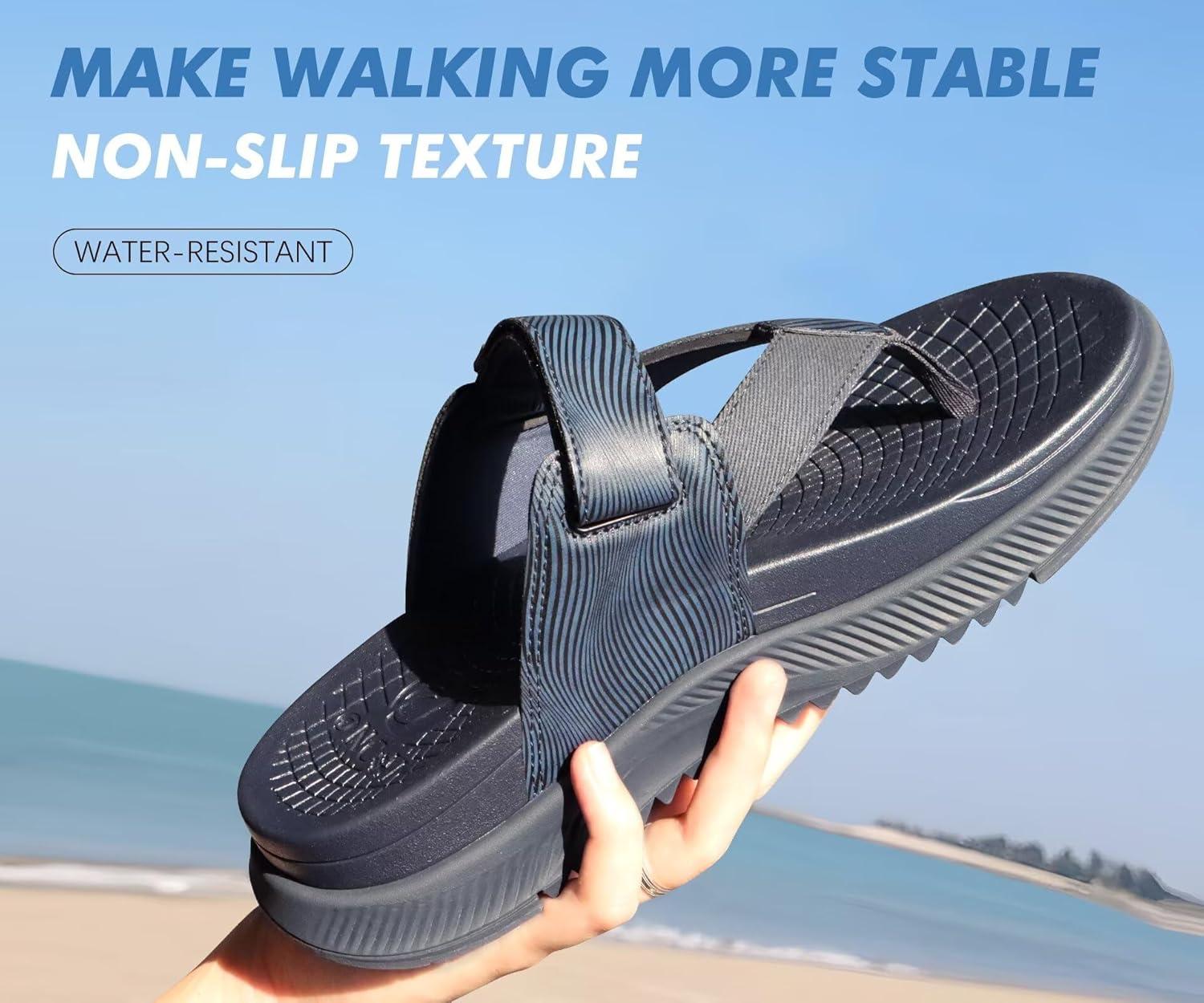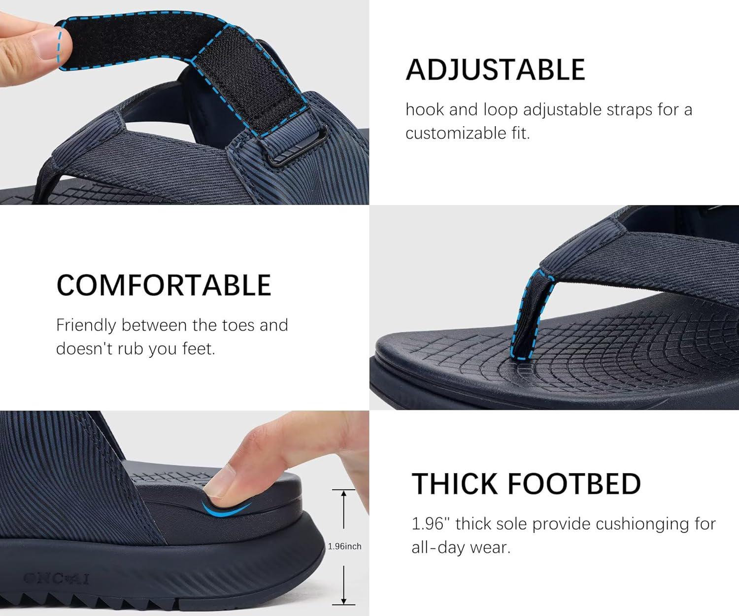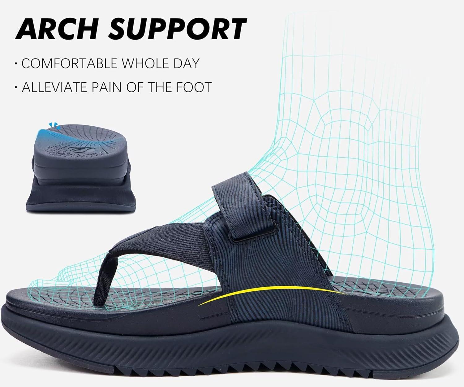 ONCAI Mens Orthopedic Flip Flops Men’s Walking Sandals with Arch Support Sport Recovery Sandal for Man size 7-14(Darkblue)