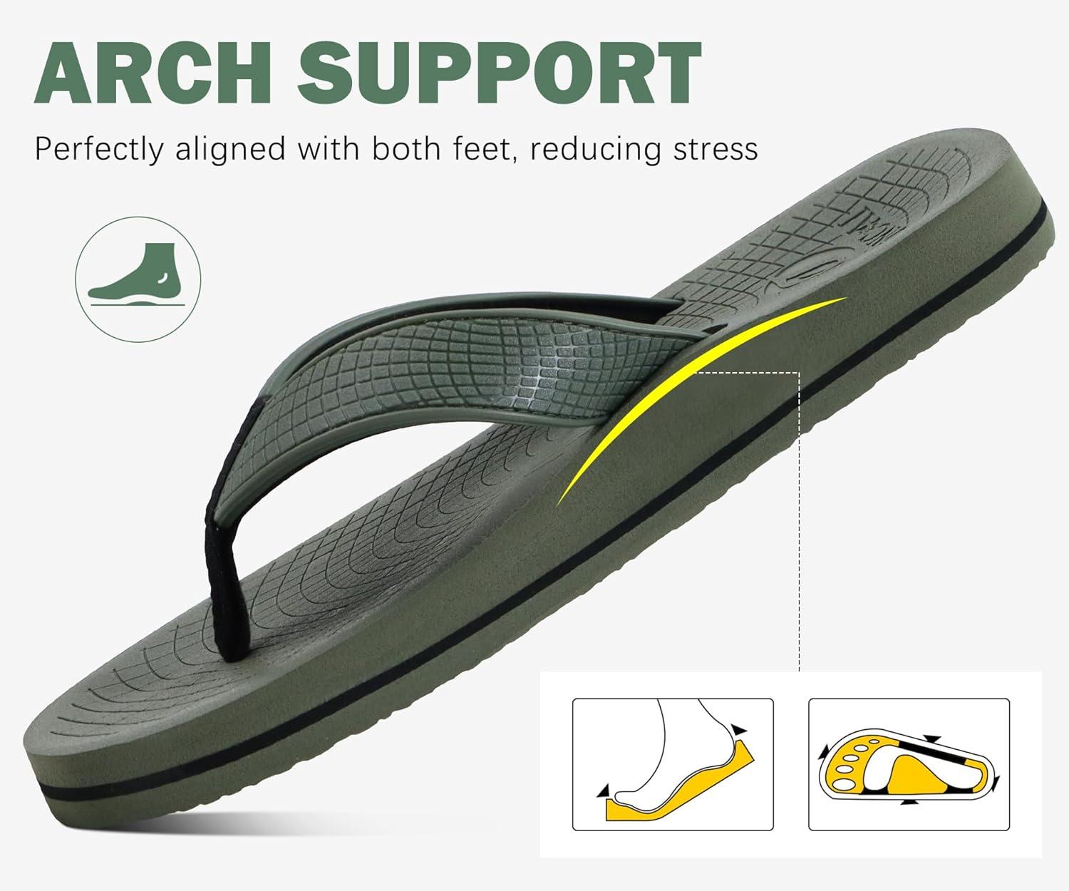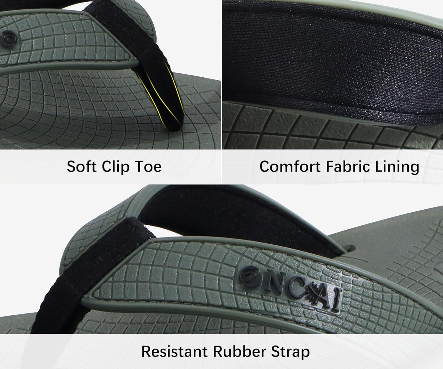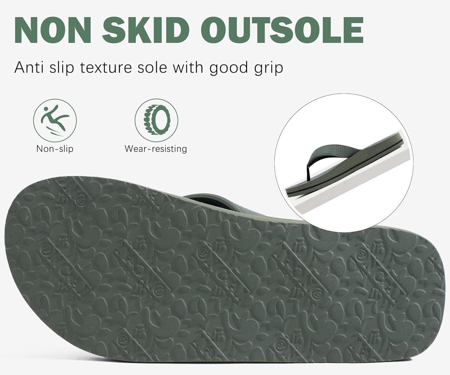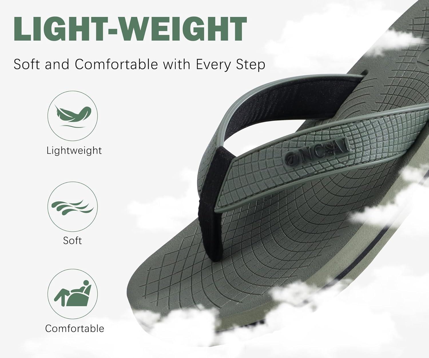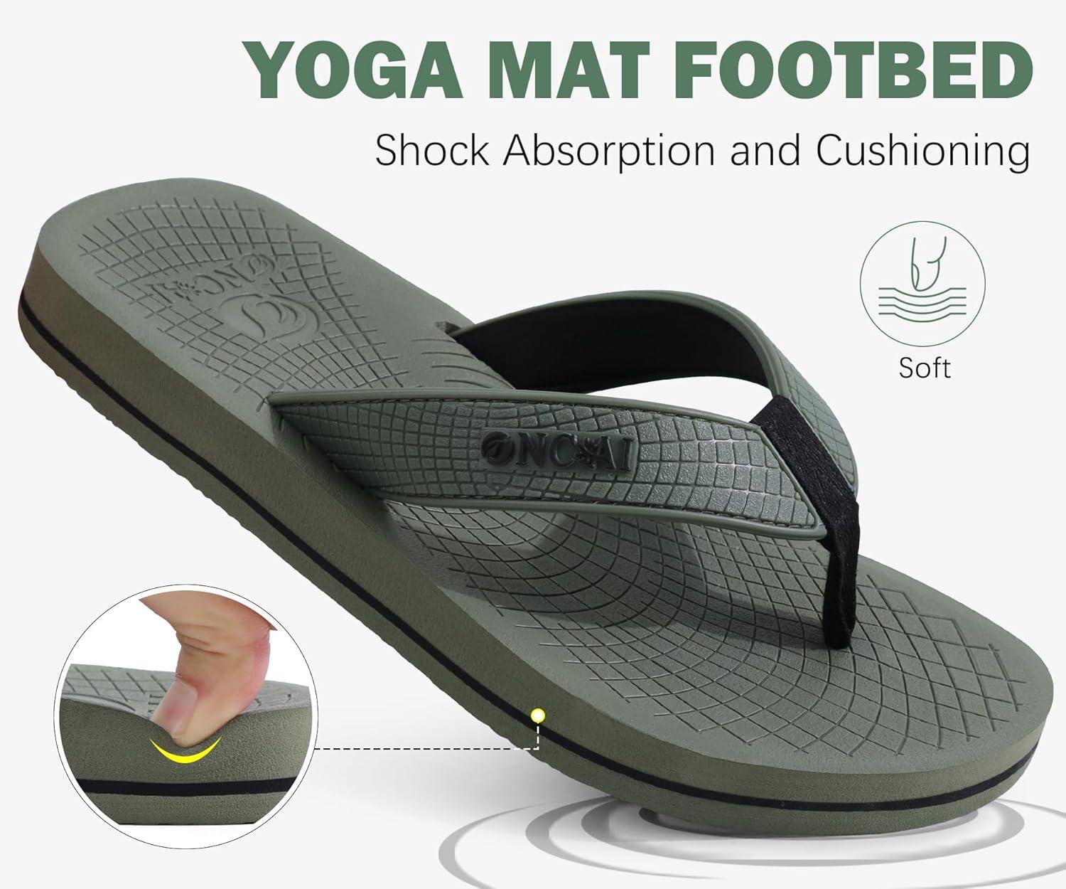 ONCAI Men’s Rubber Flip Flops Trendy Summer Beach Pool Shower Sandals with Yoga Mat Non-slip Outdoor Cushion Soles(Army Green)