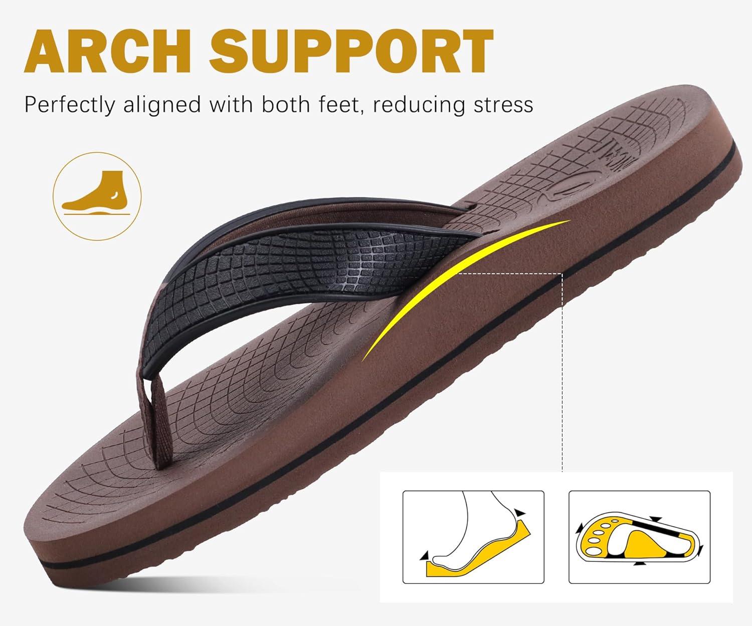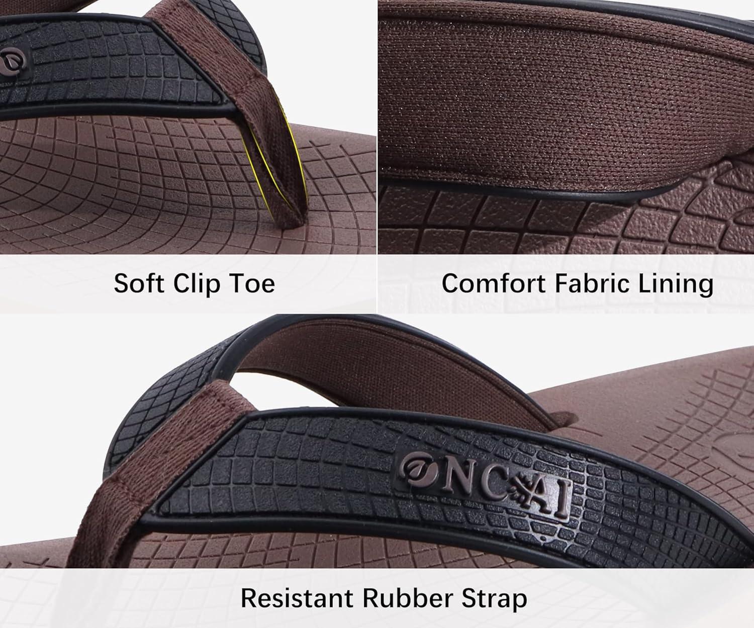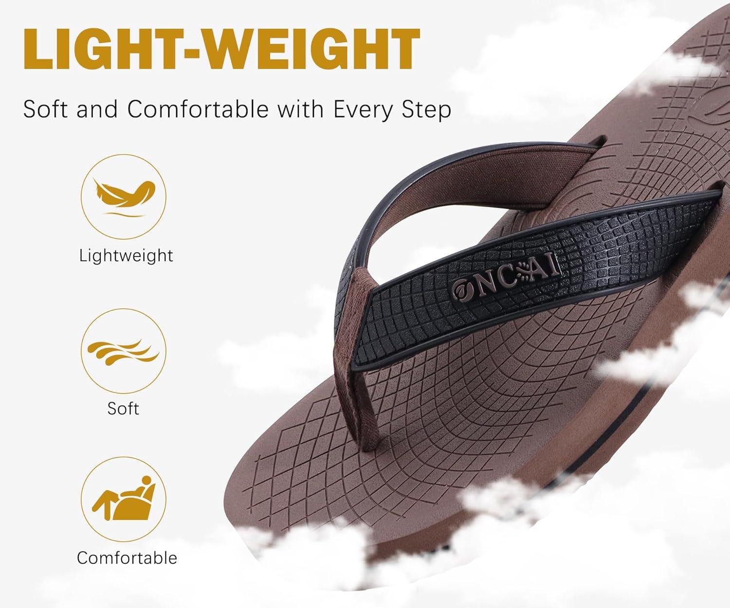 ONCAI Men’s Rubber Flip Flops Trendy Summer Beach Pool Shower Sandals with Yoga Mat Non-slip Outdoor Cushion Soles(Black/Brown)