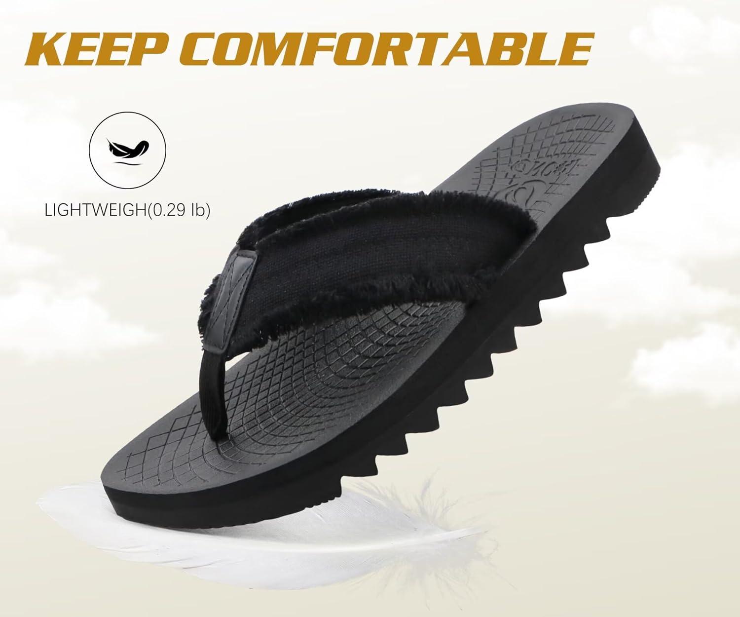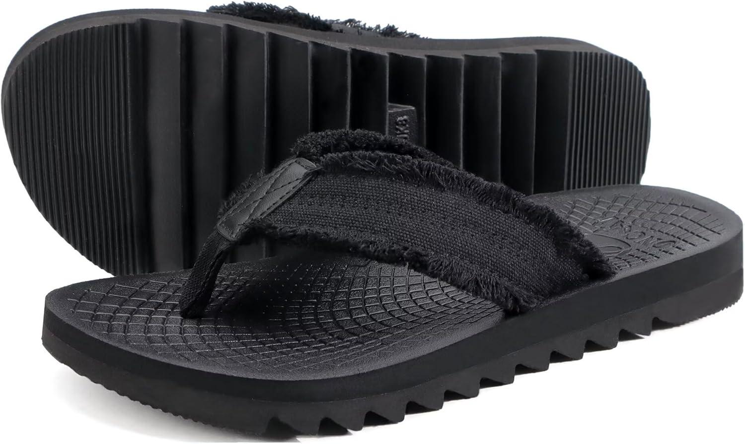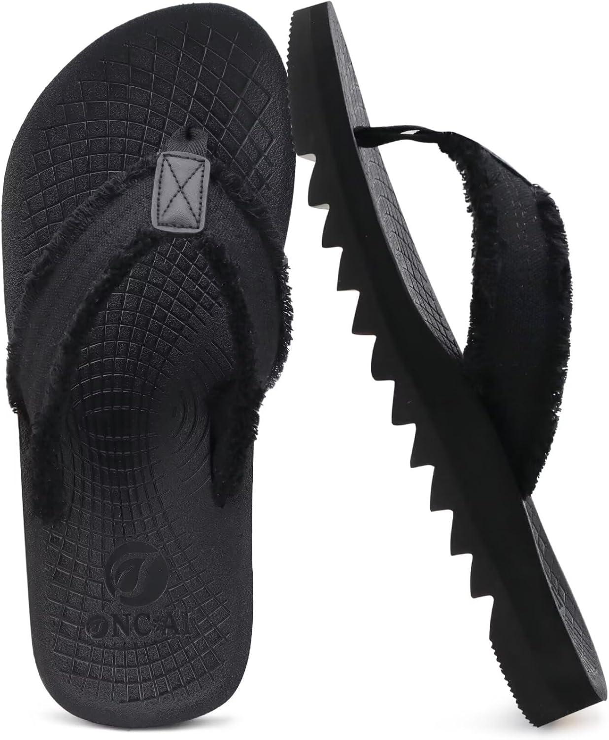 ONCAI Men’s Rubber Flip Flops Trendy Summer Beach Pool Shower Sandals with Yoga Mat Non-slip Outdoor Cushion Soles(Black-vacations)