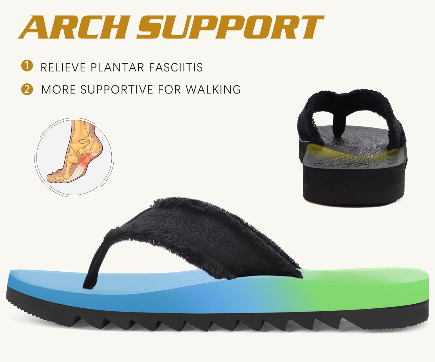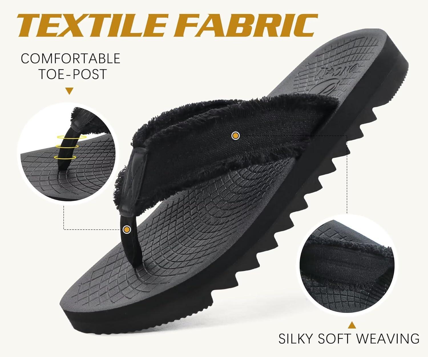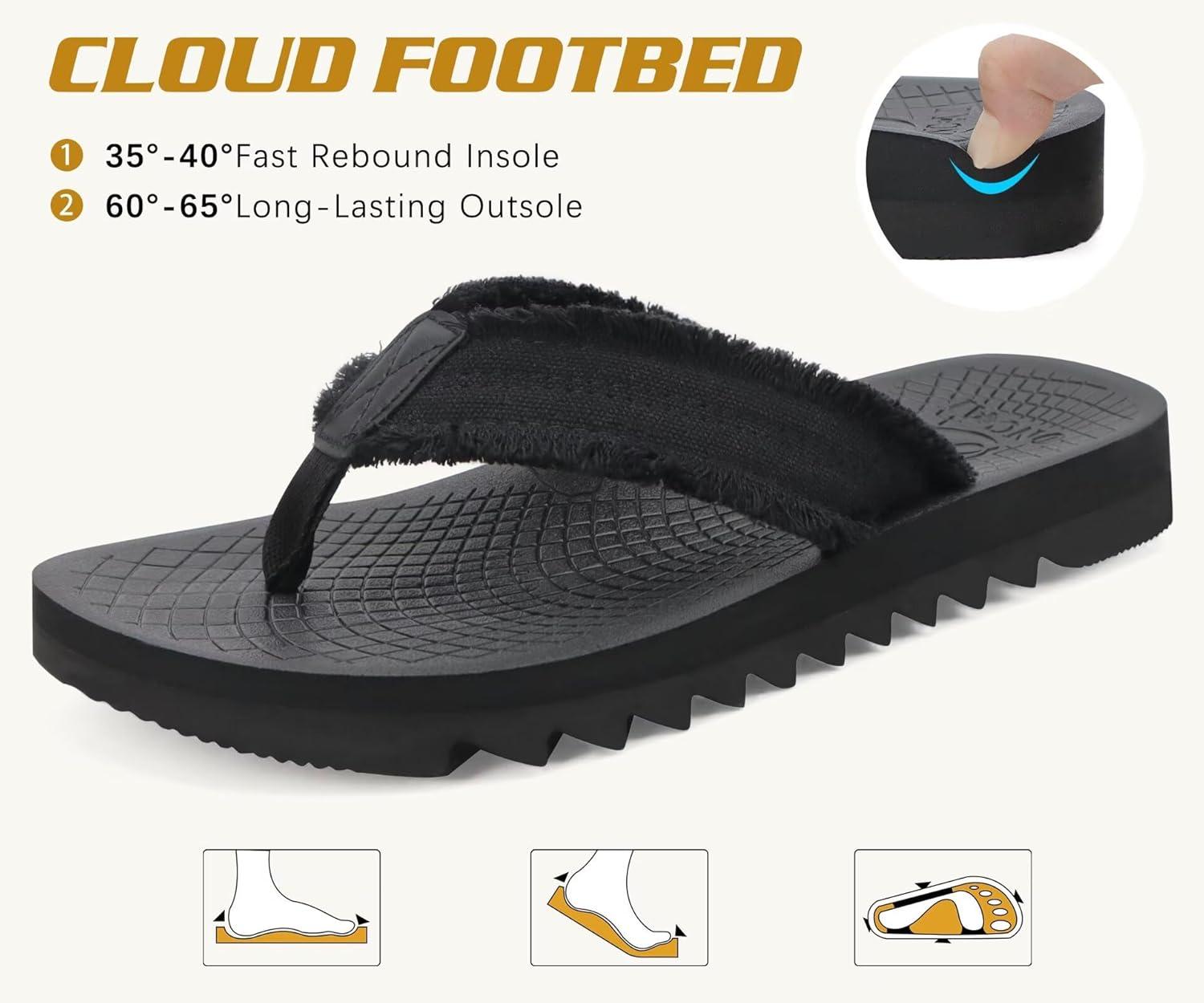 ONCAI Men’s Rubber Flip Flops Trendy Summer Beach Pool Shower Sandals with Yoga Mat Non-slip Outdoor Cushion Soles(Black-vacations)