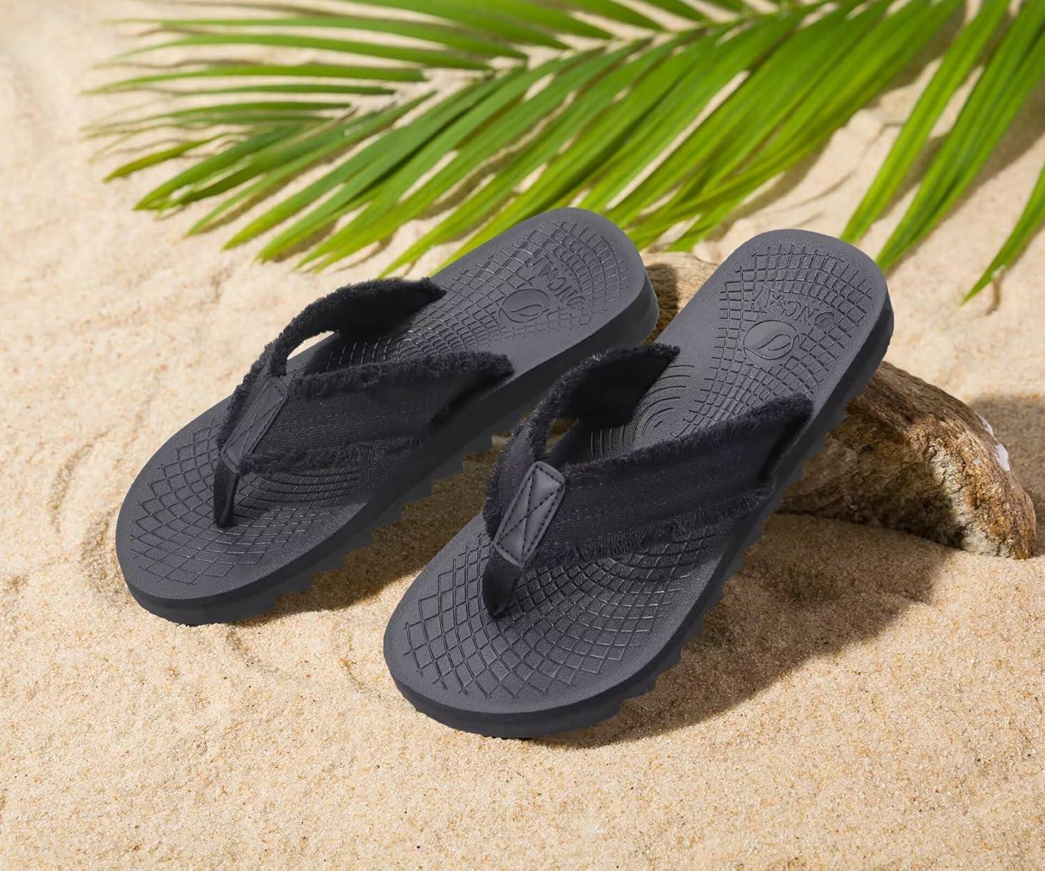 Be the first to review “ONCAI Men’s Rubber Flip Flops Trendy Summer Beach Pool Shower Sandals with Yoga Mat Non-slip Outdoor Cushion Soles(Black-vacations)”