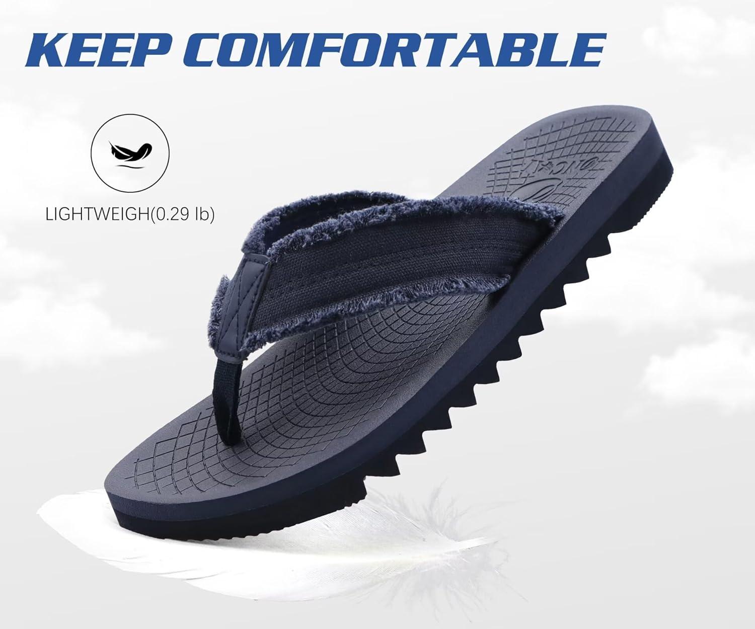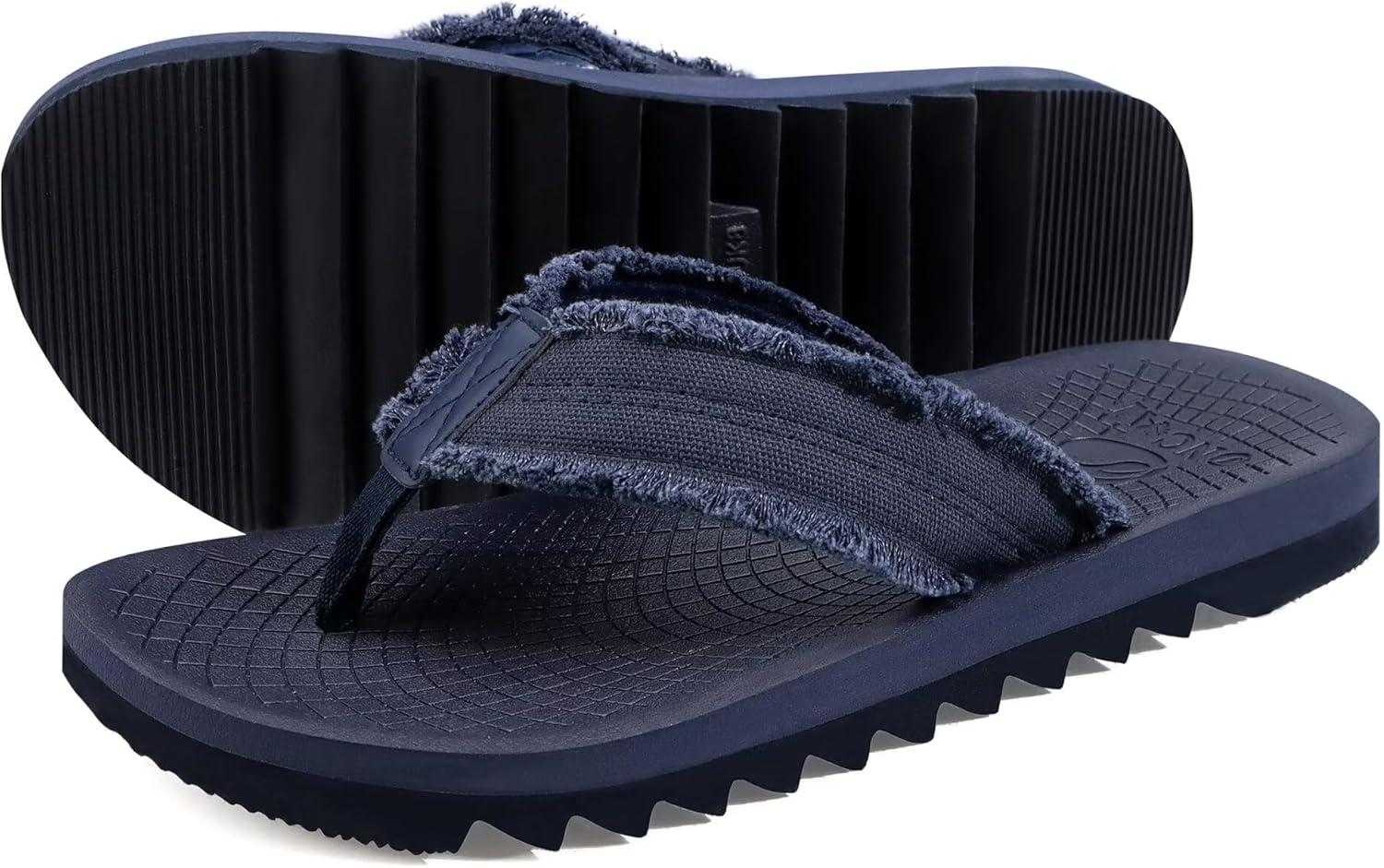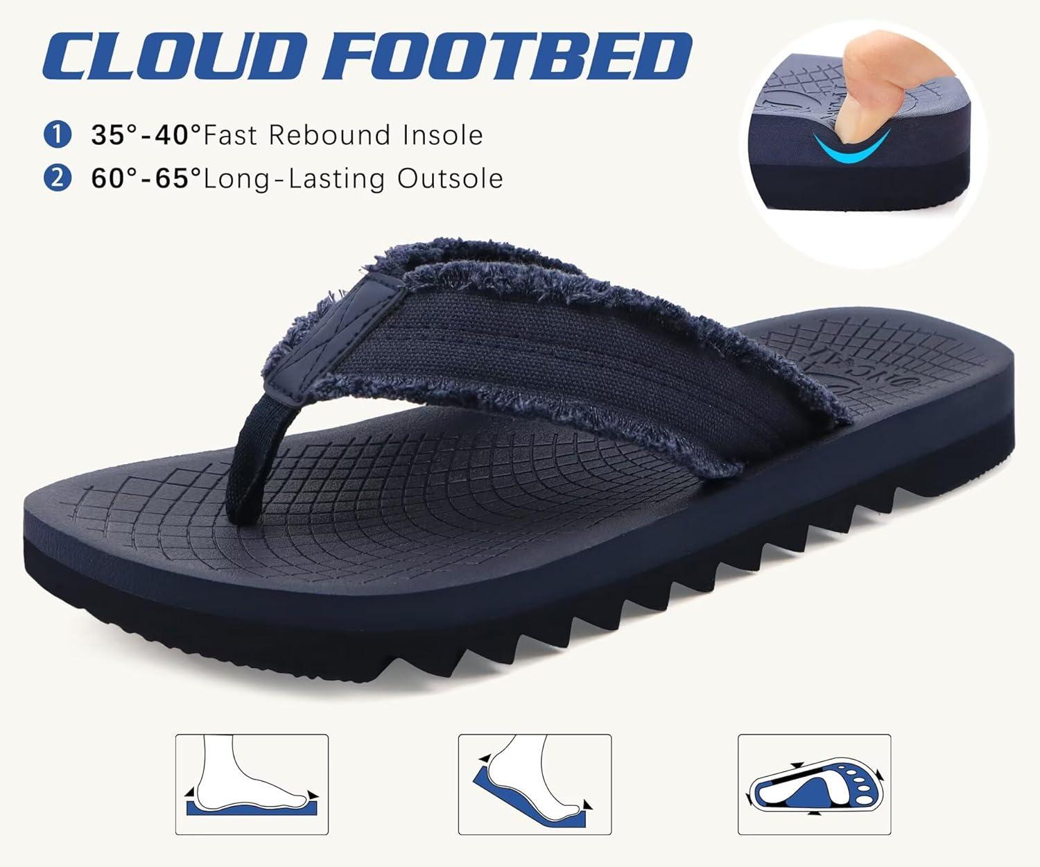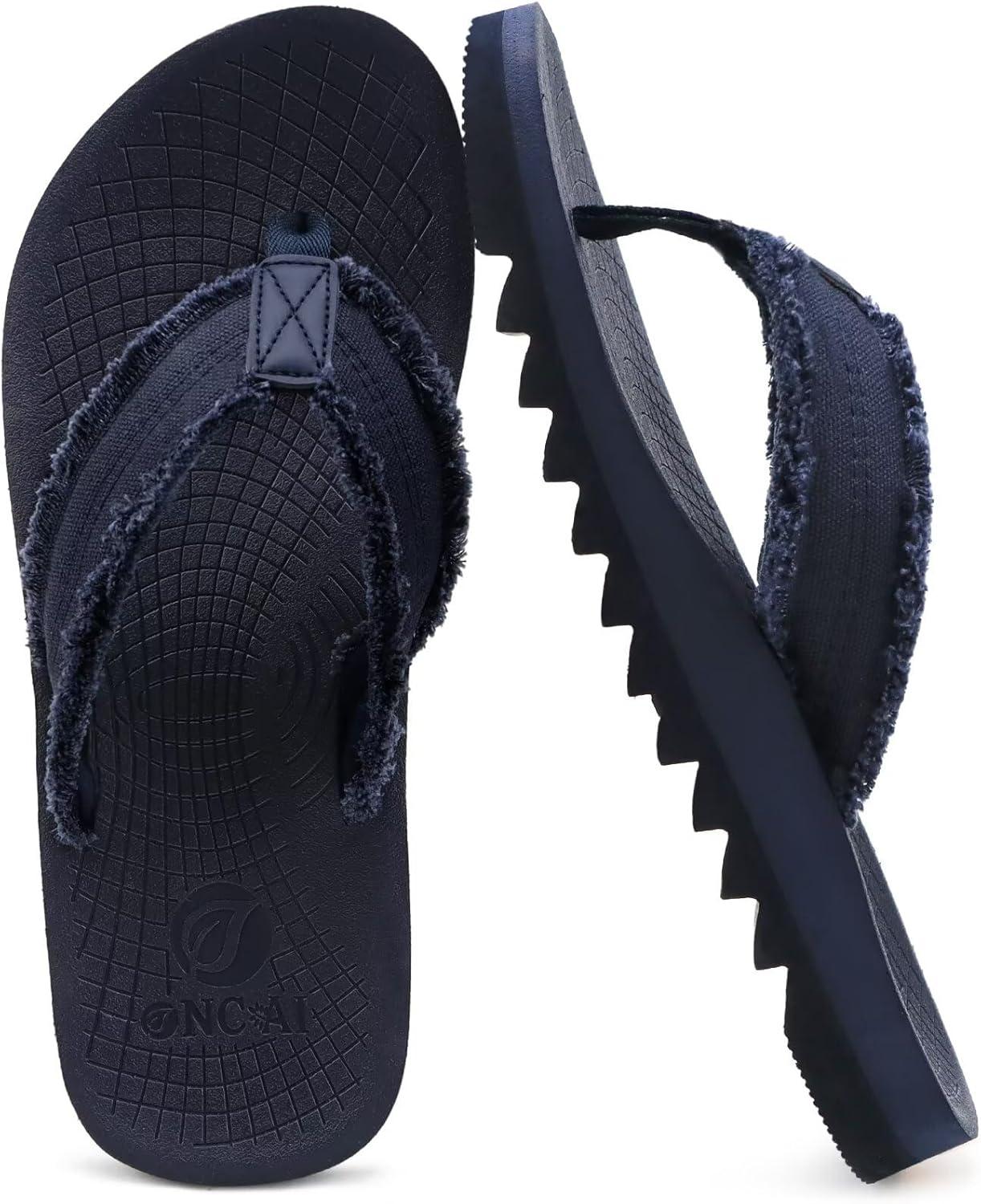 ONCAI Men’s Rubber Flip Flops Trendy Summer Beach Pool Shower Sandals with Yoga Mat Non-slip Outdoor Cushion Soles(Blue-vacations)