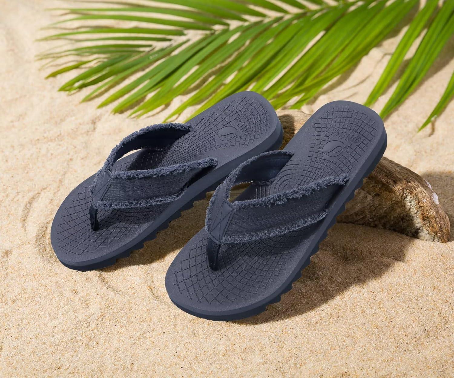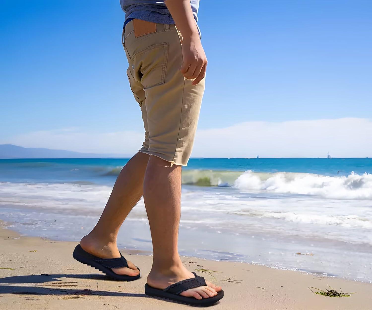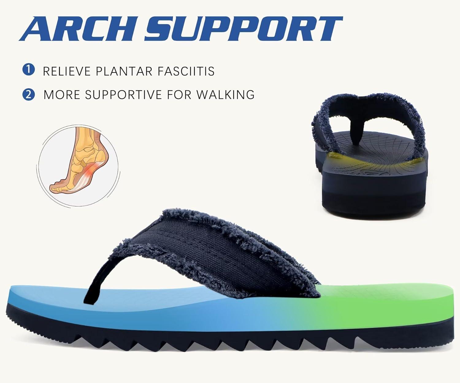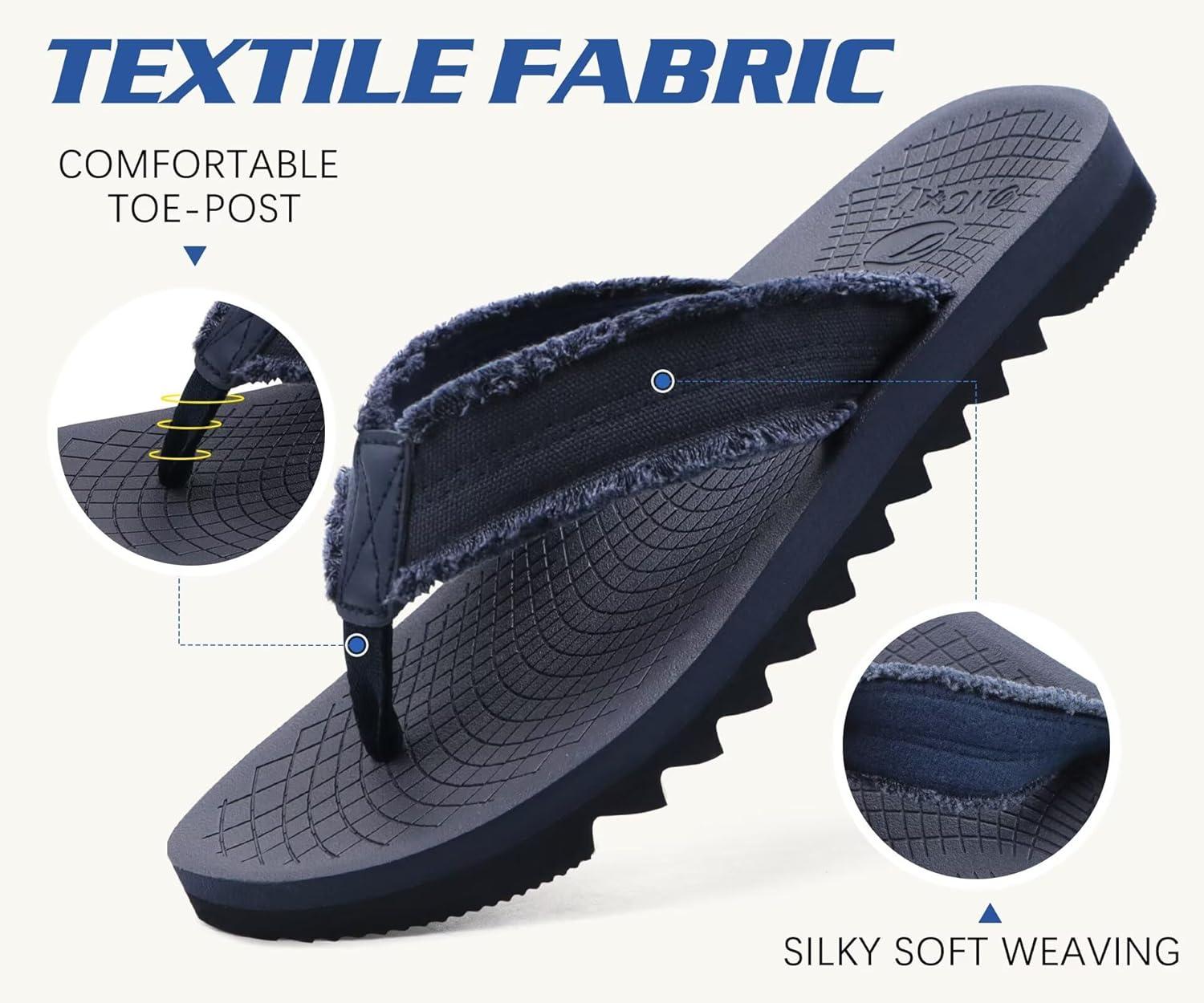 ONCAI Men’s Rubber Flip Flops Trendy Summer Beach Pool Shower Sandals with Yoga Mat Non-slip Outdoor Cushion Soles(Blue-vacations)