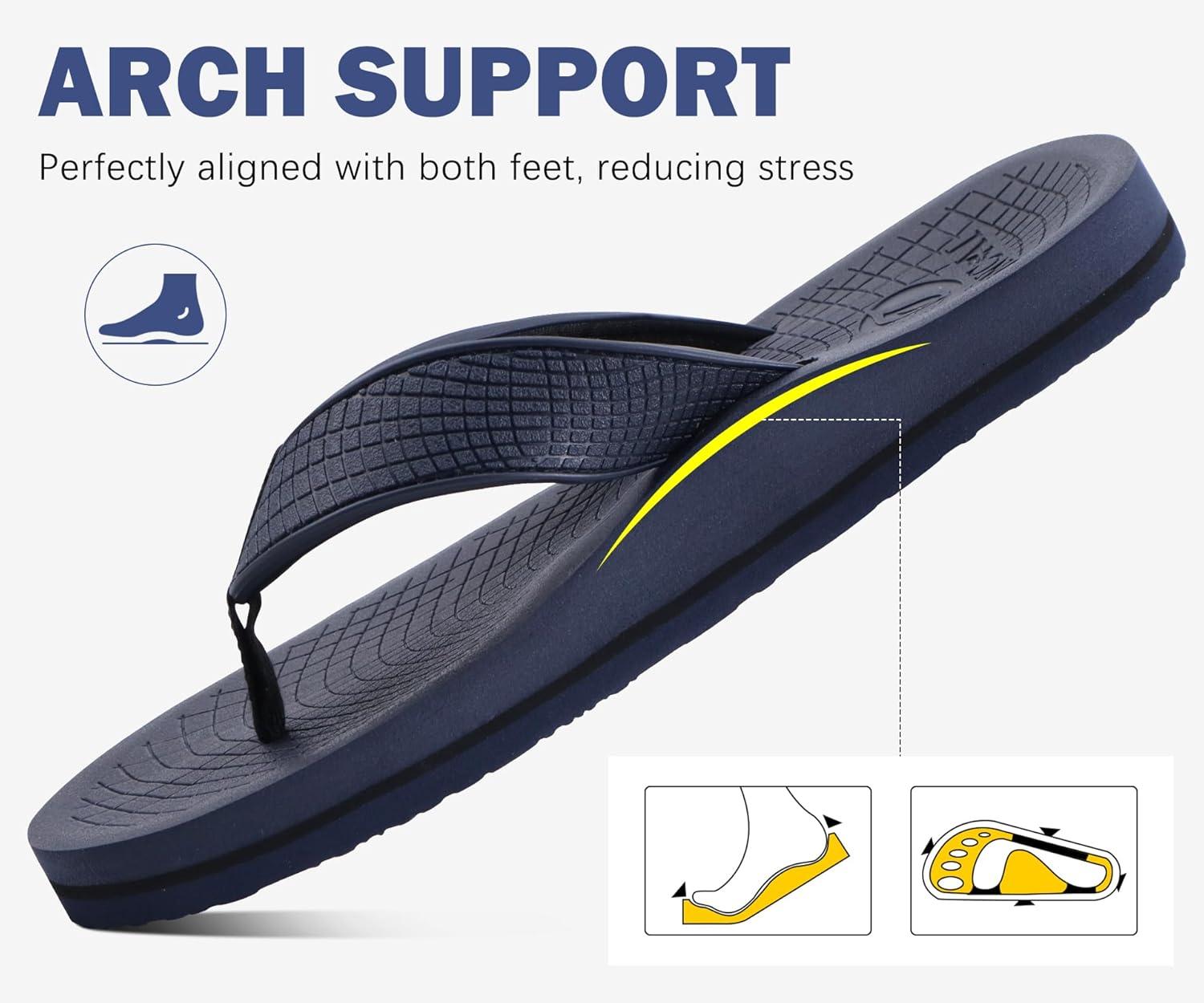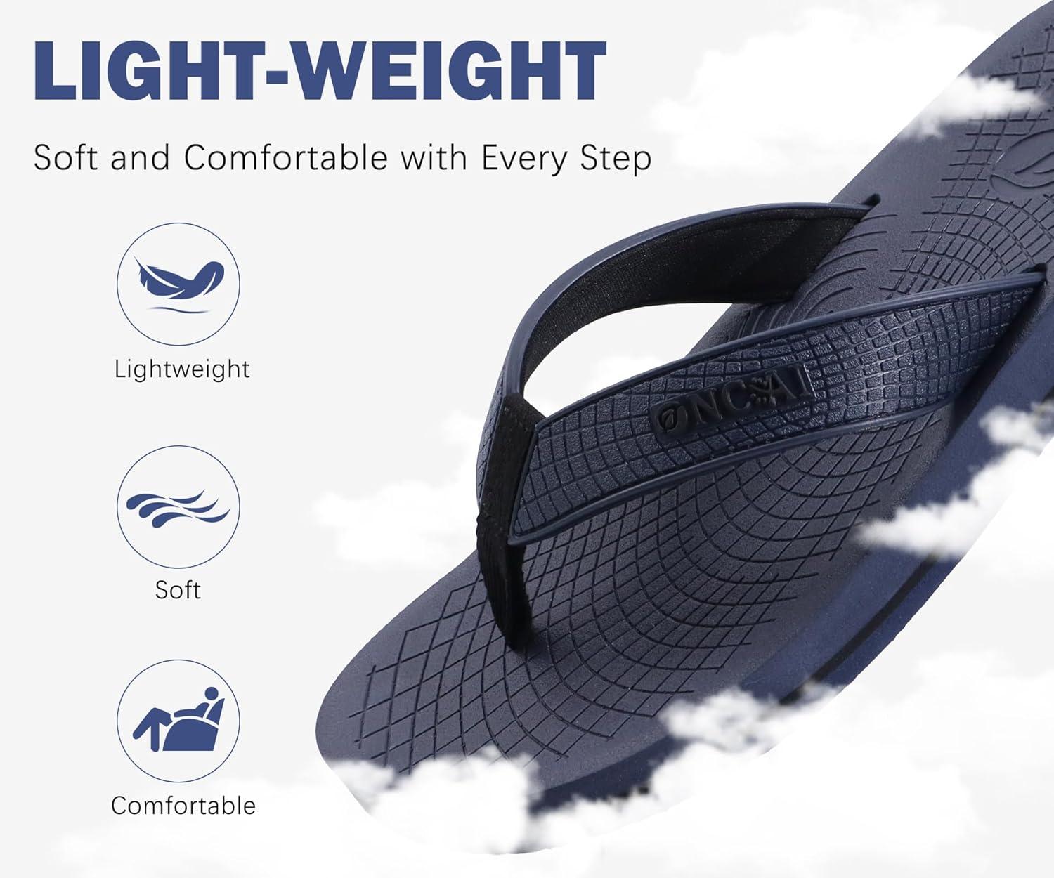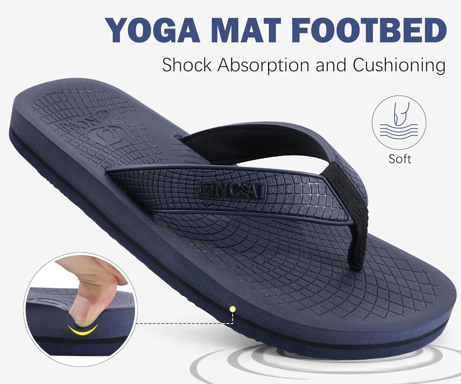 Get your hands on our newest ONCAI Men’s Rubber Flip Flops Trendy Summer Beach Pool Shower Sandals with Yoga Mat Non-slip Outdoor Cushion Soles(Dark Blue) and enjoy a limited-time discount offer.