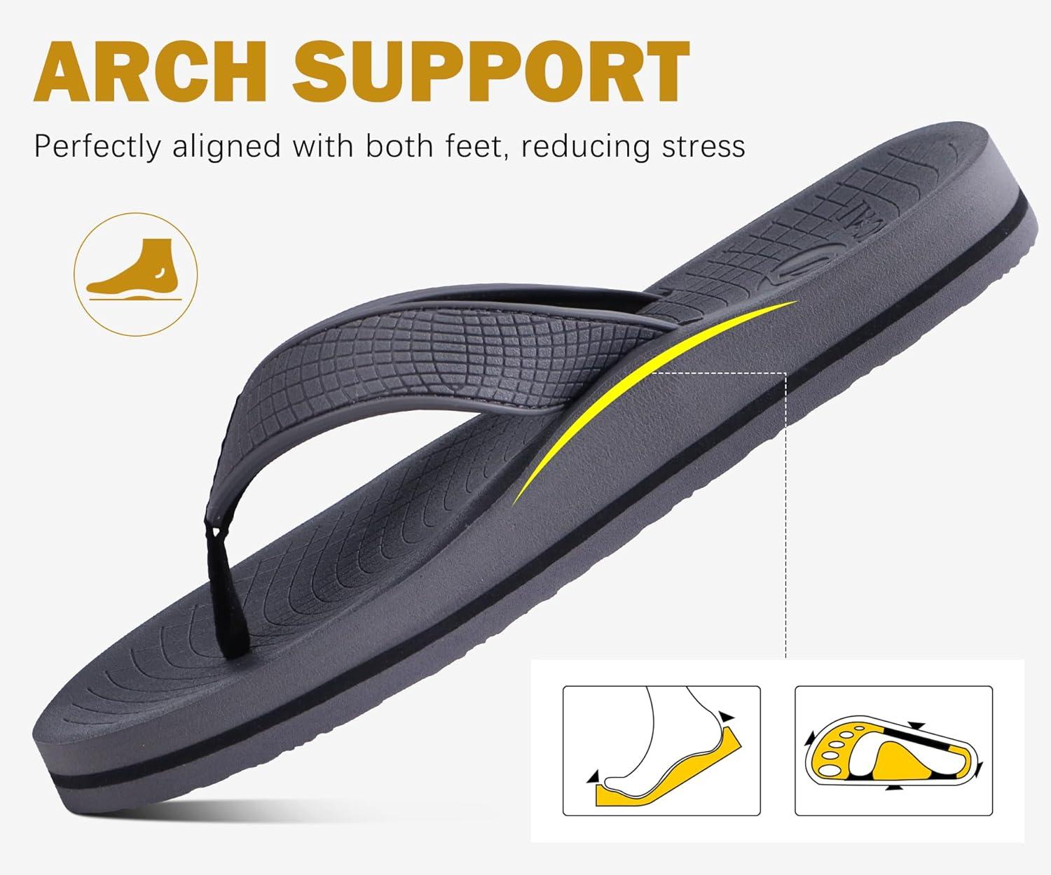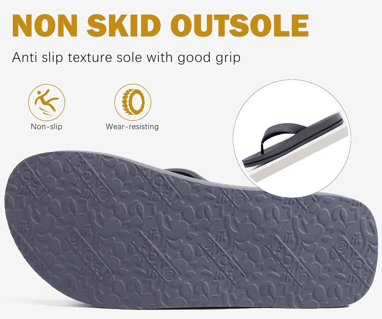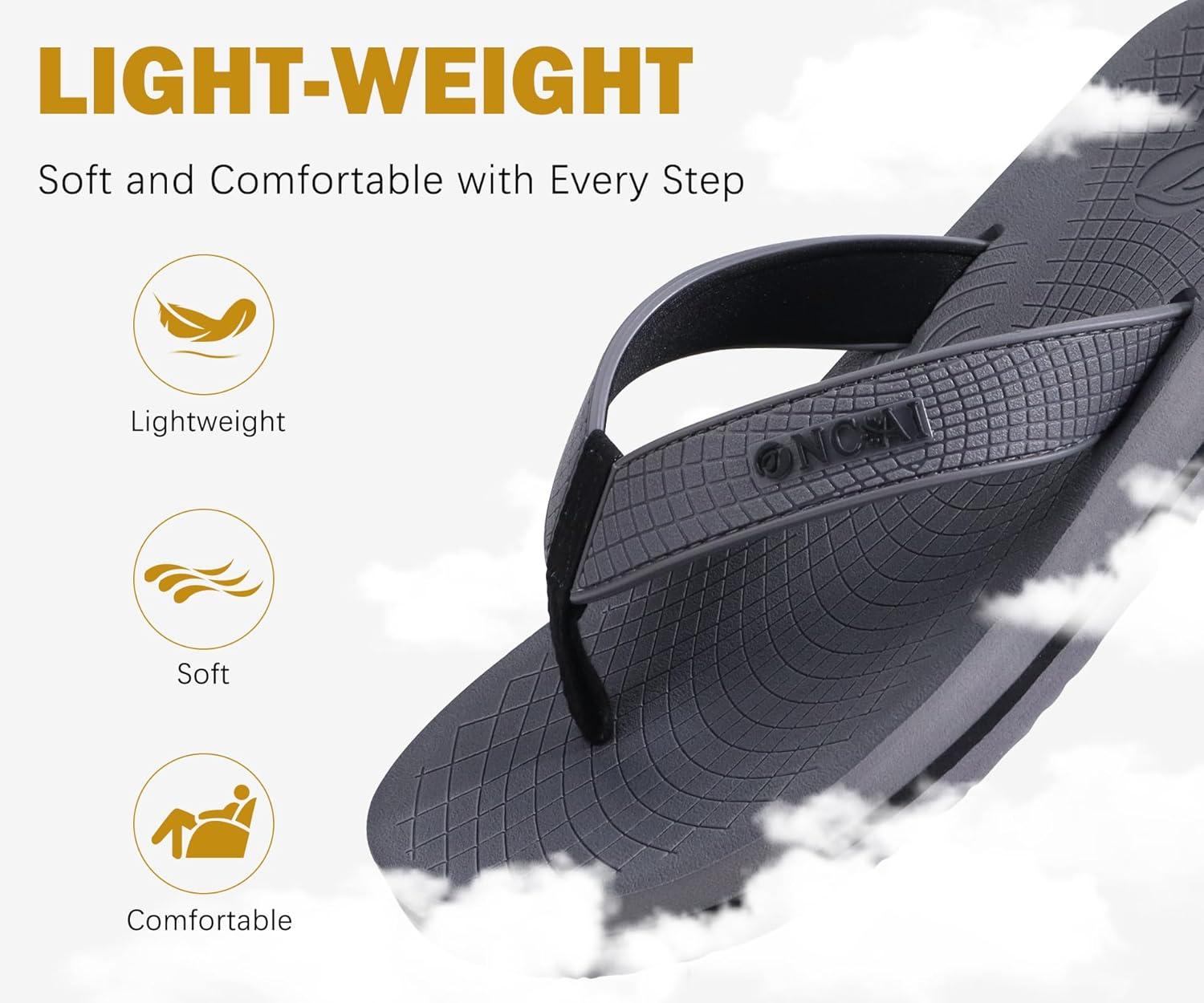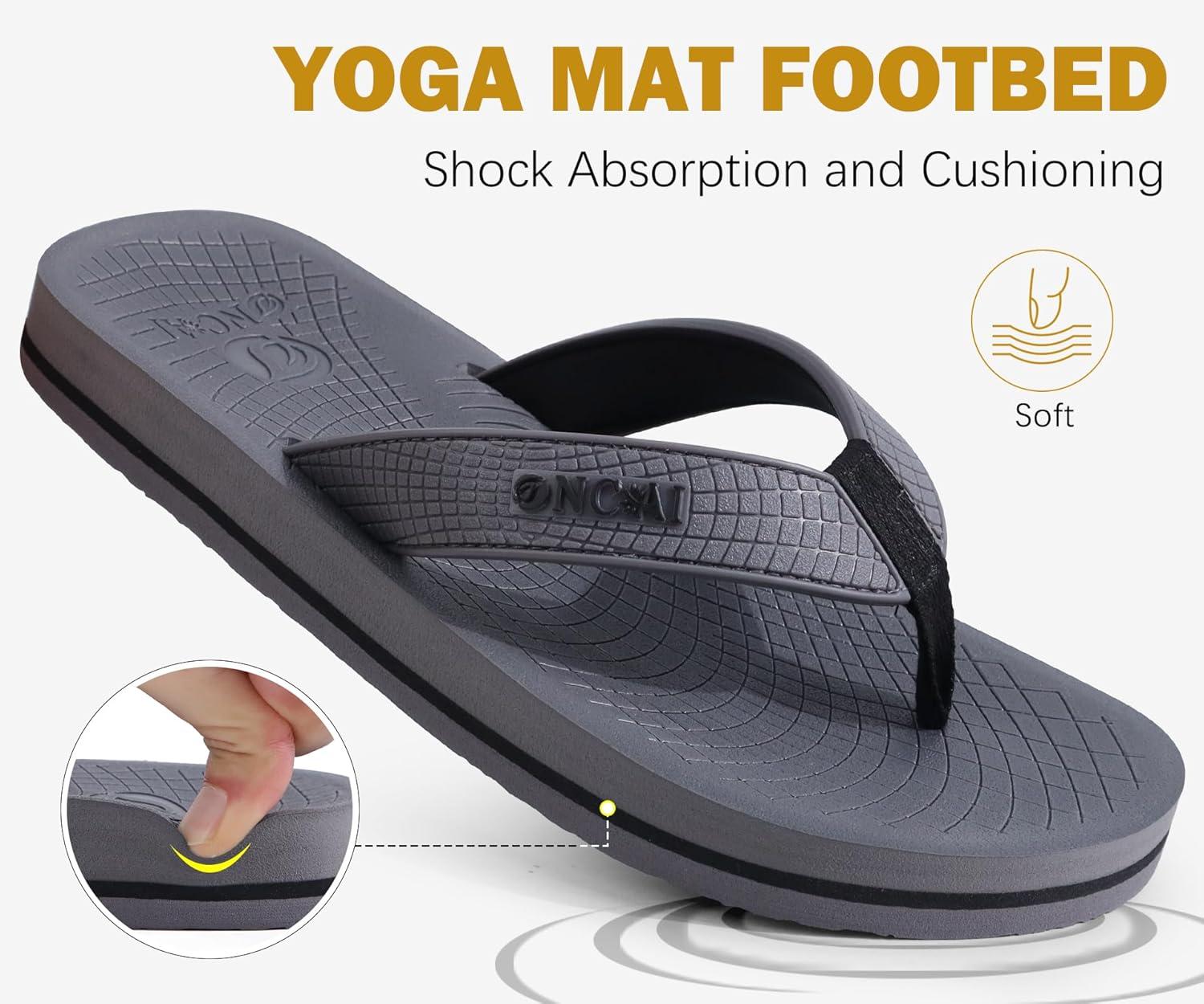 Get your hands on our newest ONCAI Men’s Rubber Flip Flops Trendy Summer Beach Pool Shower Sandals with Yoga Mat Non-slip Outdoor Cushion Soles(Dark Grey) and enjoy a limited-time discount offer.