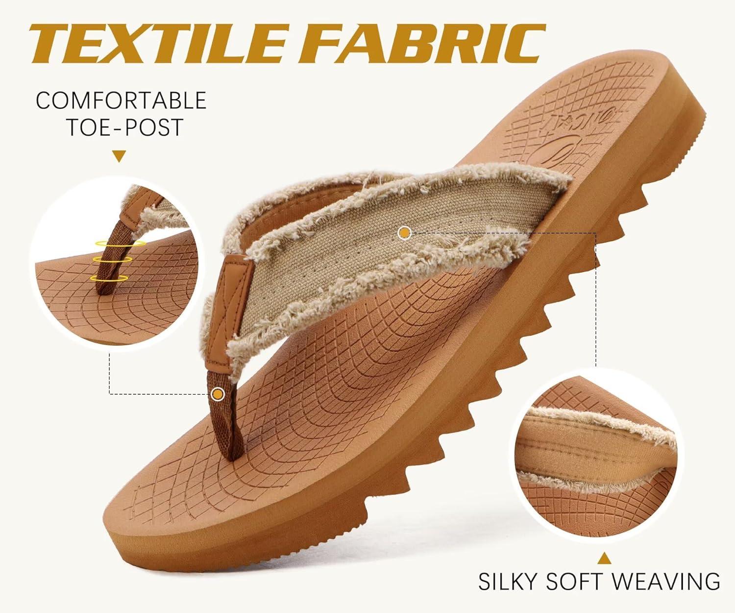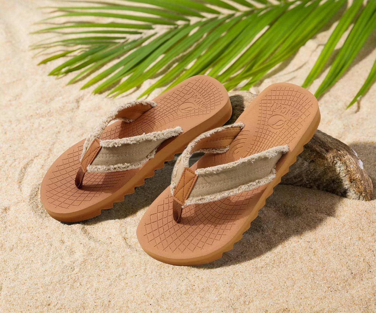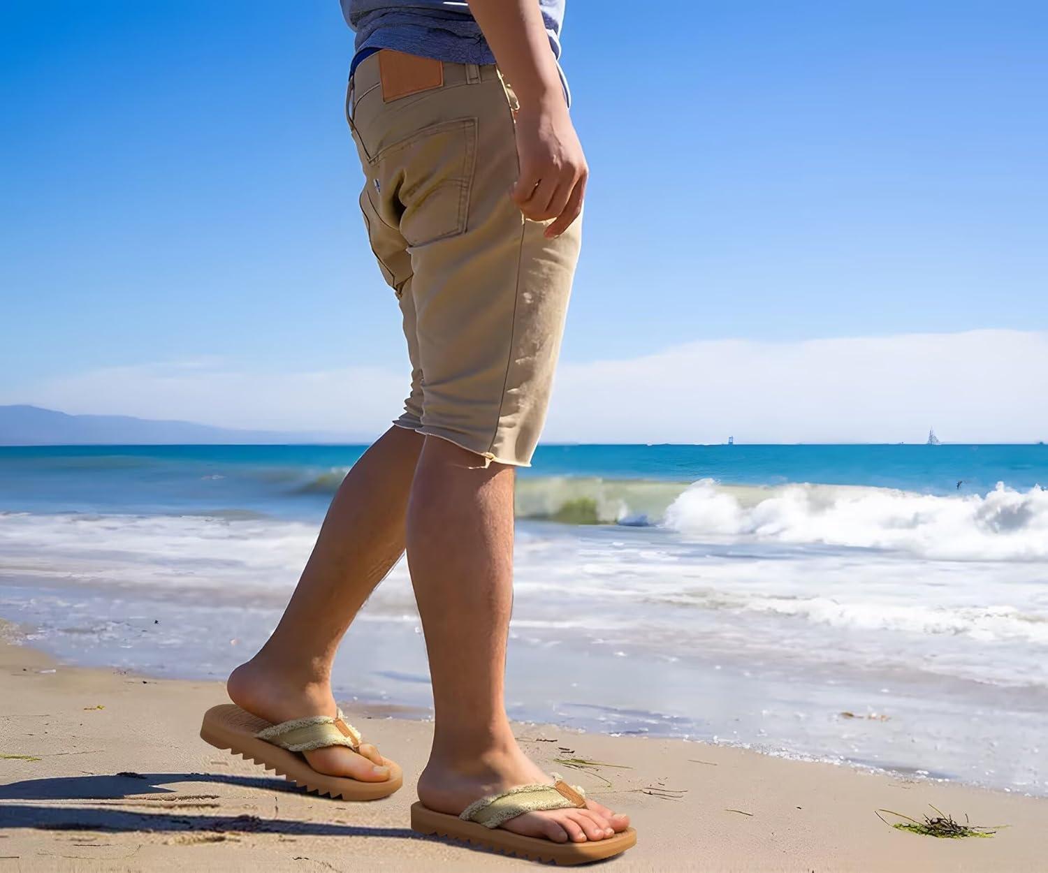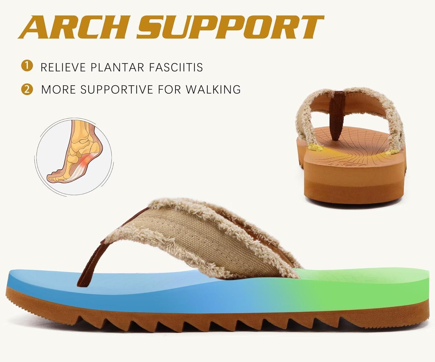 ONCAI Men’s Rubber Flip Flops Trendy Summer Beach Pool Shower Sandals with Yoga Mat Non-slip Outdoor Cushion Soles(Khaki-vacations)
