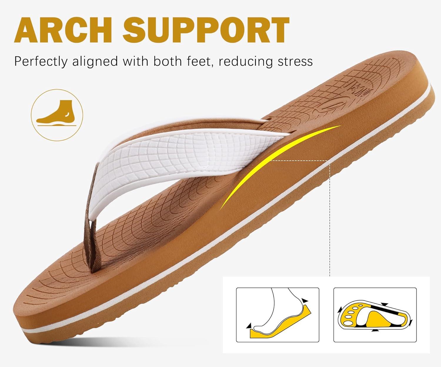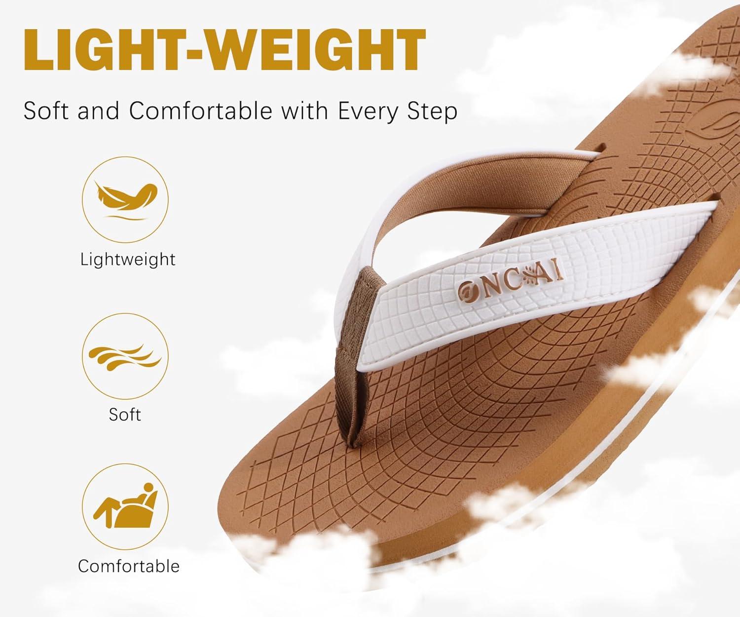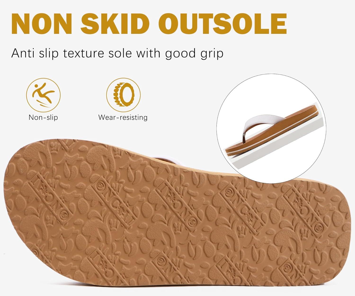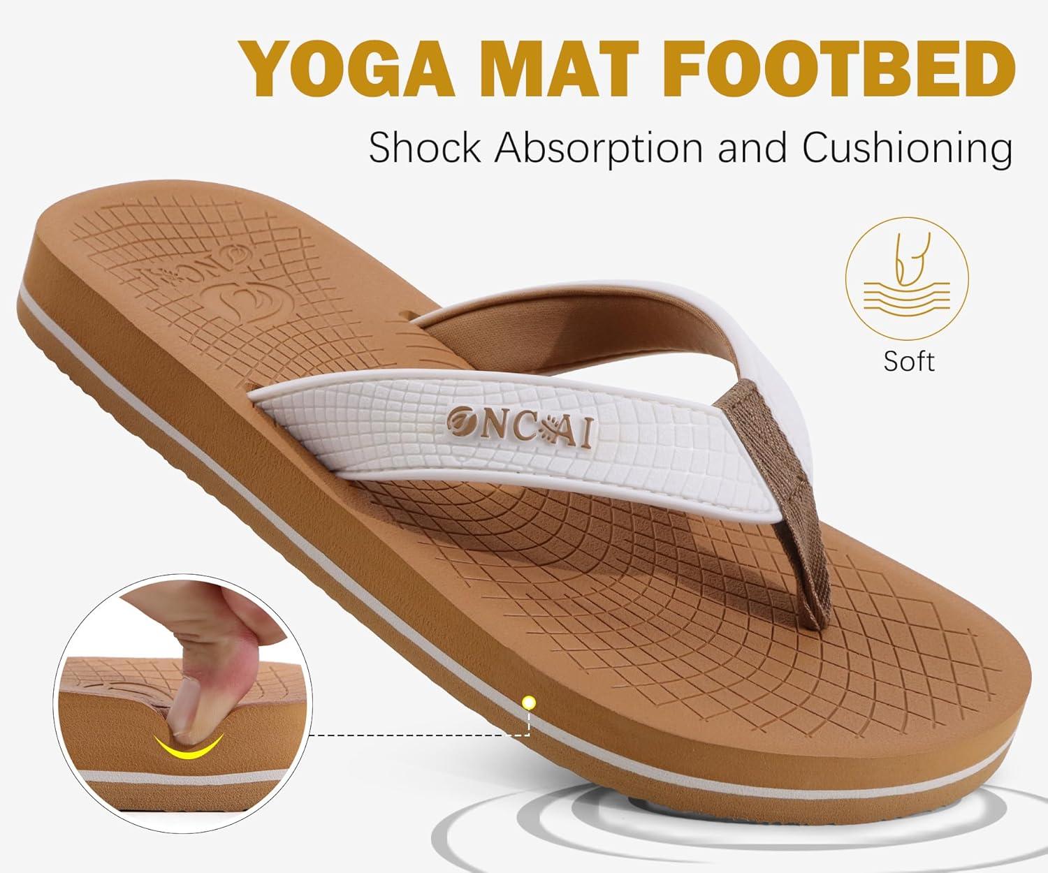 ONCAI Men’s Rubber Flip Flops Trendy Summer Beach Pool Shower Sandals with Yoga Mat Non-slip Outdoor Cushion Soles(White/Khaki)