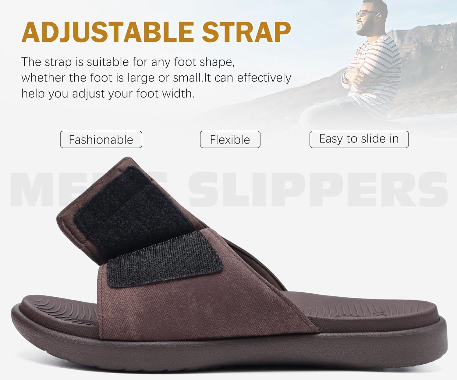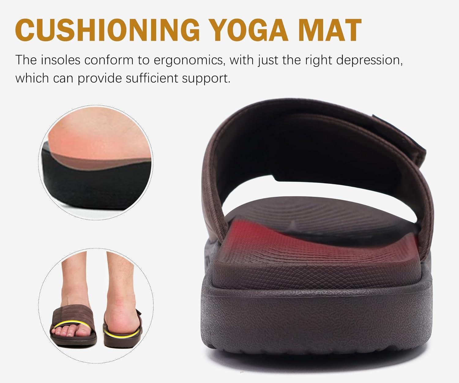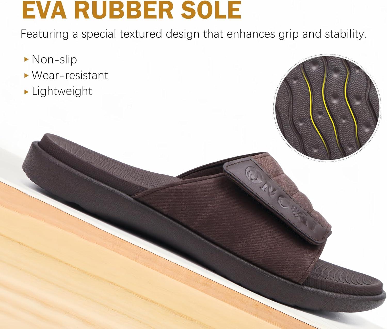 ONCAI Mens Sandals Adjustable Straps Orthotic Plantar Fasciitis Open Toe Athletic Sport Slides with Soft Comfy Arch Support Footbed Size 7.5-15(Dark Brown)