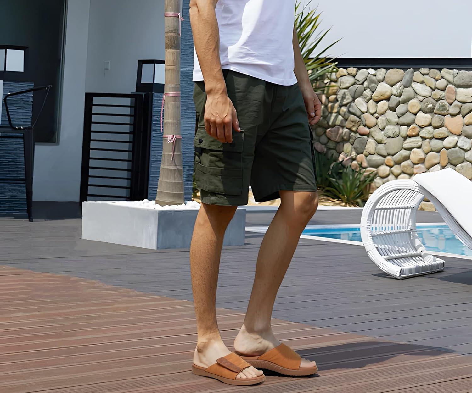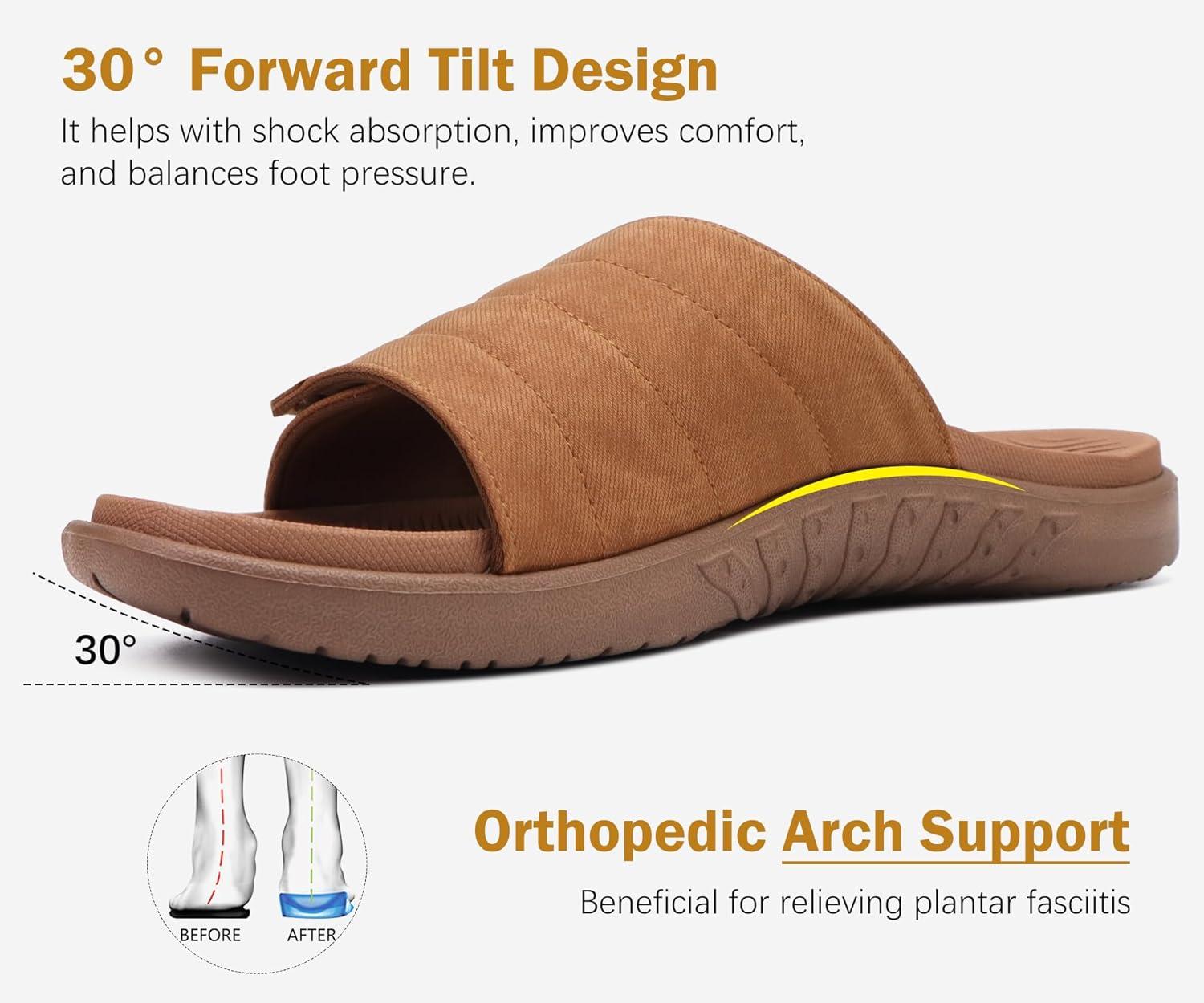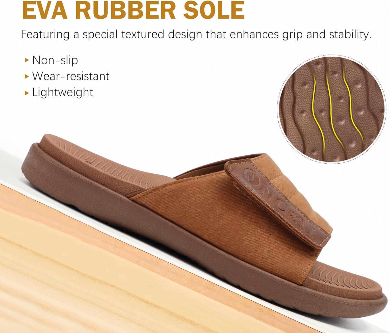 ONCAI Mens Sandals Adjustable Straps Orthotic Plantar Fasciitis Open Toe Athletic Sport Slides with Soft Comfy Arch Support Footbed Size 7.5-15(Khaki)
