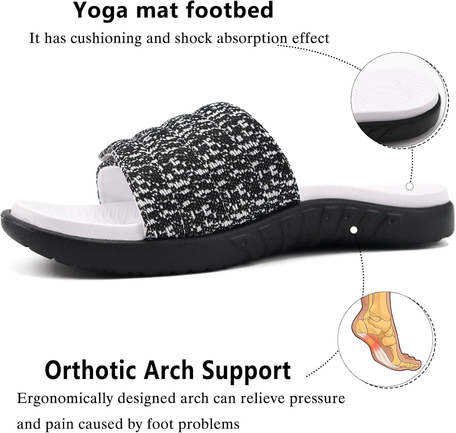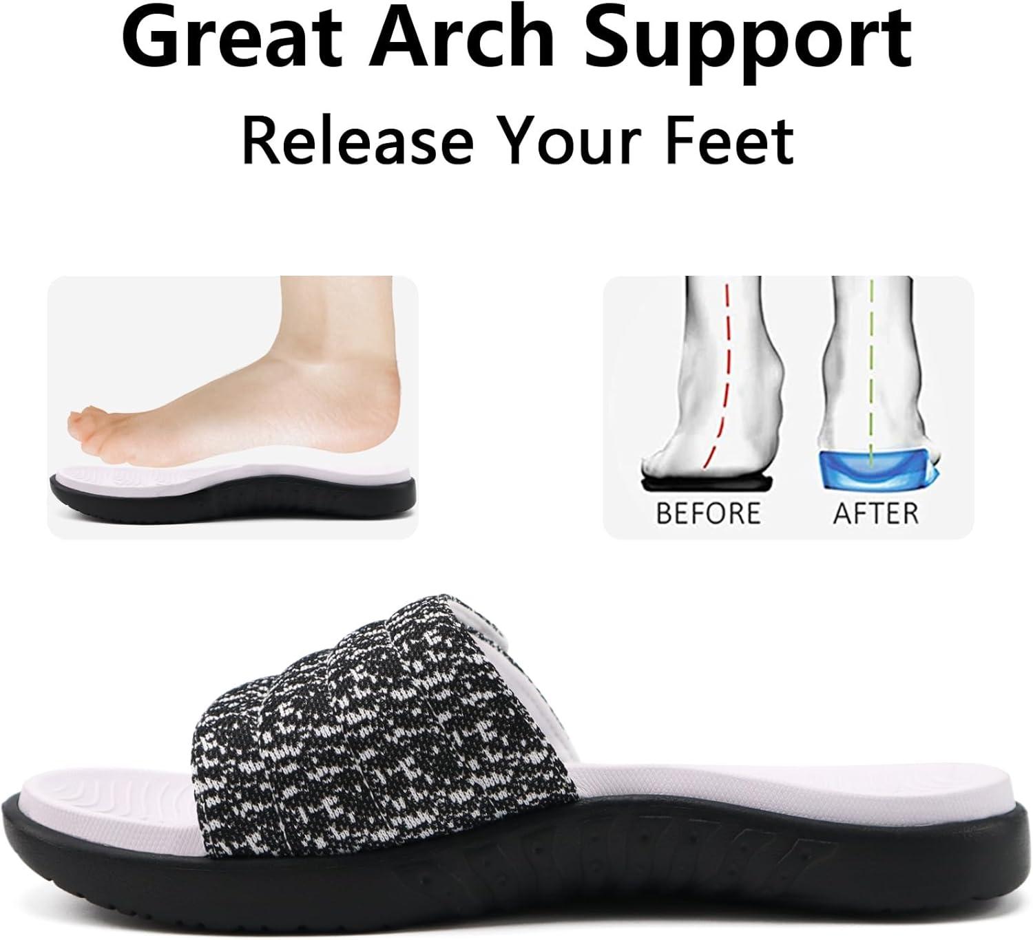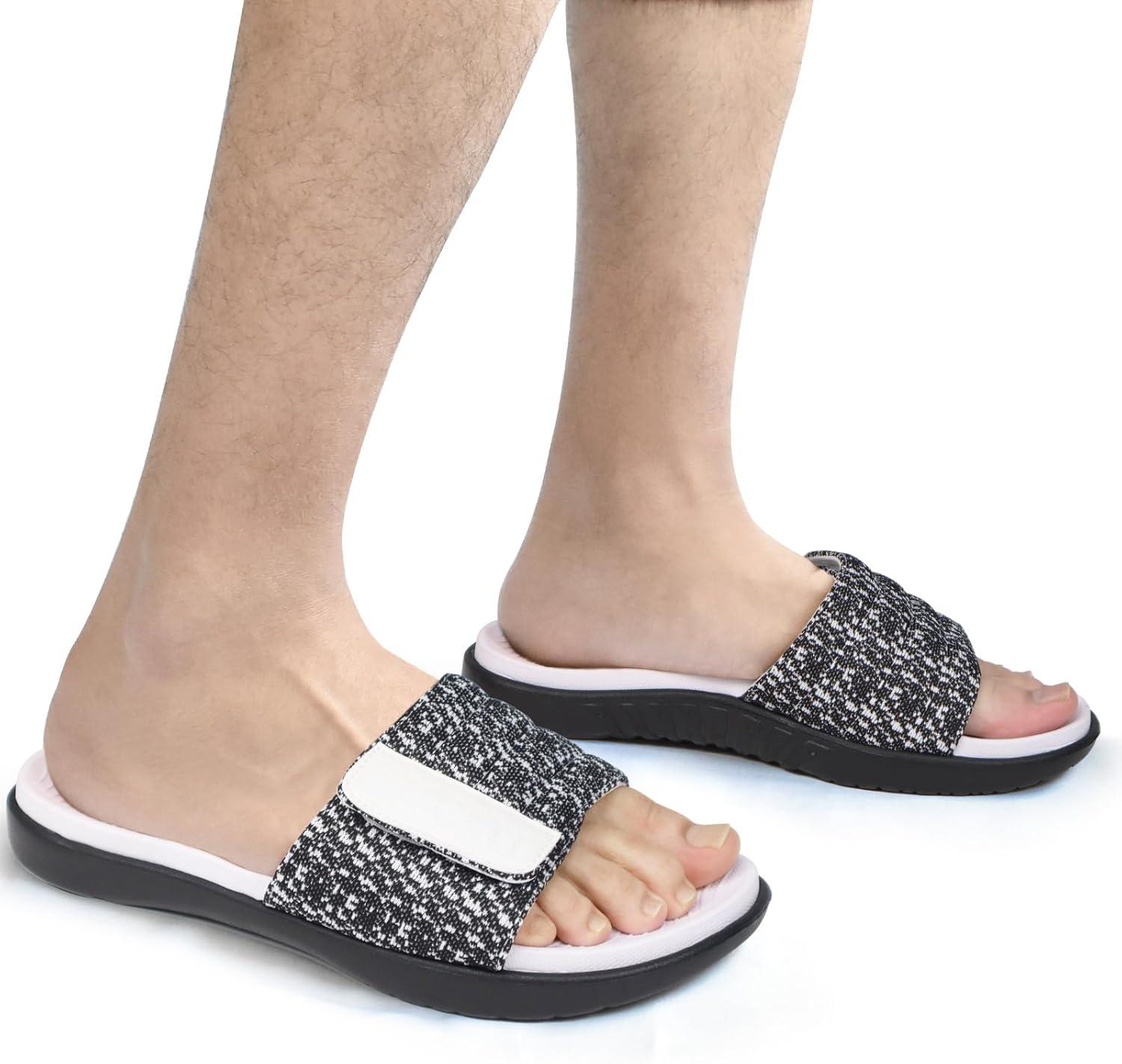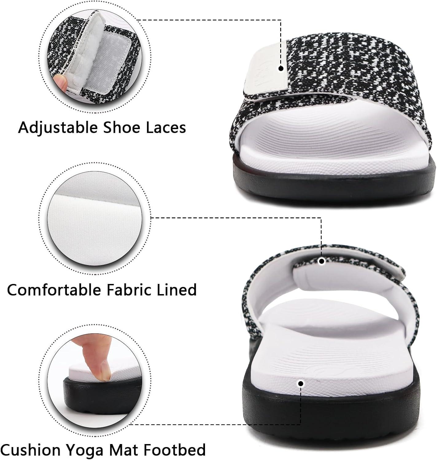 ONCAI Mens Sandals, Arch Support Sport Slides Open Toe Adjustable Straps Orthotic Cushioned Footbed for Plantar Fasciitis Rubber Soles Size 7.5-15(Black/White)