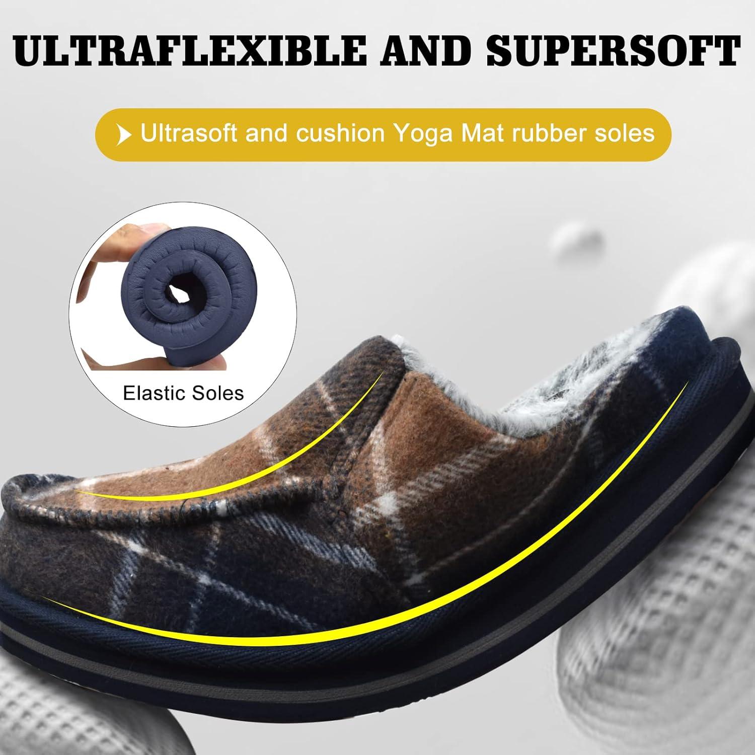 ONCAI Men’s Slippers Cotton-Blend Moccasins Warm Closed Back Corduroy House Slippers with High-Density Felt Fuzzy Indoor Outdoor Comfortale Yoga Mat Rubber Soles US Size 7-15(Fade Blue)