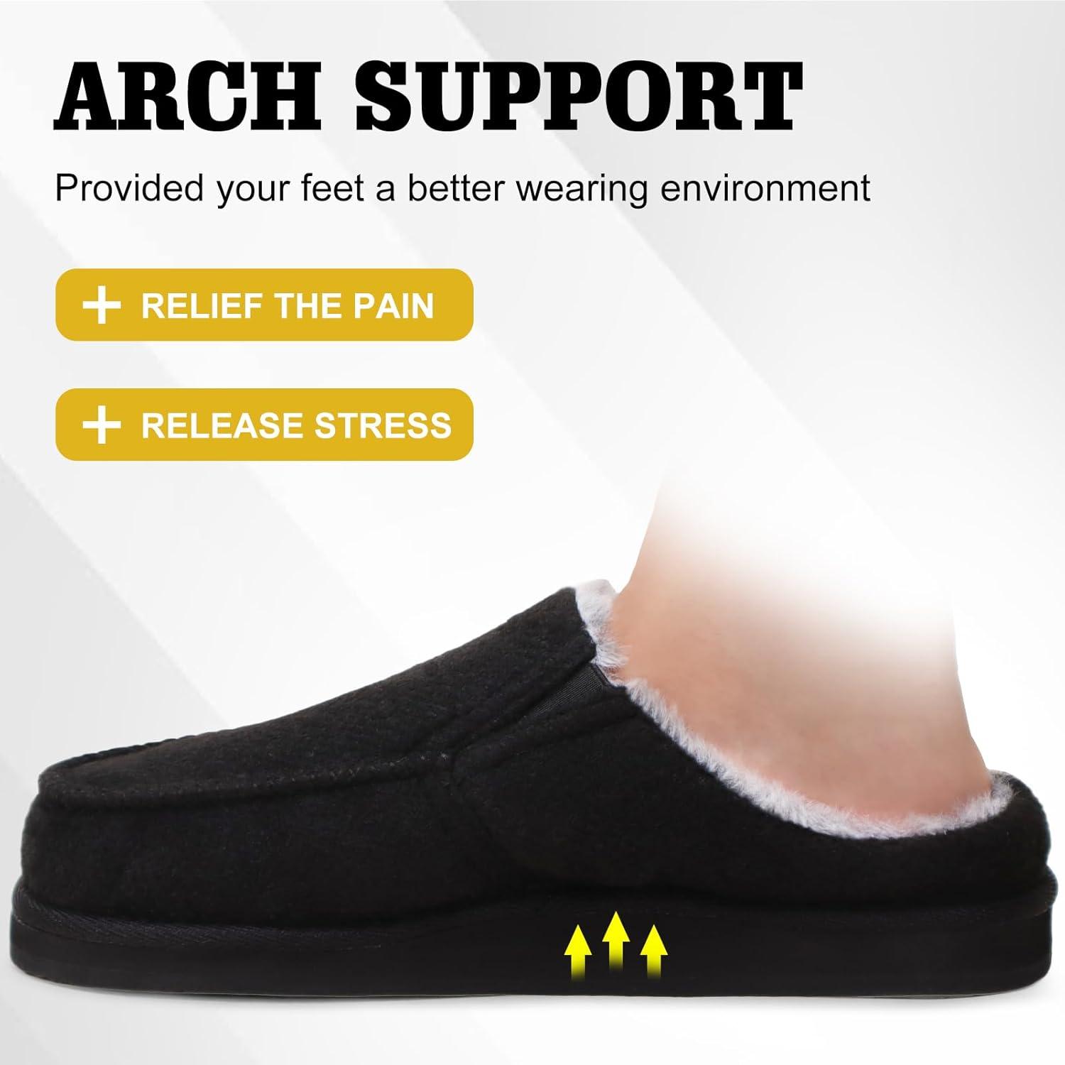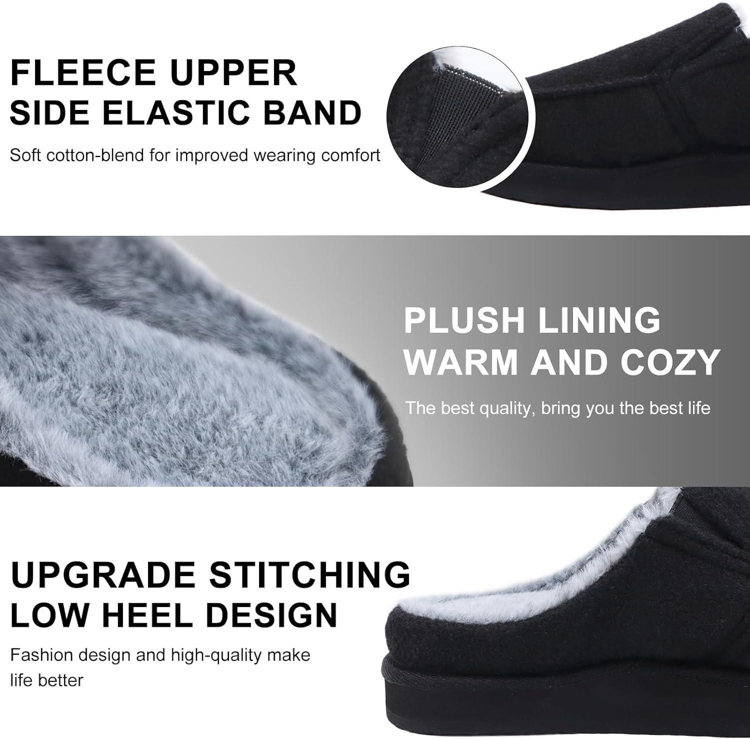 ONCAI Men’s Slippers Cotton-Blend Moccasins Warm Closed Back Corduroy House Slippers with High-Density Felt Fuzzy Indoor Outdoor Comfortale Yoga Mat Rubber Soles US Size 7-15(Fur Felt Black)