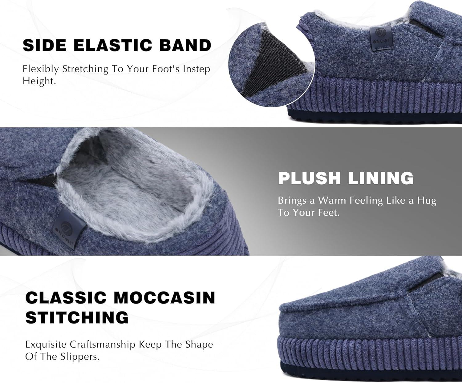 ONCAI Men’s Slippers Cotton-Blend Moccasins Warm Closed Back Corduroy House Slippers with High-Density Felt Fuzzy Indoor Outdoor Comfortale Yoga Mat Rubber Soles US Size 7-15(Moccasins Blue)