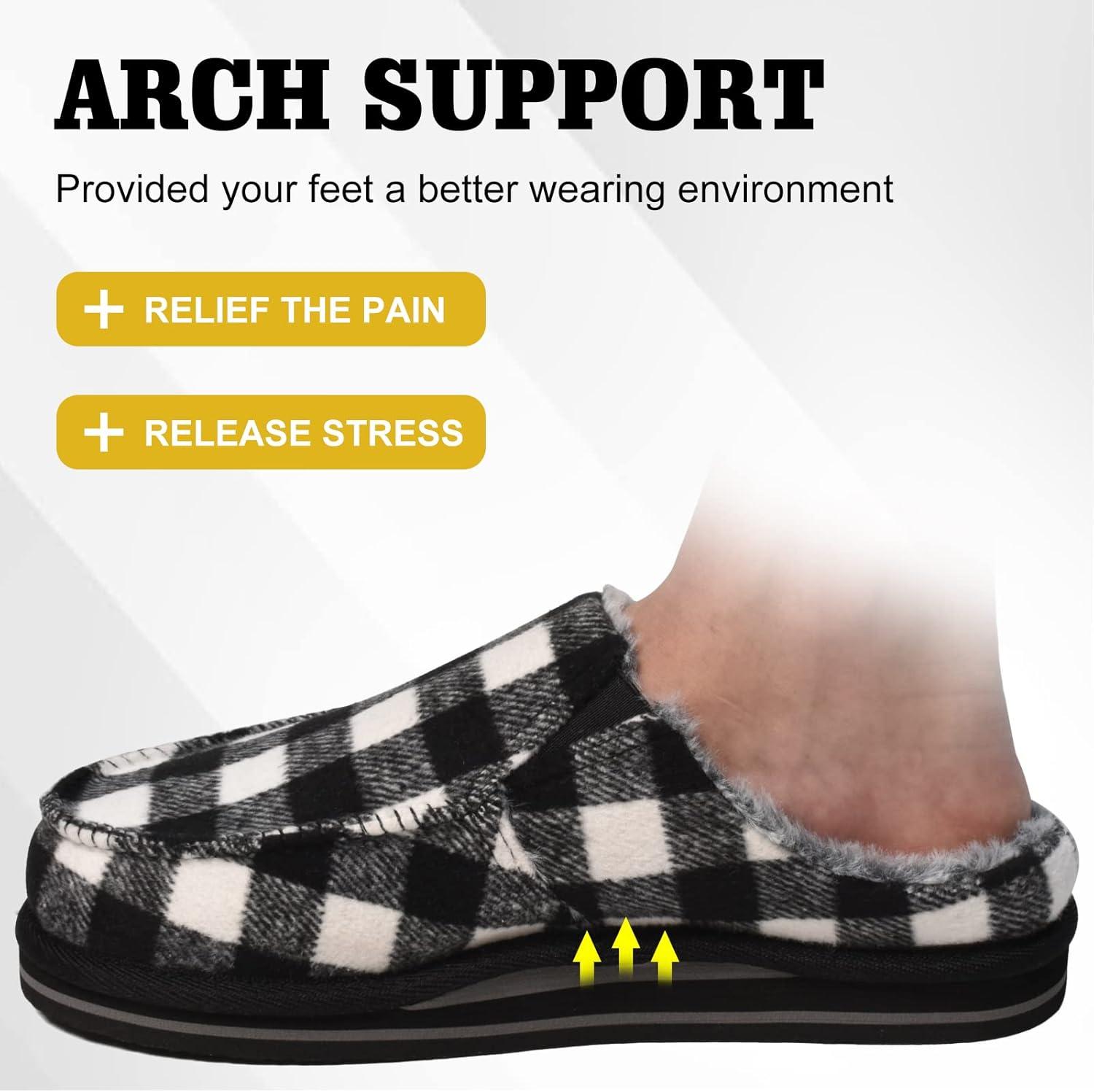 Save big on ONCAI Mens Slippers with Arch Support Stripe Faux Fur Cotton-Blend High-Density Memory Foam Warm House Slippers for man Slip-on Indoor Outdoor Rubber Sole Size 7-16(Plaid Black/White) and accessories during our BOGO sale. Buy one, get one 50% off!