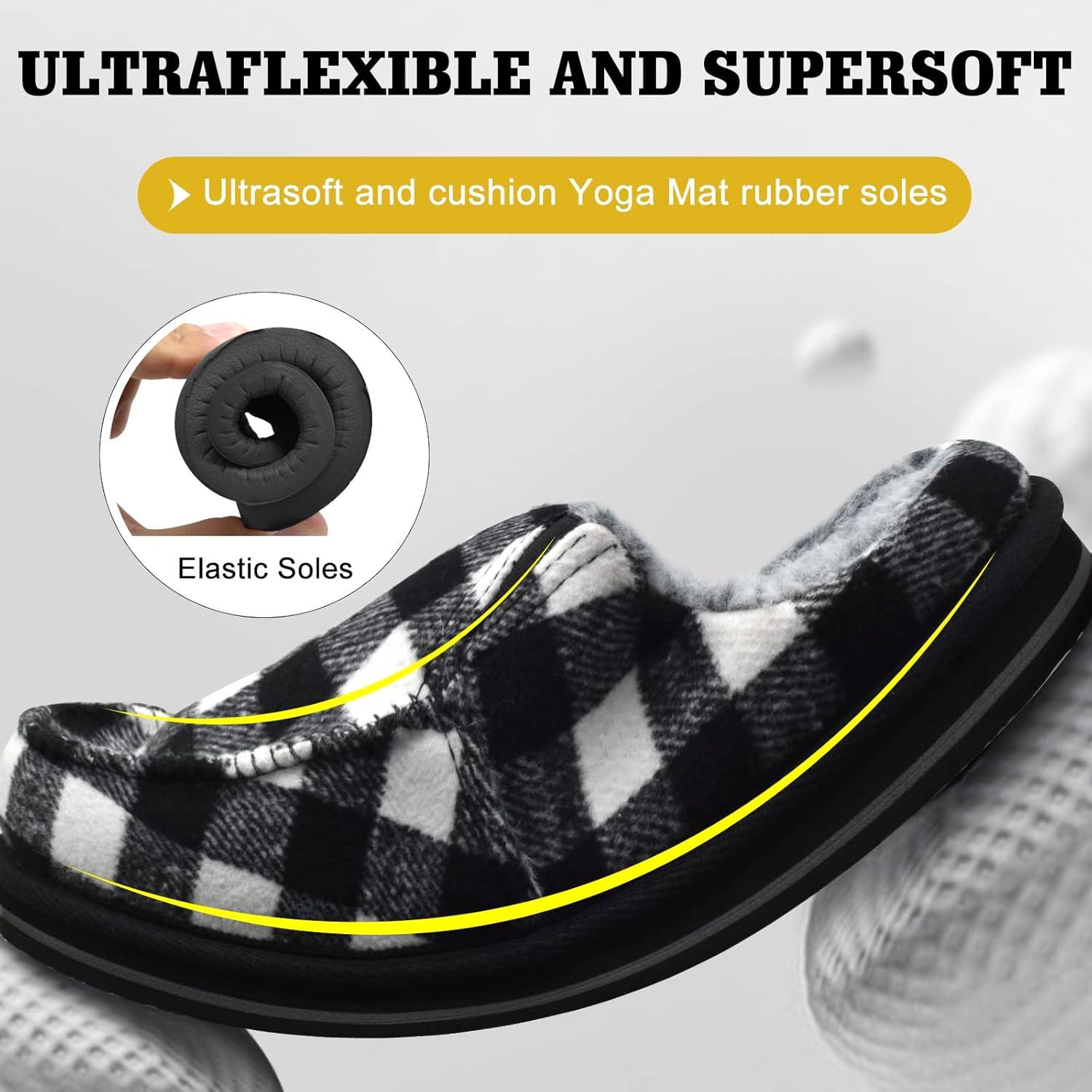 ONCAI Mens Slippers with Arch Support Stripe Faux Fur Cotton-Blend High-Density Memory Foam Warm House Slippers for man Slip-on Indoor Outdoor Rubber Sole Size 7-16(Plaid Black/White)