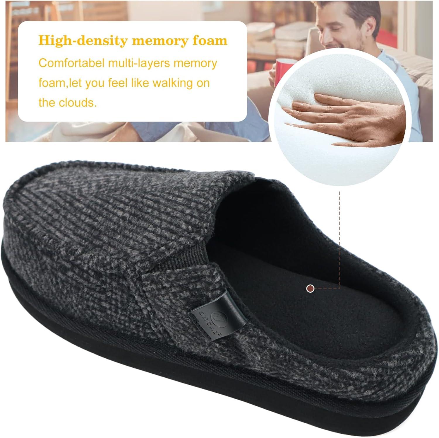 ONCAI Mens Slippers with Arch Support Stripe Faux Fur Cotton-Blend High-Density Memory Foam Warm House Slippers for man Slip-on Indoor Outdoor Rubber Sole Size 7-16(Spring Black)