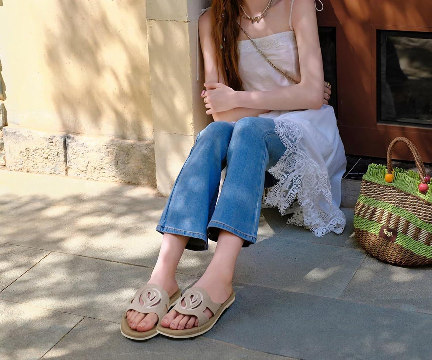 Get up to 70% off on ONCAI Slides for Womens,Flat Dressy Square Toe Summer Beach Sandals for Woman with Comfortable Non-slip Rubber Soles Size 6-11(All-beige) styles during our end-of-season clearance event.