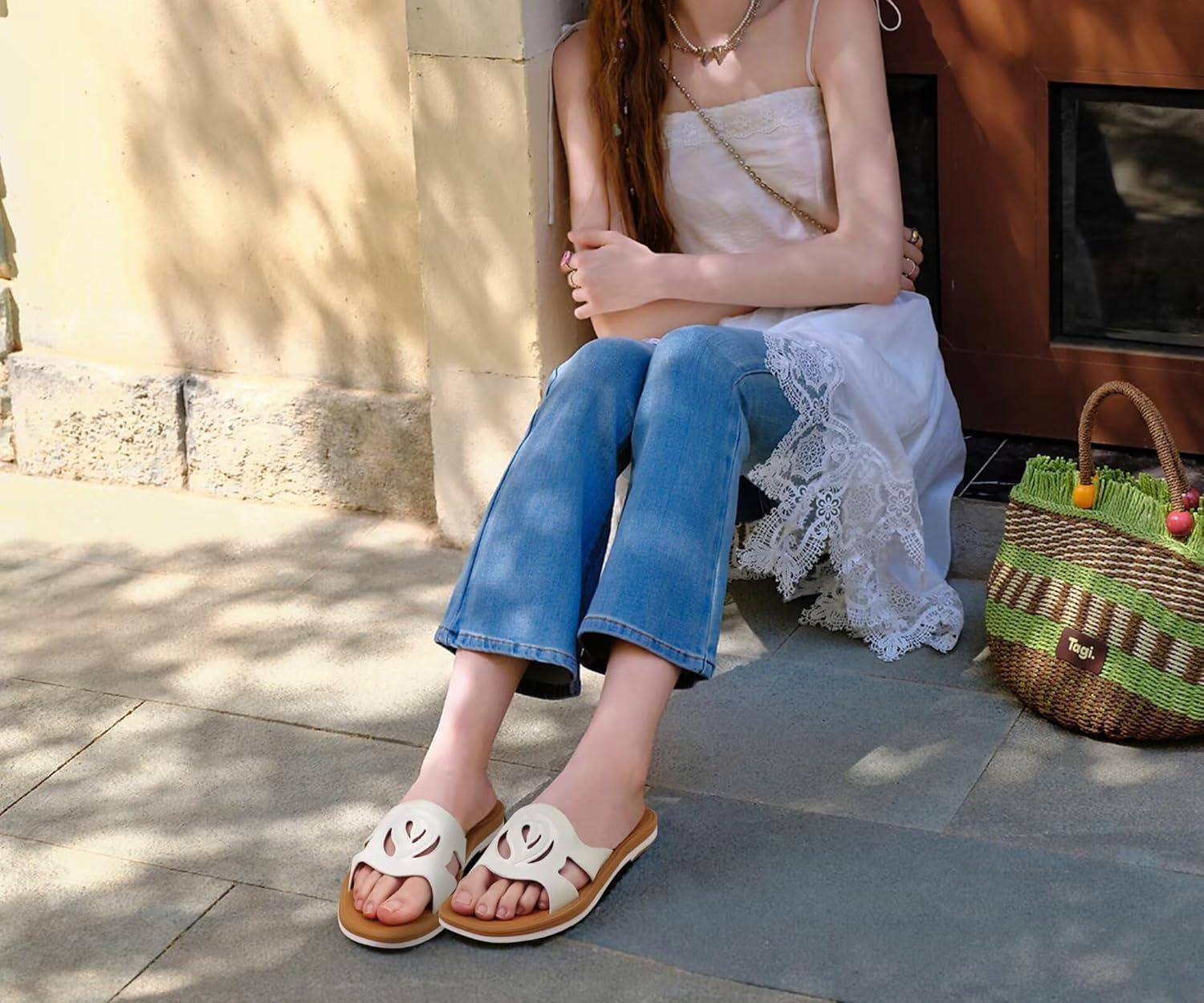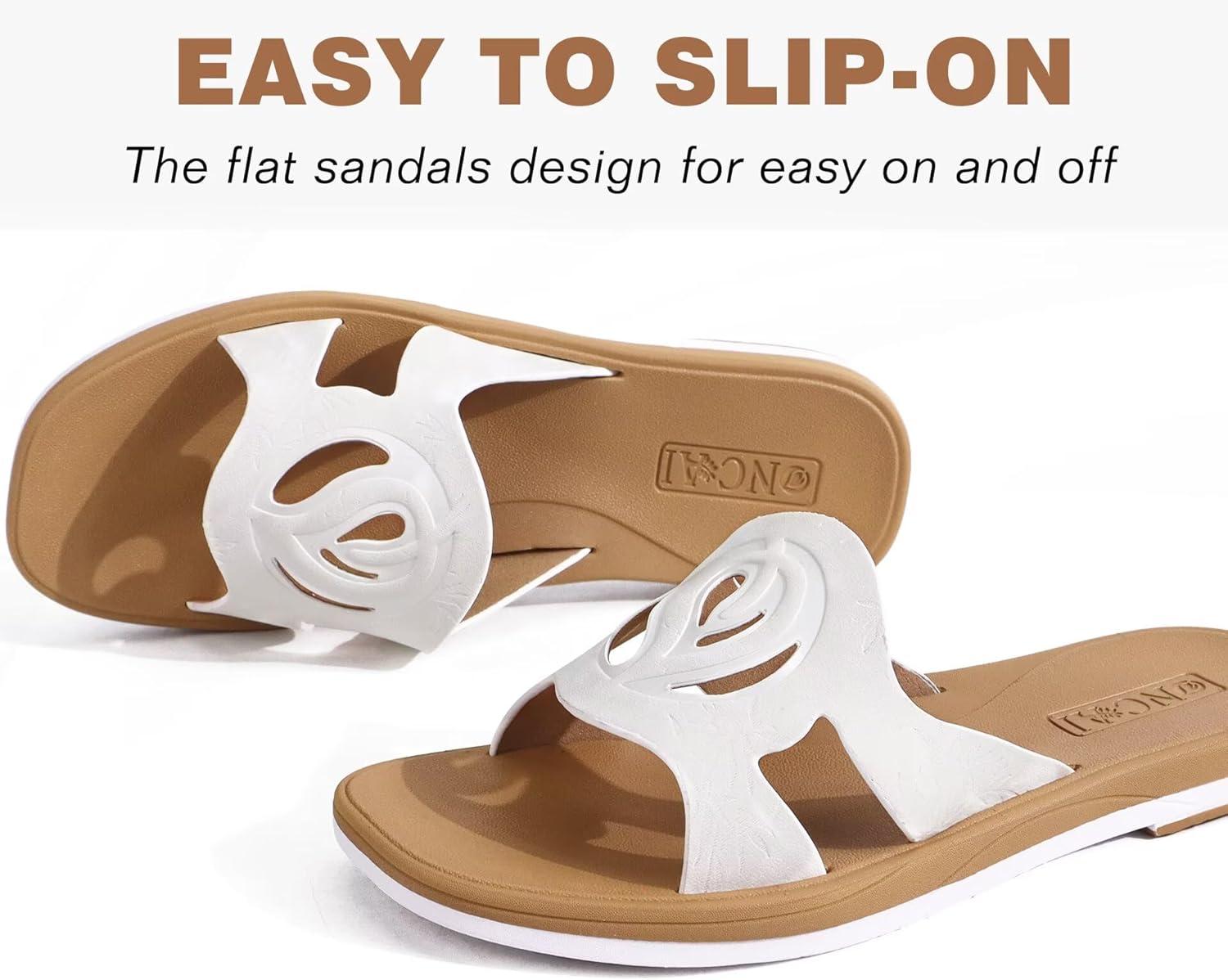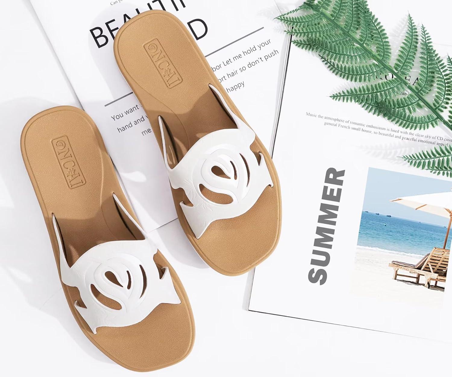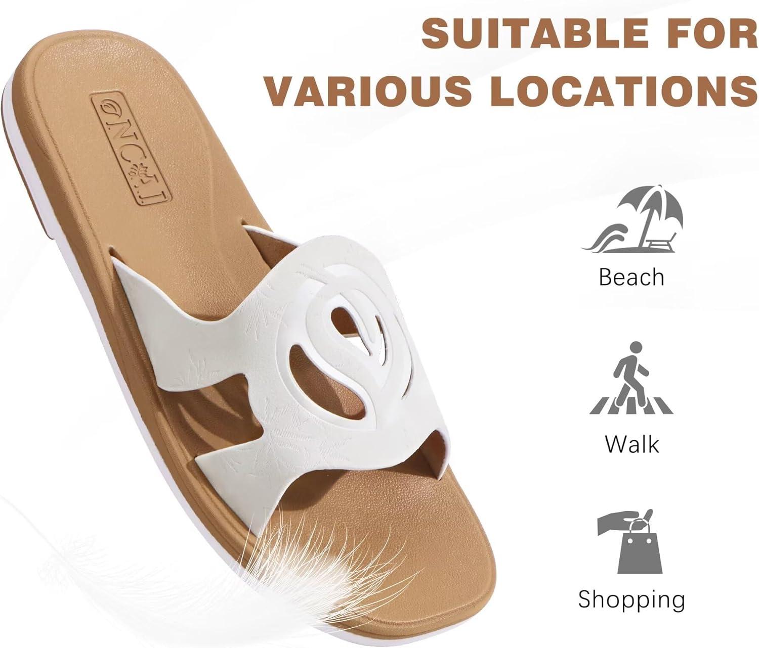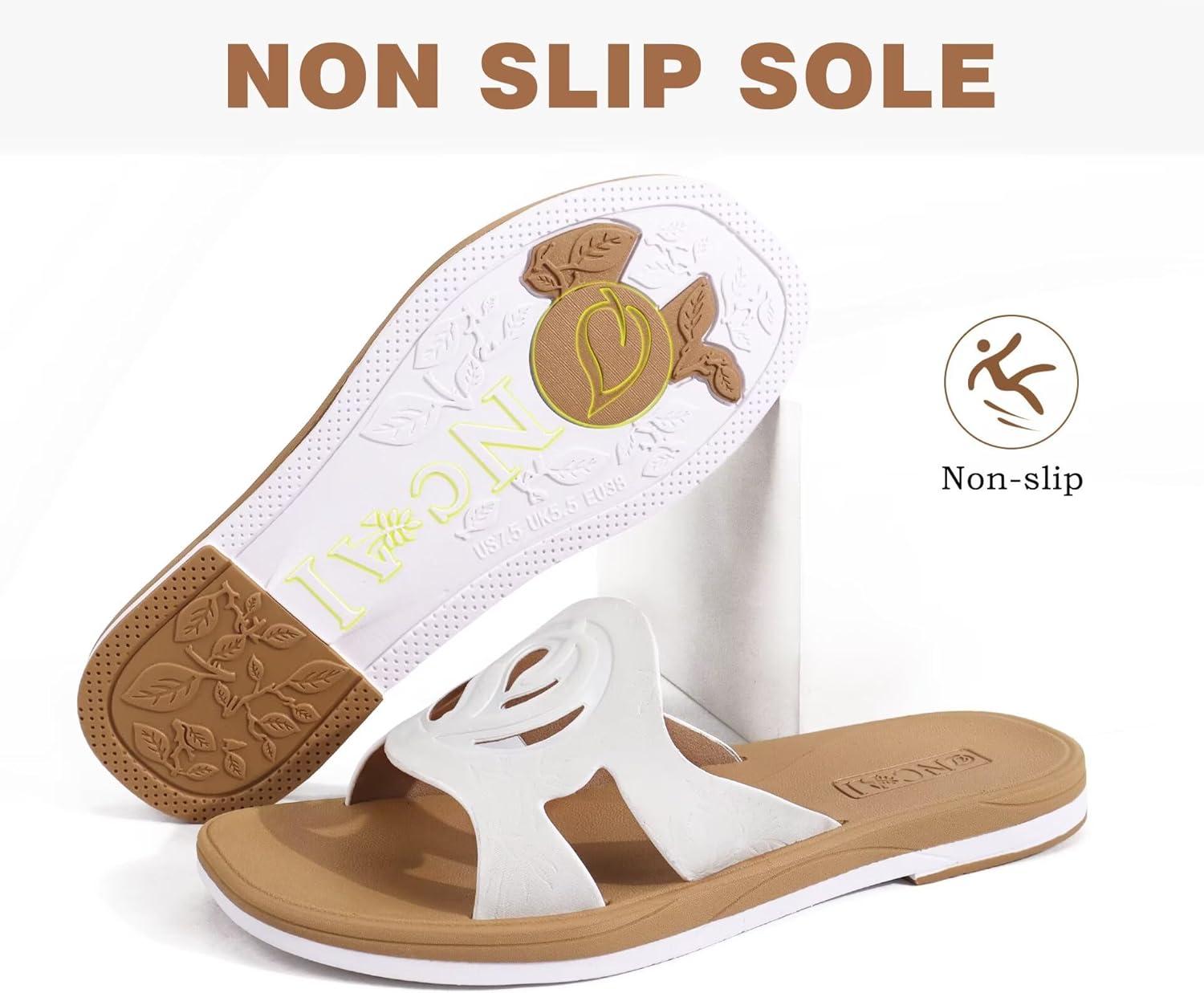 Get the ONCAI Slides for Womens,Flat Dressy Square Toe Summer Beach Sandals for Woman with Comfortable Non-slip Rubber Soles Size 6-11(All-white/Khaki) you want at a price you can afford with our markdown sale.