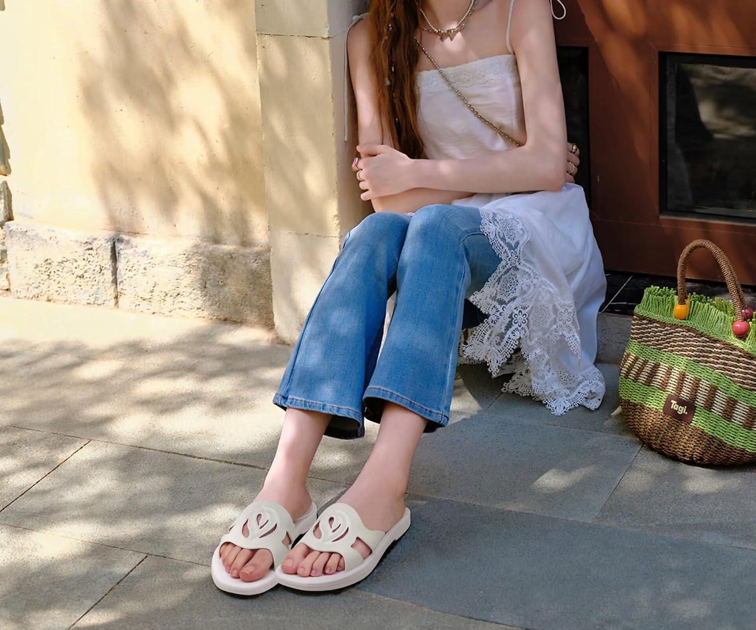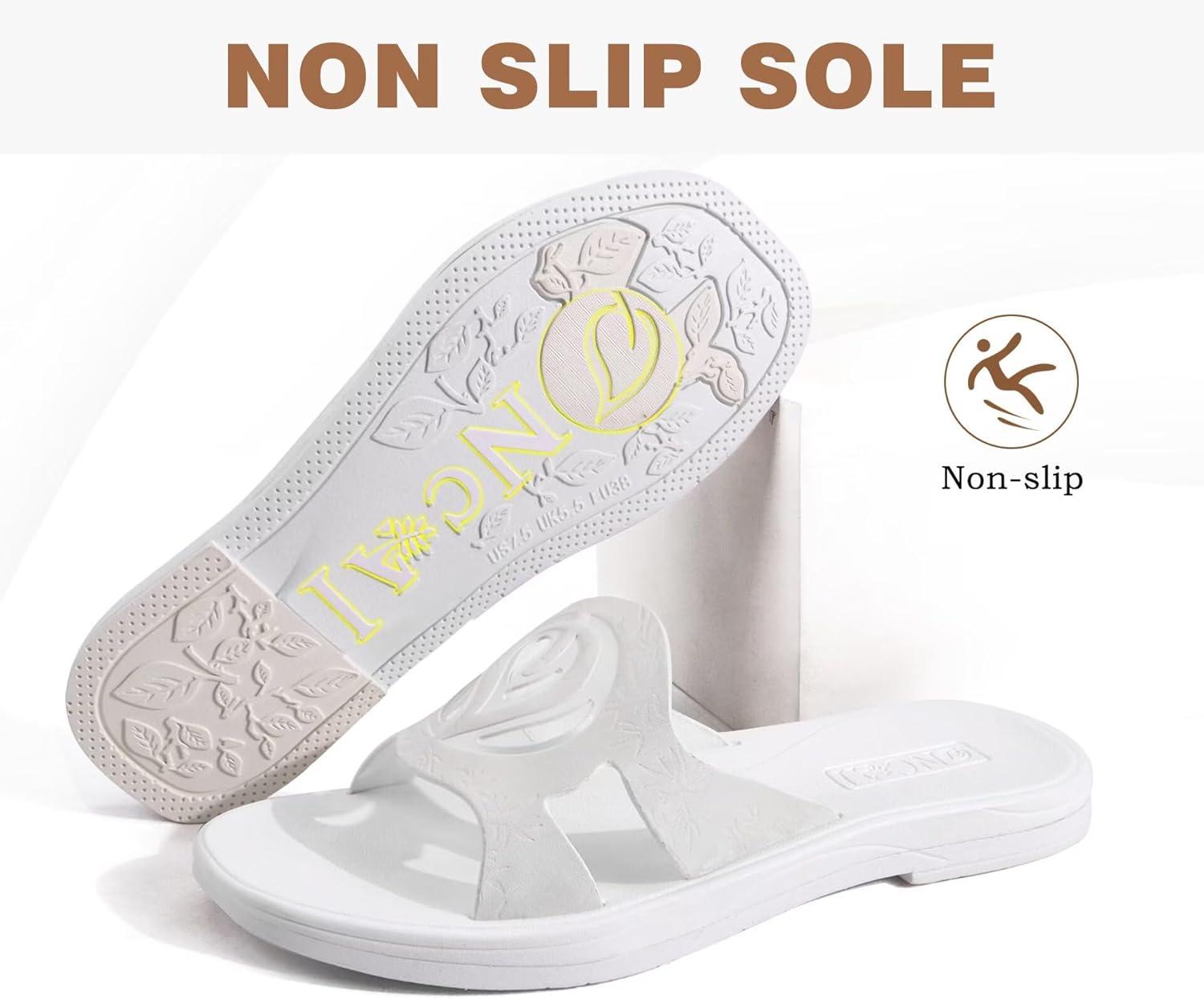 Get the ONCAI Slides for Womens,Flat Dressy Square Toe Summer Beach Sandals for Woman with Comfortable Non-slip Rubber Soles Size 6-11(All-white) you want at a discounted price during our markdown sale event.