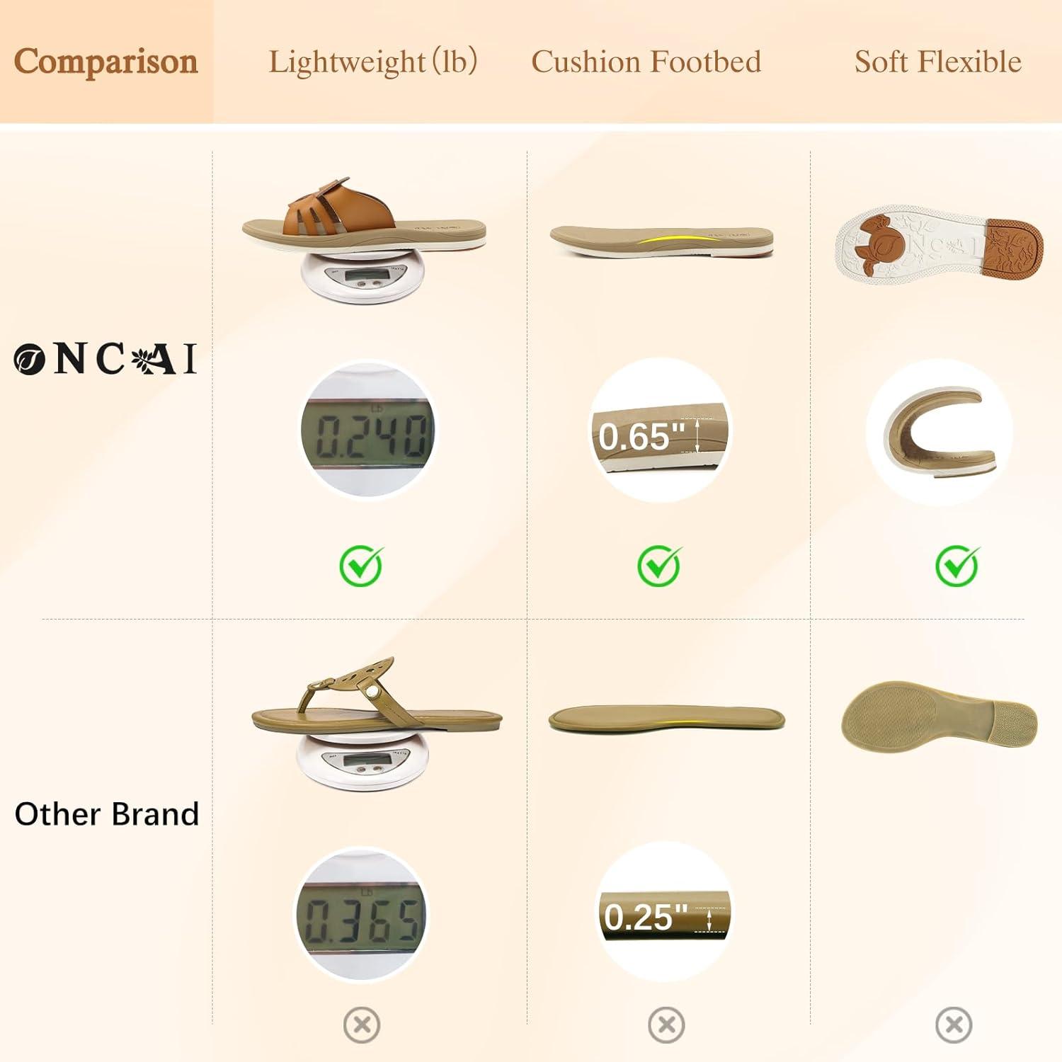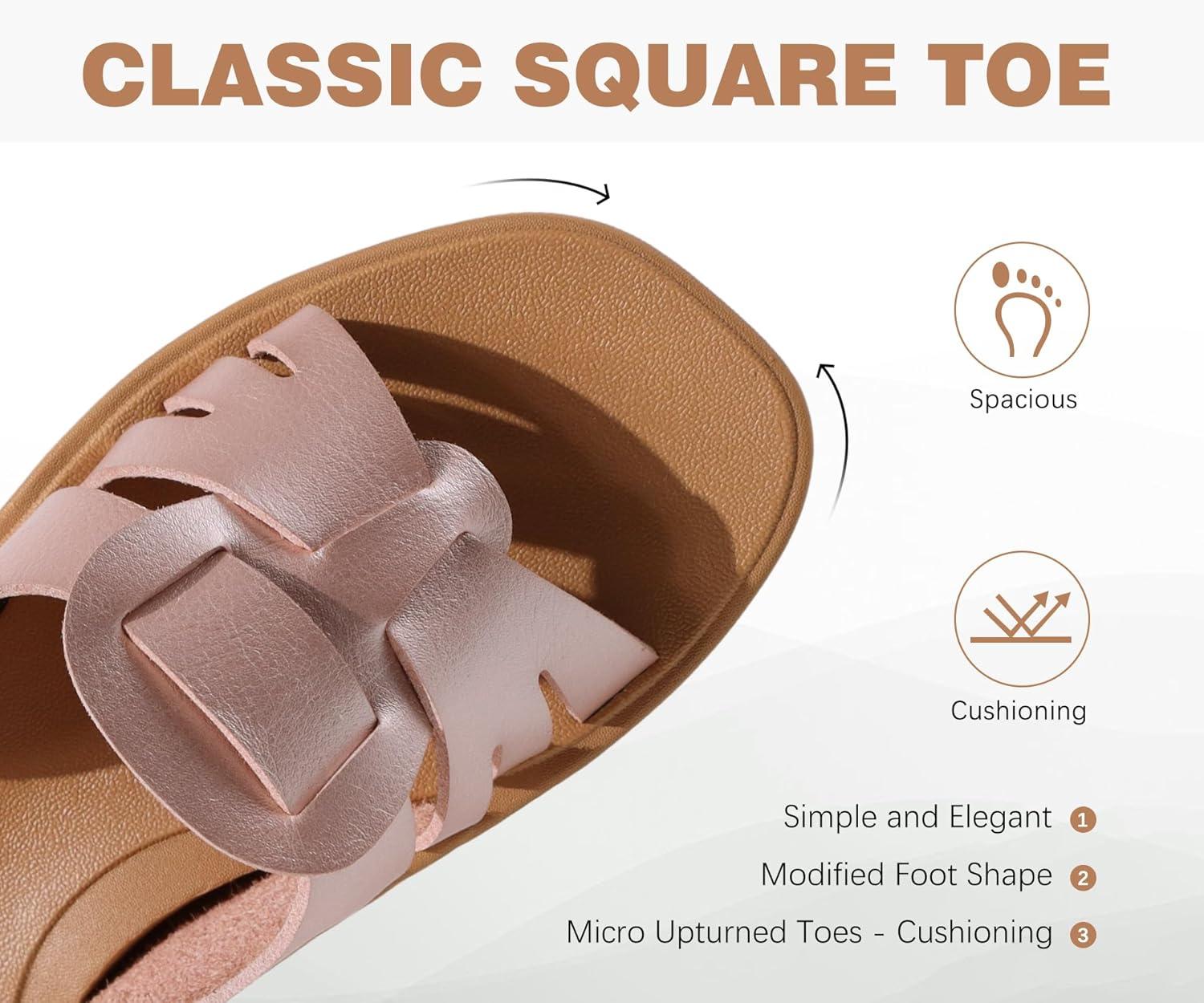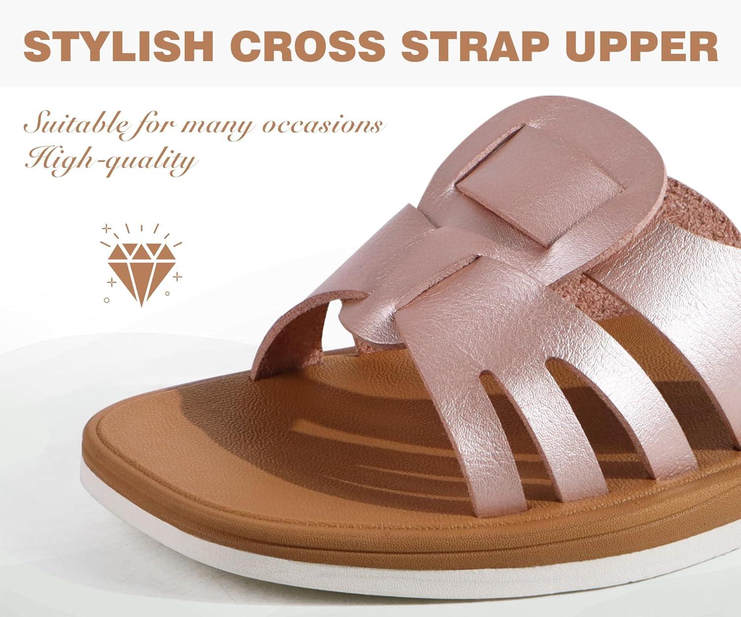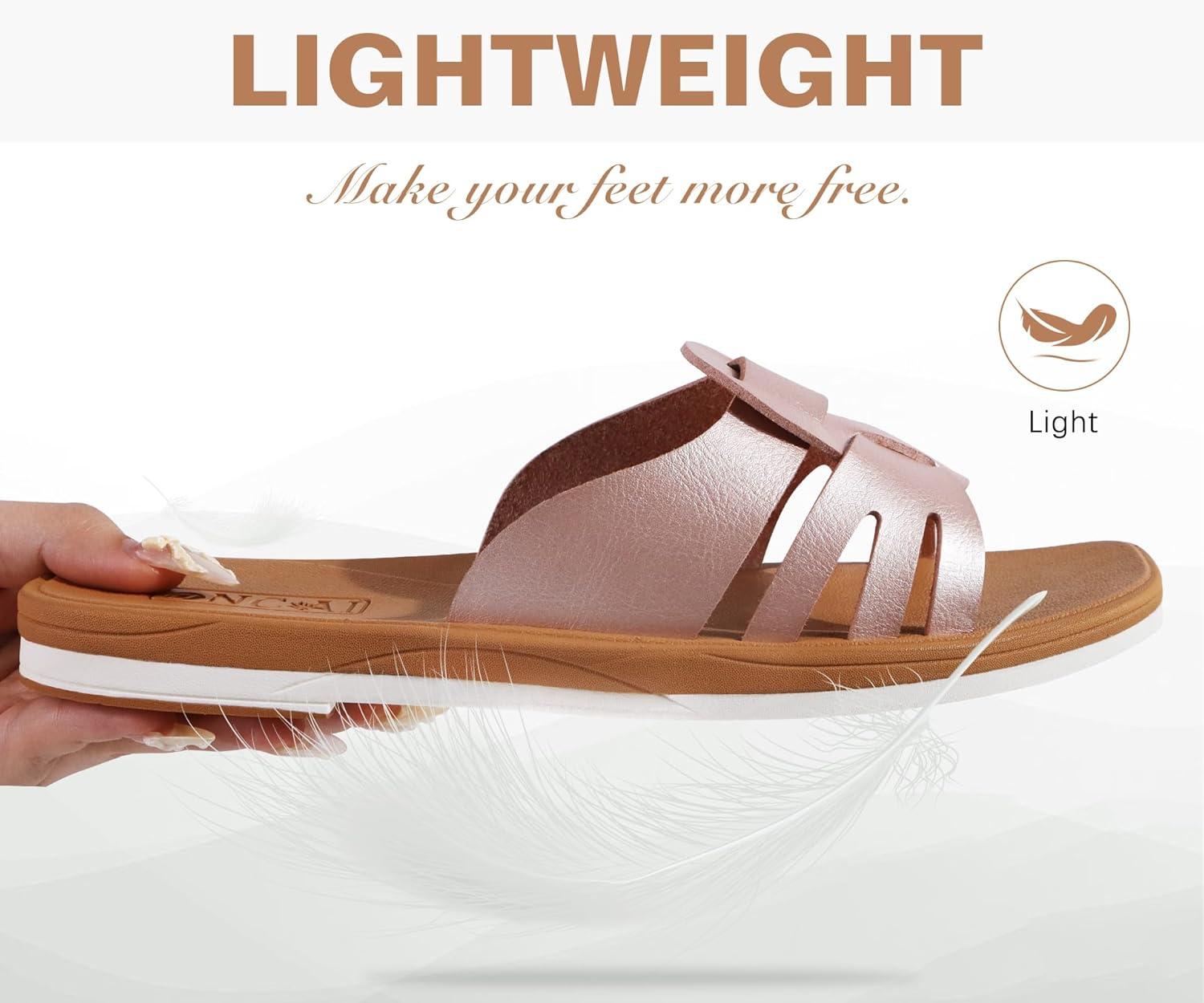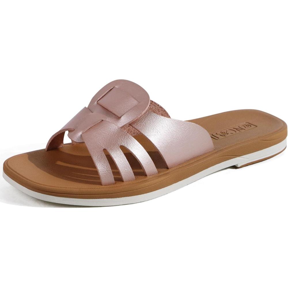 ONCAI Slides for Womens,Flat Dressy Square Toe Summer Beach Sandals for Woman with Comfortable Non-slip Rubber Soles Size 6-11(Rose Gold(runs Small Size Up))